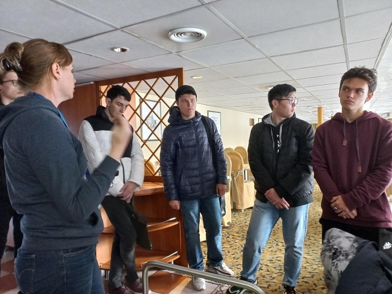 Директор круиза Ольга Евгеньевна Сивкова на примере теплохода познакомила студентов с концепцией работы речного круизного лоукостера, рассказала о классах теплоходов «Мостурфлота» и особенностях функционирования всех служб речного круизного судна.