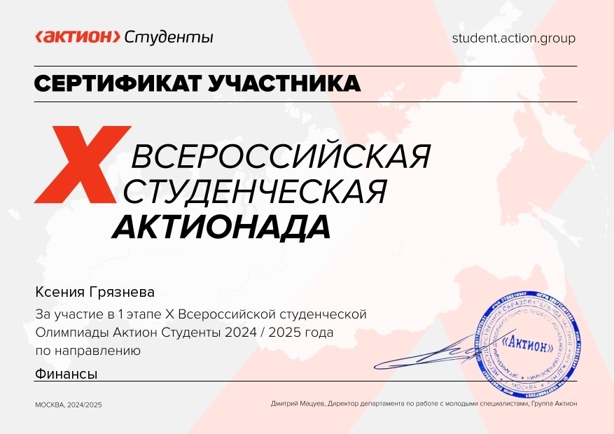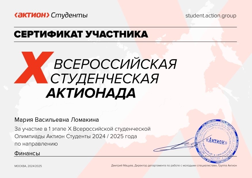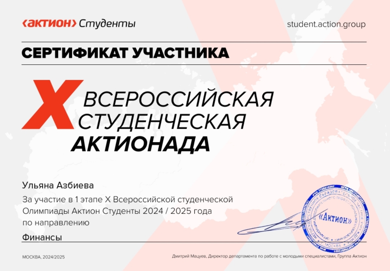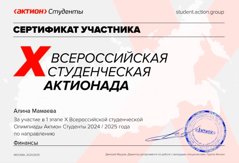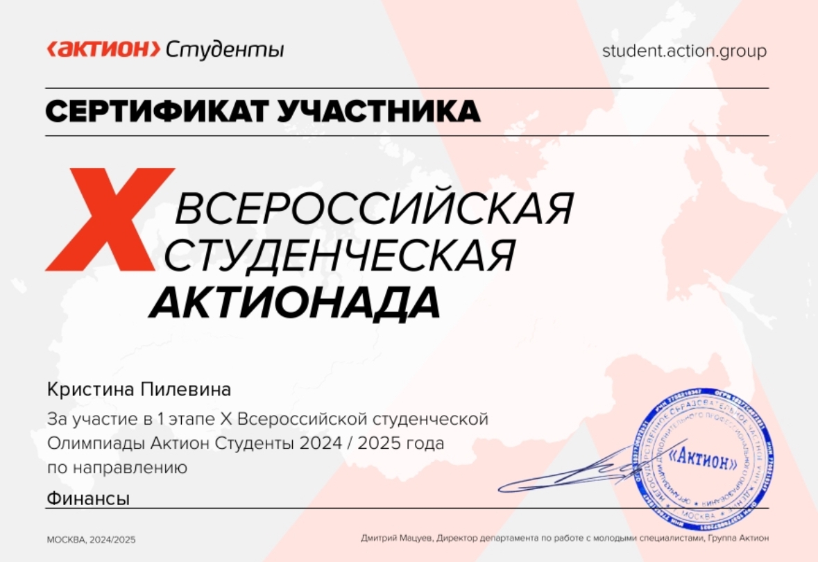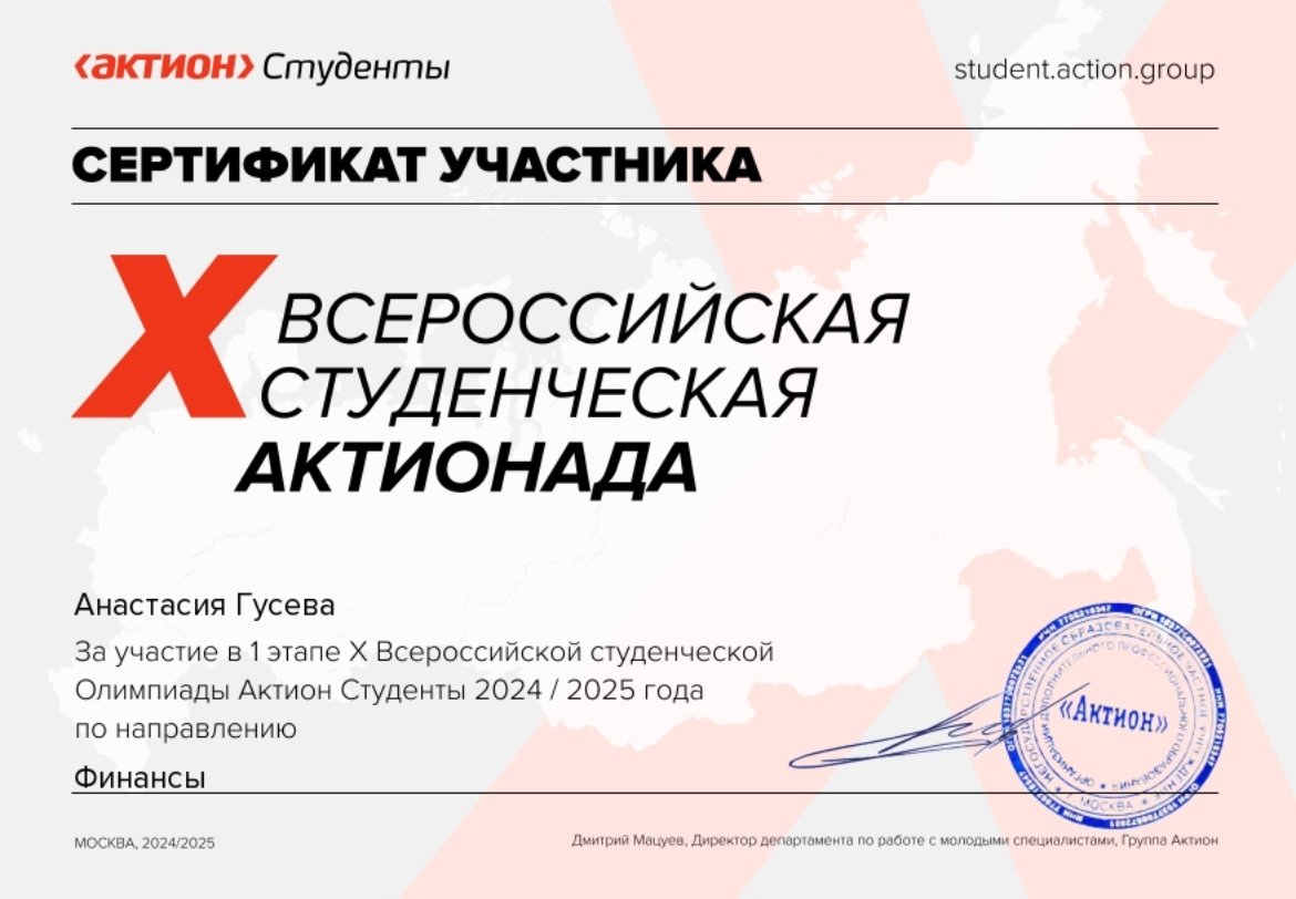 помощник руководителя направлений «Финансы» и «Бухгалтерия» проекта «Актион Студенты».