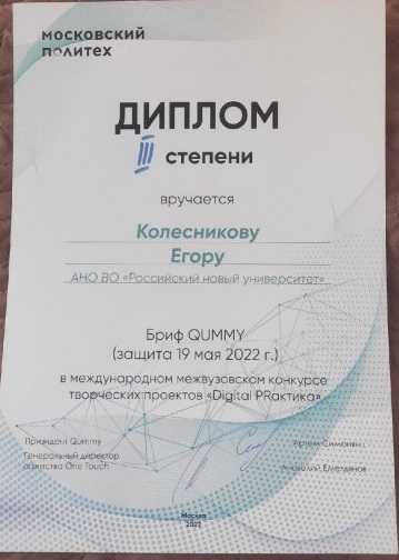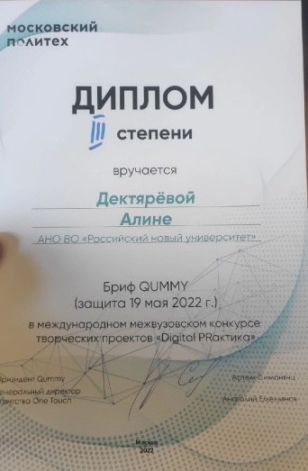 — Участие в конкурсе «Digital PRактика», безусловно, очень полезный опыт для студентов нашего направления, — рассказал участник команды Qummy Егор Колесников. — Мы провели рекламную кампанию бренда — в уменьшенном масштабе, но полноценную, начиная от анализа целевой аудитории и заканчивая дизайном упаковки. Весь семестр мы работали над проектом сначала в исследовательской, а затем в практической части и очень рады, что заказчики и жюри оценили наш труд. Тем более в условиях такой сильной конкуренции. Страх и неуверенность, конечно, были, но мы решили просто делать всё возможное. Спасибо за поддержку и напутствие нашему преподавателю Елене Павловне Немировской!