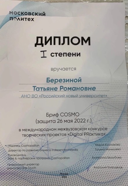 — В конкурсе принимали участие сильнейшие вузы Москвы, поэтому борьба в восьмом сезоне была напряжённой, конкурсанты проделали сложную работу по аналитике, креативной части, медиапланированию, — рассказала руководитель и ментор команд, доцент кафедры рекламы и связей с общественностью РосНОУ, кандидат социологических наук Елена Павловна Немировская. — Завоевать призовые места с первой же попытки — это большой успех. Но главное — это опыт погружения в реальные проекты компаний-работодателей отрасли, которые и оценивают студенческие проекты.