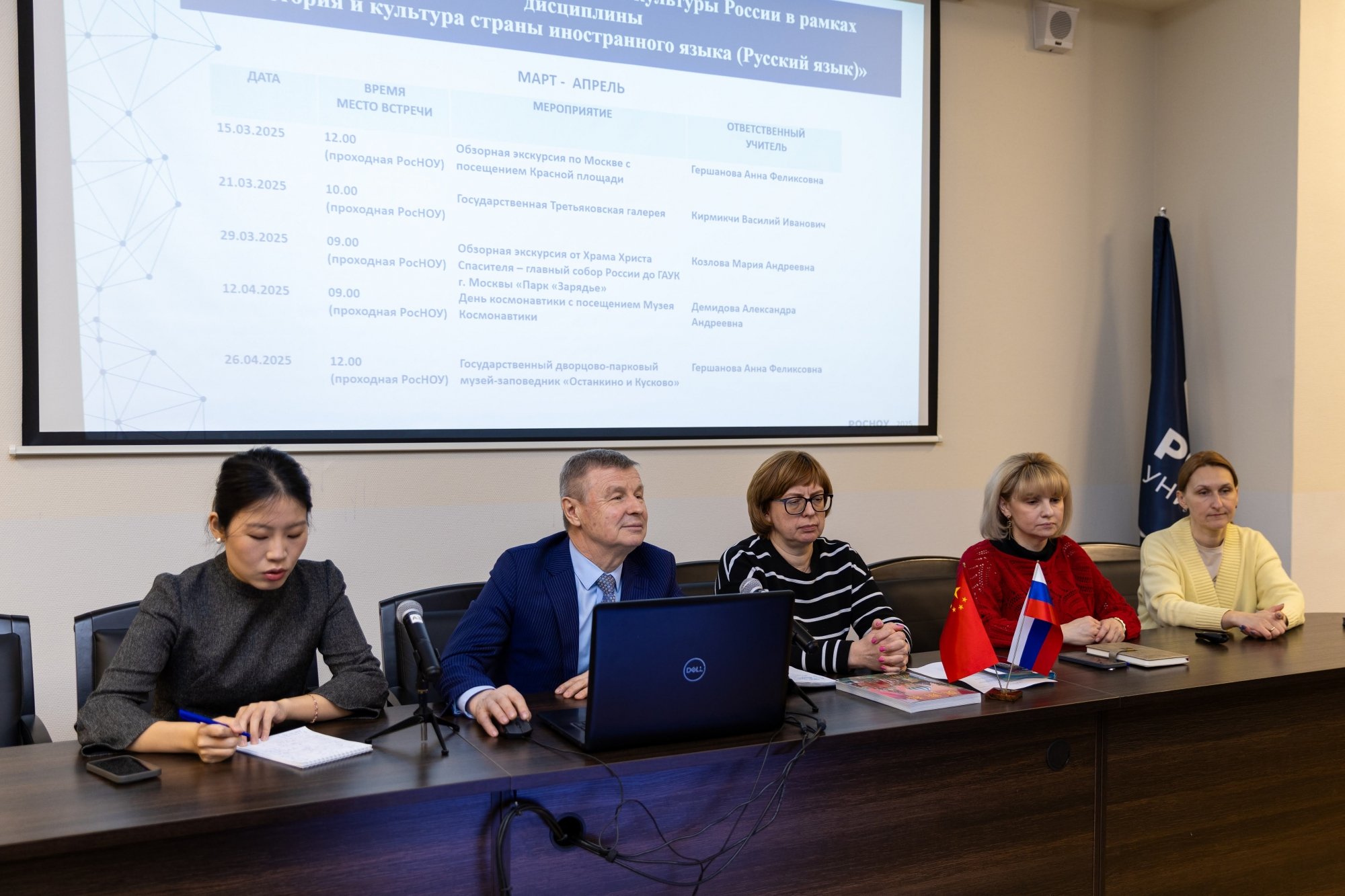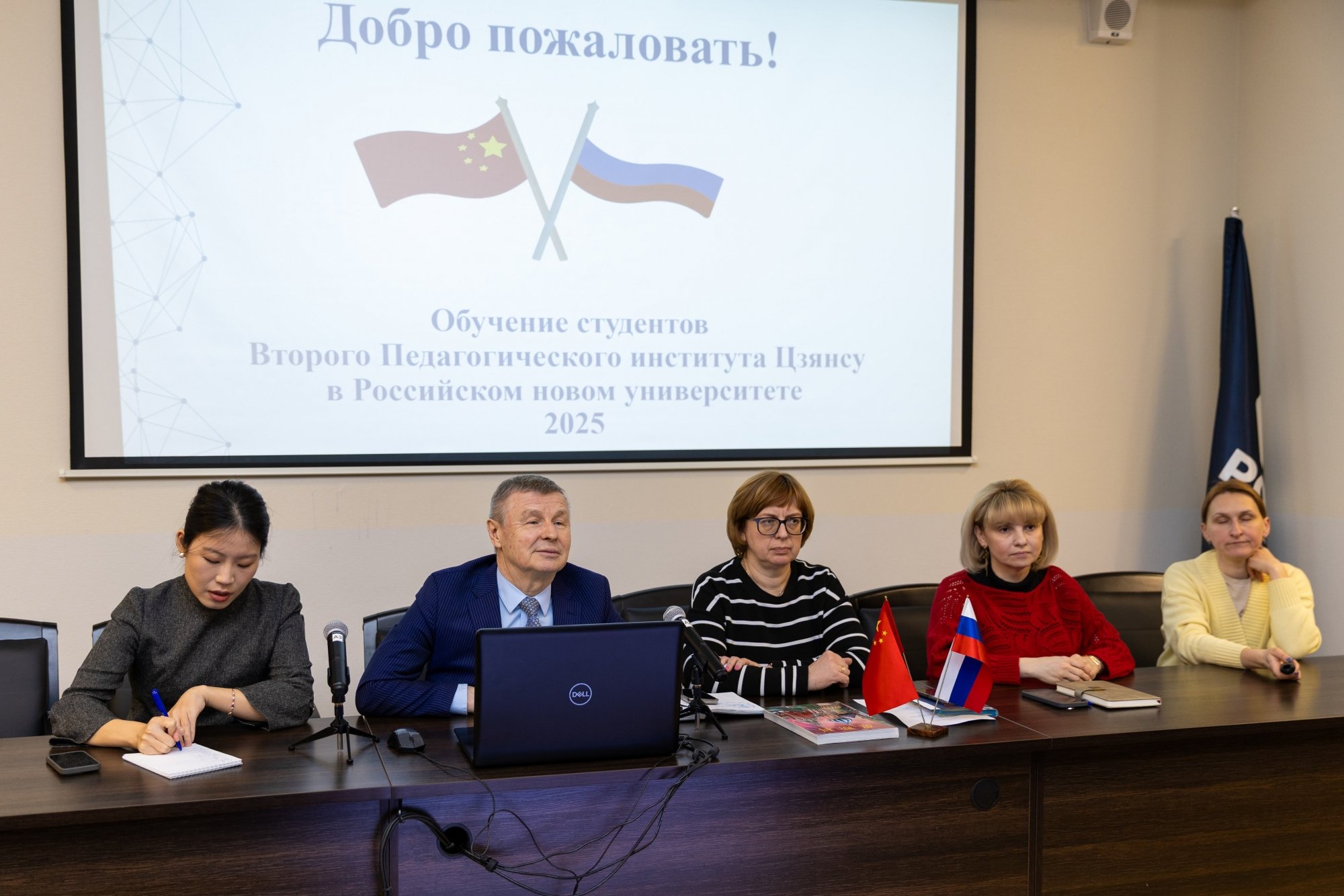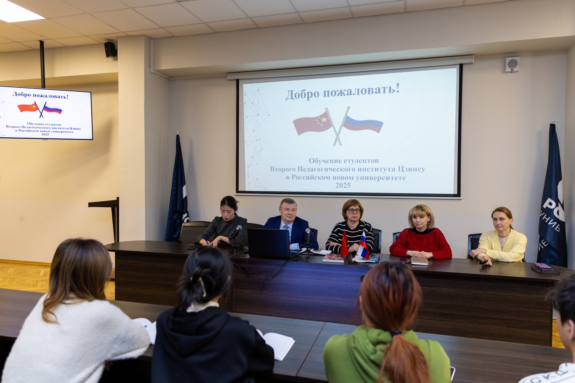 18 марта в зале заседаний учёного совета РосНОУ состоялась встреча с китайскими студентами-второкурсниками Второго педагогического университета Цзянсу. Они учатся на направлениях подготовки «Лингвистика» и «Перевод и переводоведение» и прибыли в РосНОУ по программе академического обмена на семестровую стажировку.