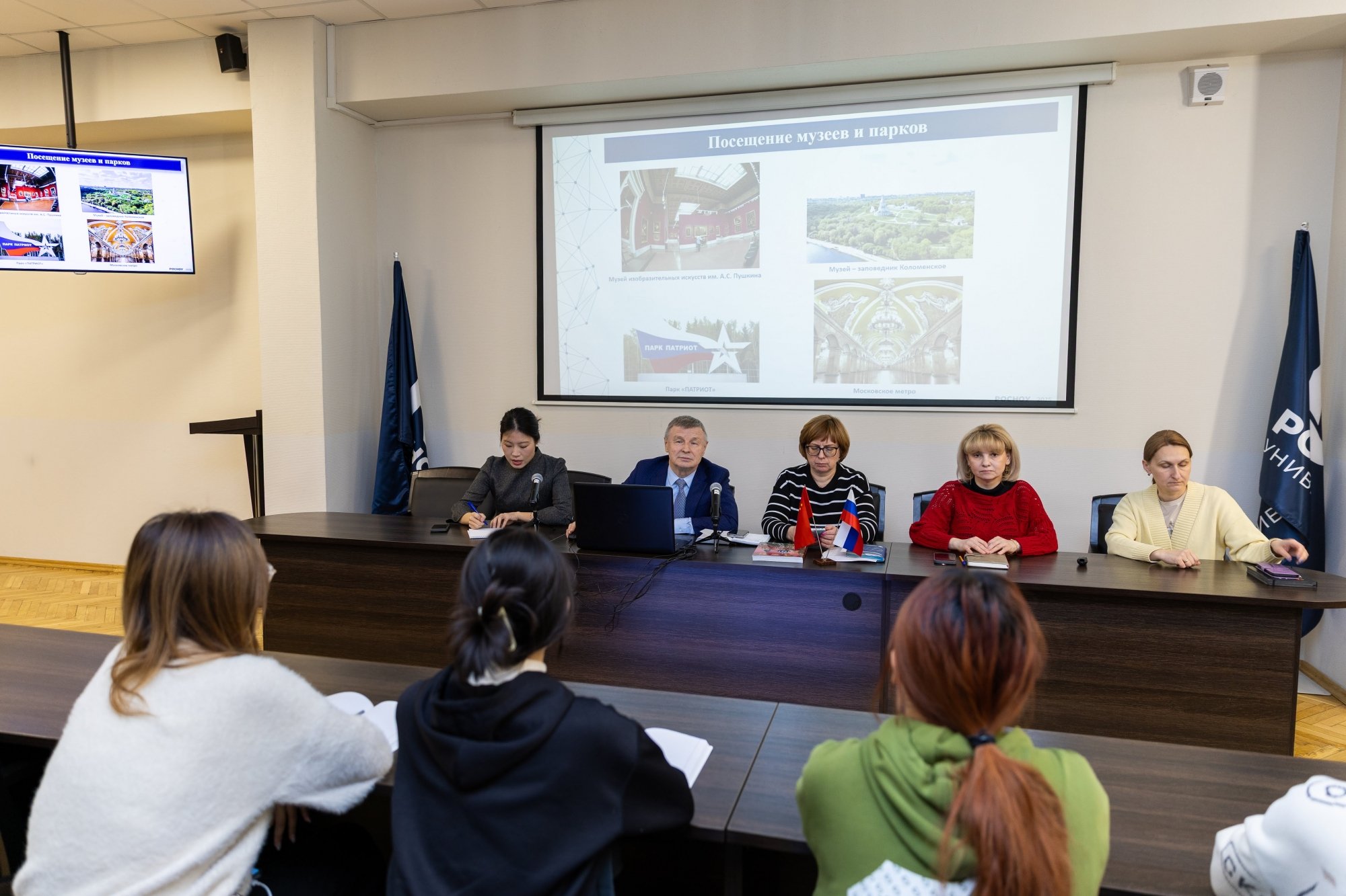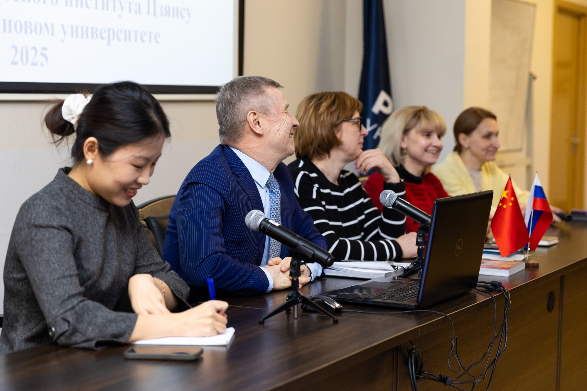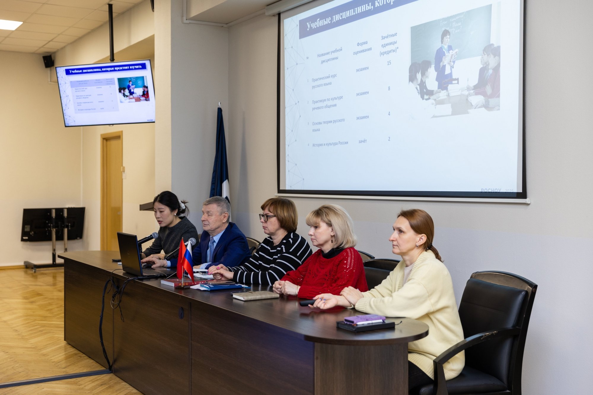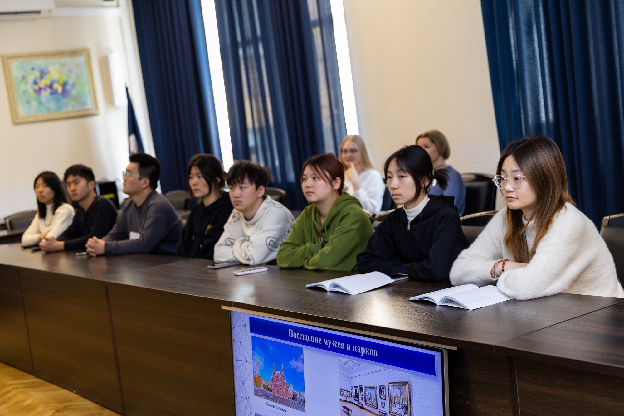 18 марта в зале заседаний учёного совета РосНОУ состоялась встреча с китайскими студентами-второкурсниками Второго педагогического университета Цзянсу. Они учатся на направлениях подготовки «Лингвистика» и «Перевод и переводоведение» и прибыли в РосНОУ по программе академического обмена на семестровую стажировку.