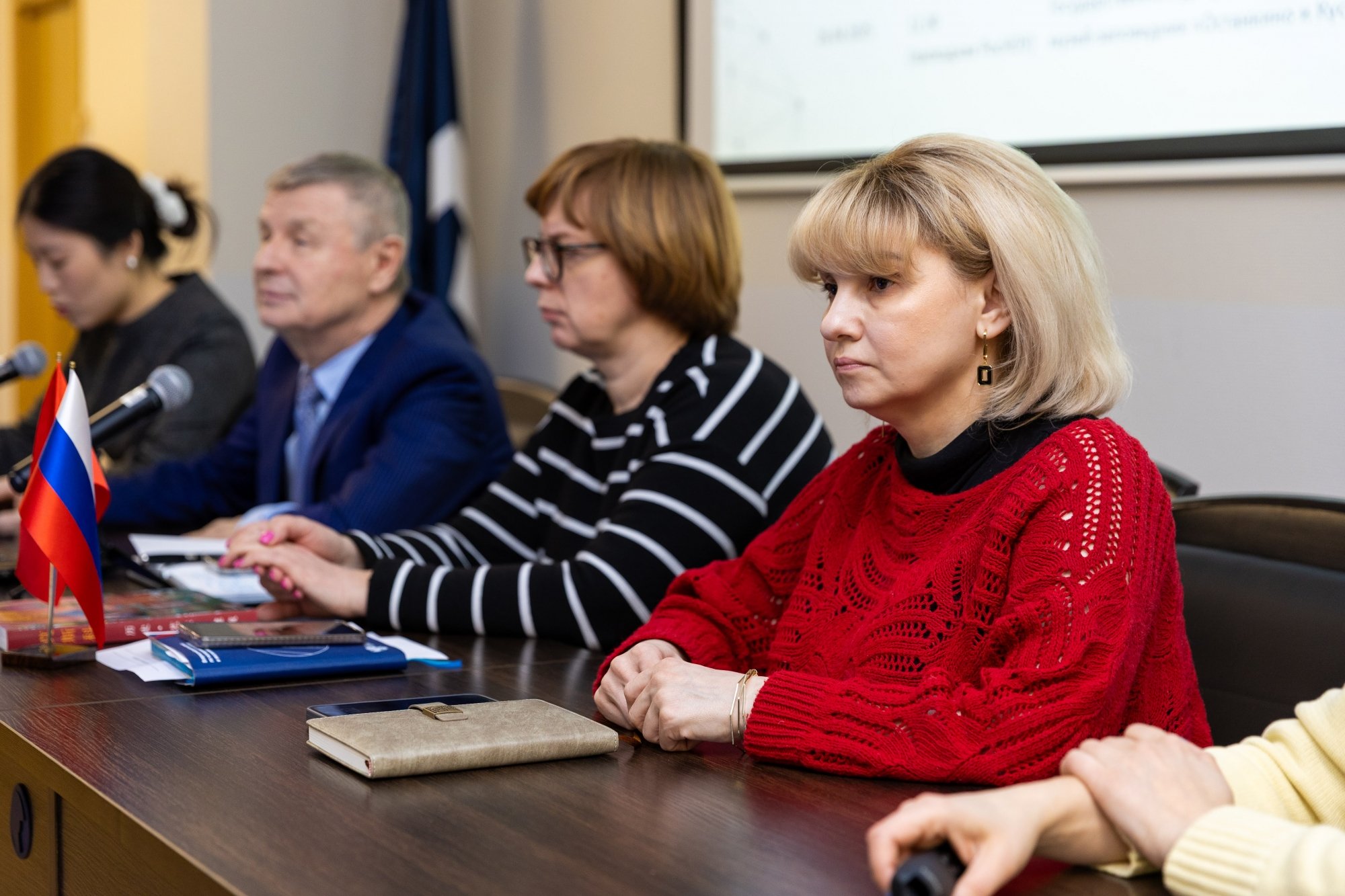Во встрече приняли участие проректор по учебной работе Григорий Александрович Шабанов, проректор по молодежной политике и воспитательной работе Наталья Владимировна Буторова, руководитель международного отдела Оксана Юрьевна Сазановская, исполнительный директор Гуманитарного института Виктория Валерьевна Батколина, переводчик с китайского языка Ван Синюань.