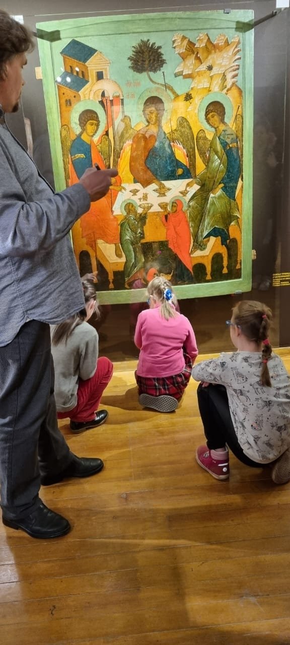 Адаптированную для детей с ограниченными возможностями здоровья экскурсию провели искусствоведы музея, а студенты РосНОУ выступили волонтёрами: они сопровождали детей по экспозиции и помогали им выполнить практические задания.