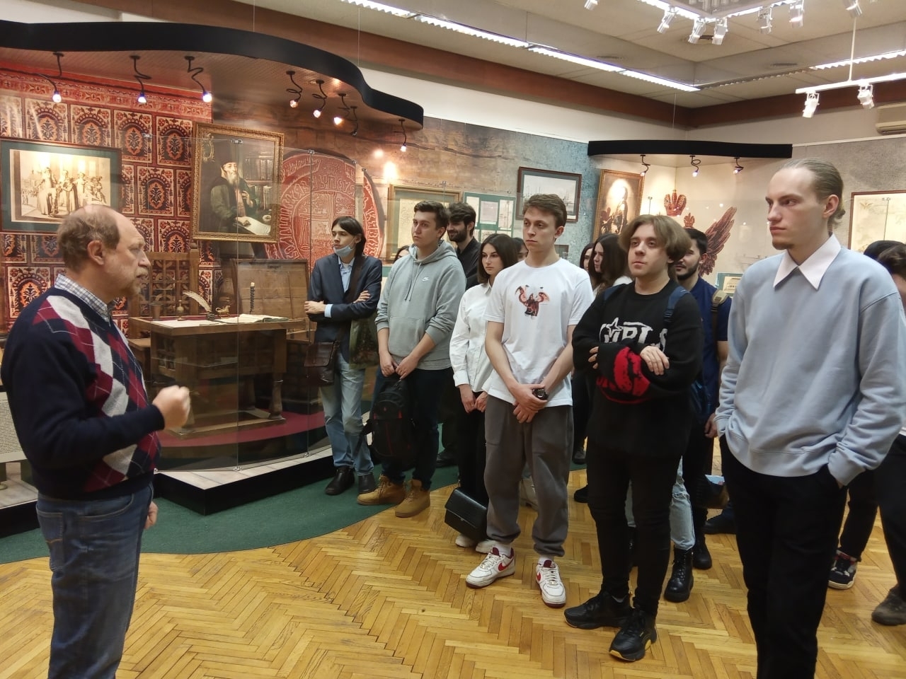 На экскурсии, которую провёл главный специалист музея Николай Евгеньевич Муратов, студенты Российского нового университета (РосНОУ) узнали об истории своей специальности, о таможенном администрировании, познакомились с инструментарием таможенной службы, а также с образцами таможенного законодательства и делопроизводства.