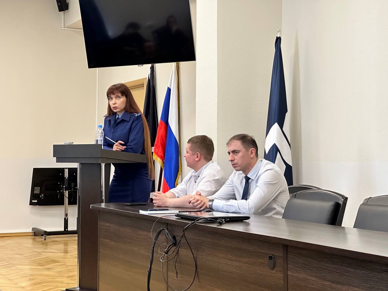 Ольга Валерьевна объяснила устройство таких специализированных органов государственного надзора, как транспортные прокуратуры, раскрыла их полномочия. Прокурор условно разделила деятельность на четыре блока. Первый осуществляет надзор за проведением таможенного контроля, второй — за осуществлением административного и уголовного преследования лиц, преступивших закон, третий — за защитой социальных прав сотрудников таможни, четвёртый — за соблюдением и восстановлением прав лиц, осуществляющих деятельность в сфере таможенного дела.