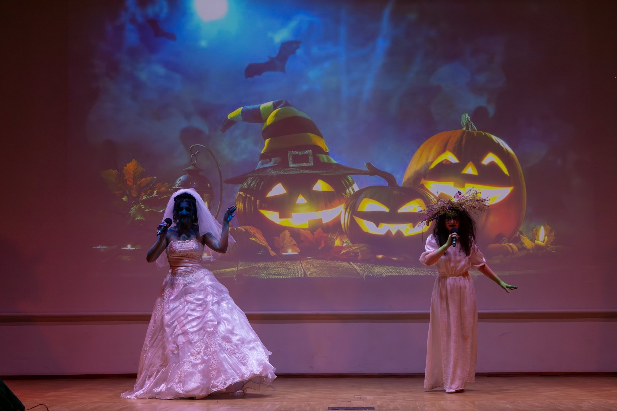 Концертная программа мероприятия состояла из косплей-дефиле, выступлений участниц вокальной студии РосНОУ, студенток Гуманитарного института Эсмиры Оруджовой и Екатерины Лопаевой, тематического квиза «Scary Quiz» от выпускника РосНОУ Егора Колесникова, караоке и танцев.
