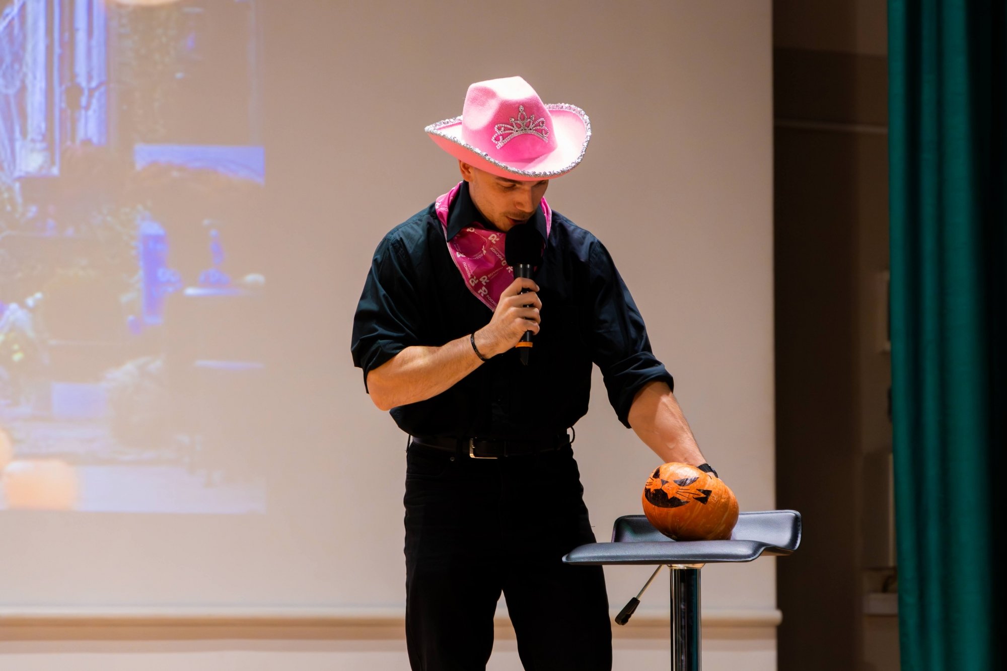 В холле 7-го этажа участники «лихорадки» могли посмотреть мультфильмы, посвящённые Дню всех святых, поучаствовать в интерактивных опытах «Научный шабаш» от студенческого научного общества, продегустировать блюда конкурса «Тыква и точка», оценить плакаты соревнования «Тыквенные аффирмации», сделать фото с конкурсантами «ТыкваПати».