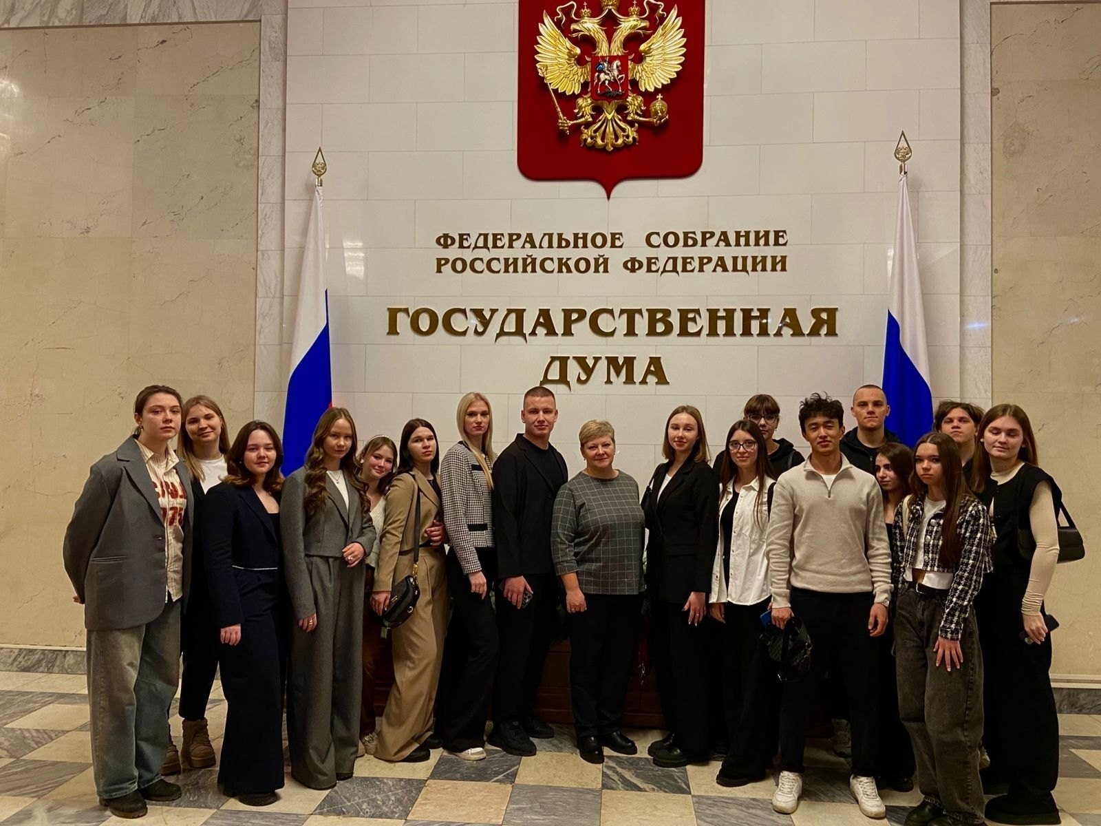 23 декабря студенты Колледжа РосНОУ, обучающиеся по специальности «Юриспруденция» (ранее — «Право и организация социального обеспечения»), посетили с экскурсией Государственную думу РФ. Они познакомились с историей думы, её составом, структурой и организацией работы, побывали в кабинетах депутатов и парламентских партий, а также в Малом зале, где журналистам рассказывают о будущих законах.