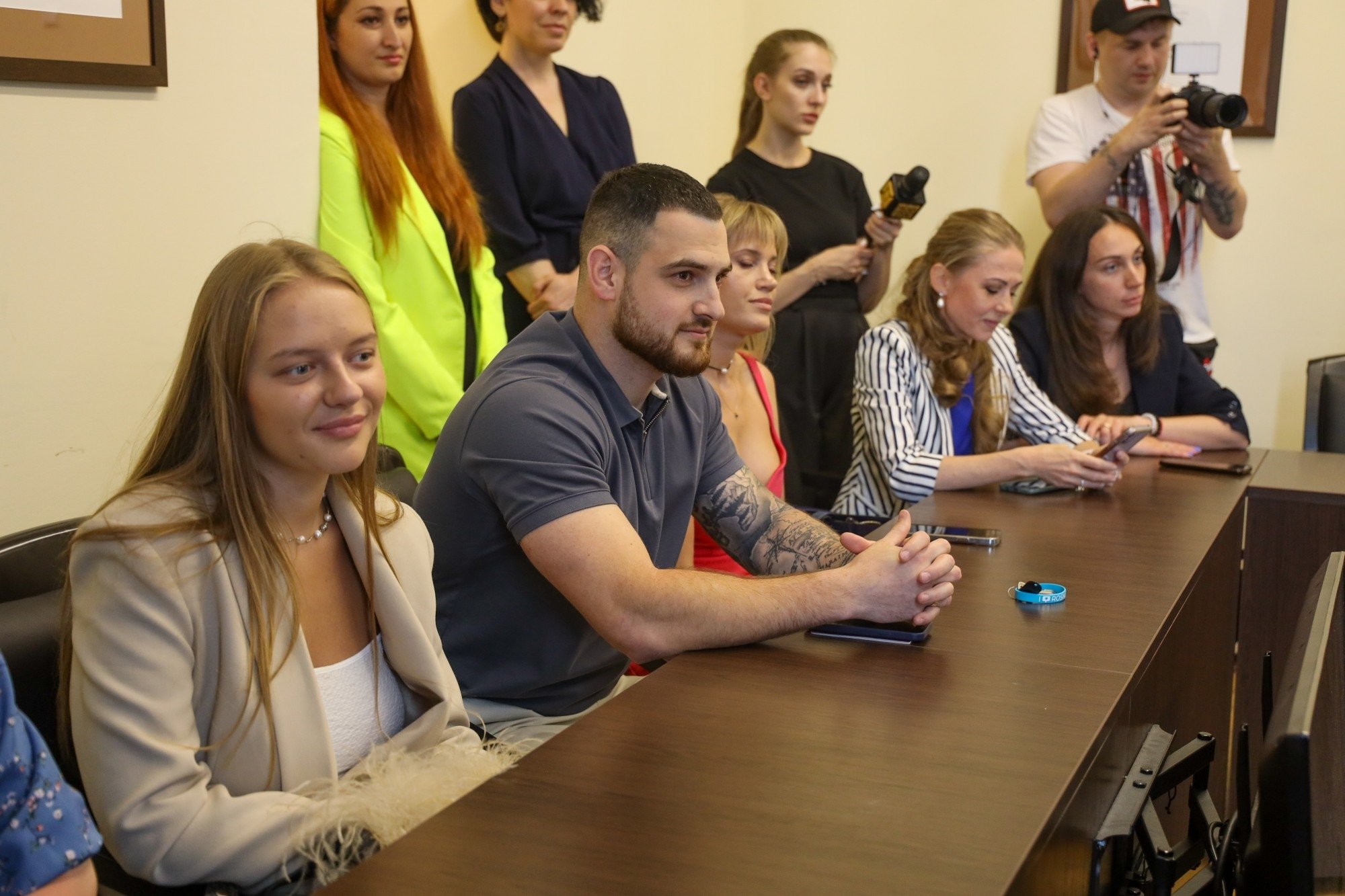 Новая бело-голубая форма понравилась и спортсменкам, и спонсорам, и руководству университета. Девушки пришли на встречу с ректором в длинных платьях, а потом переоделись в футболки и шорты — и стали еще прекраснее. На вопрос о том, почему современные женщины выбрали такое занятие, ответила капитан команды Екатерина Березина.