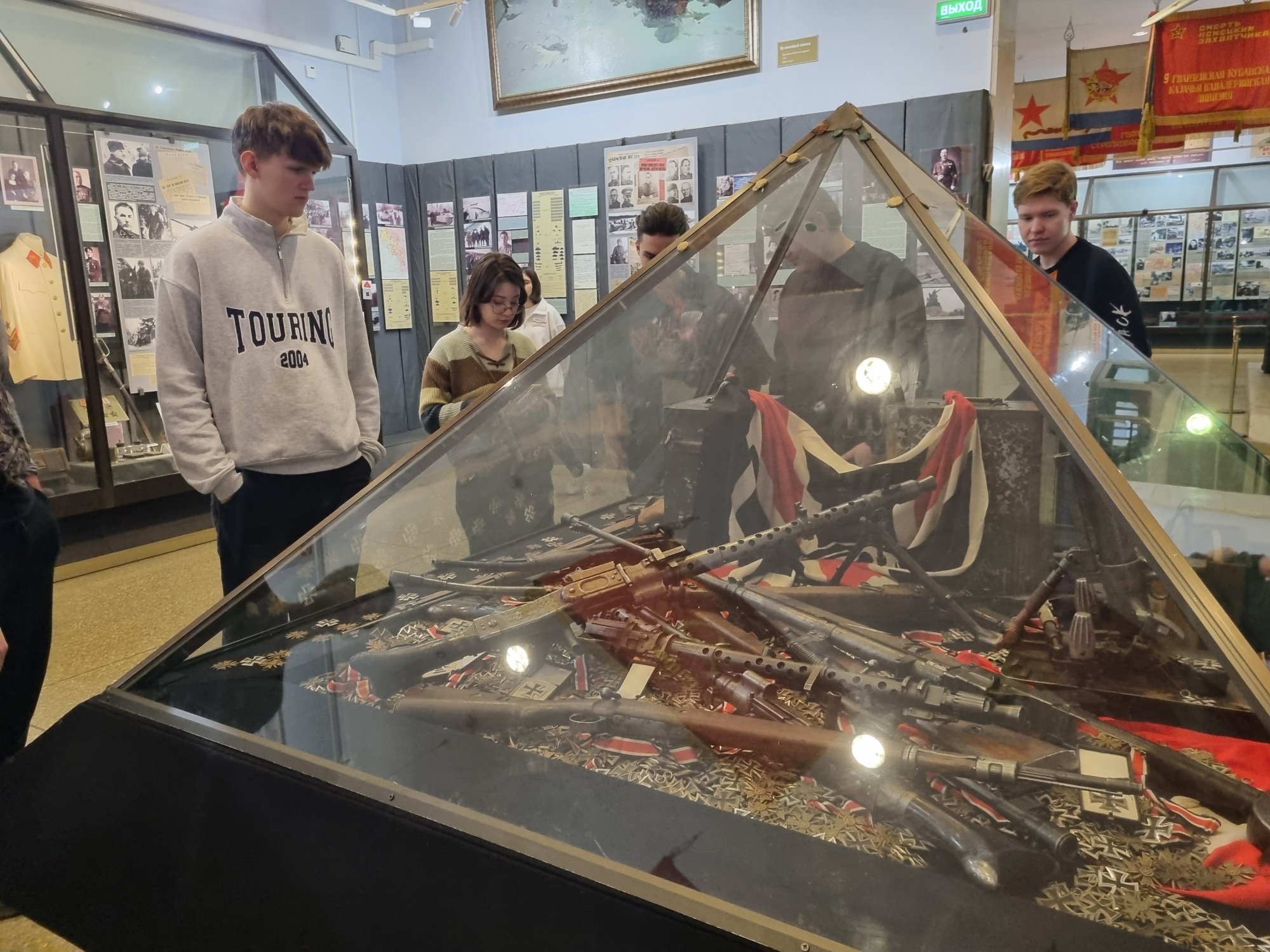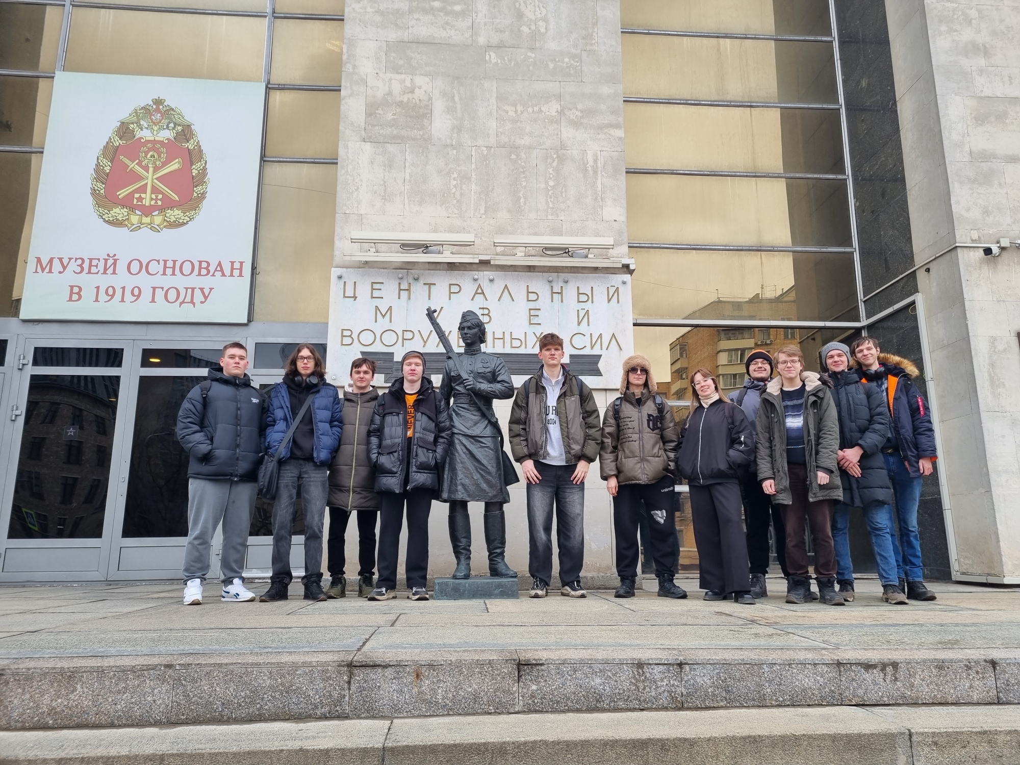 Студенты узнали о создании и развитии регулярной армии в России, совершенствовании видов вооружений и ключевых этапах военной истории страны. Также они ознакомились с залами, посвящёнными современной армии России, и увидели военную технику — танки, самолёты и бронемашины — во дворе музея.