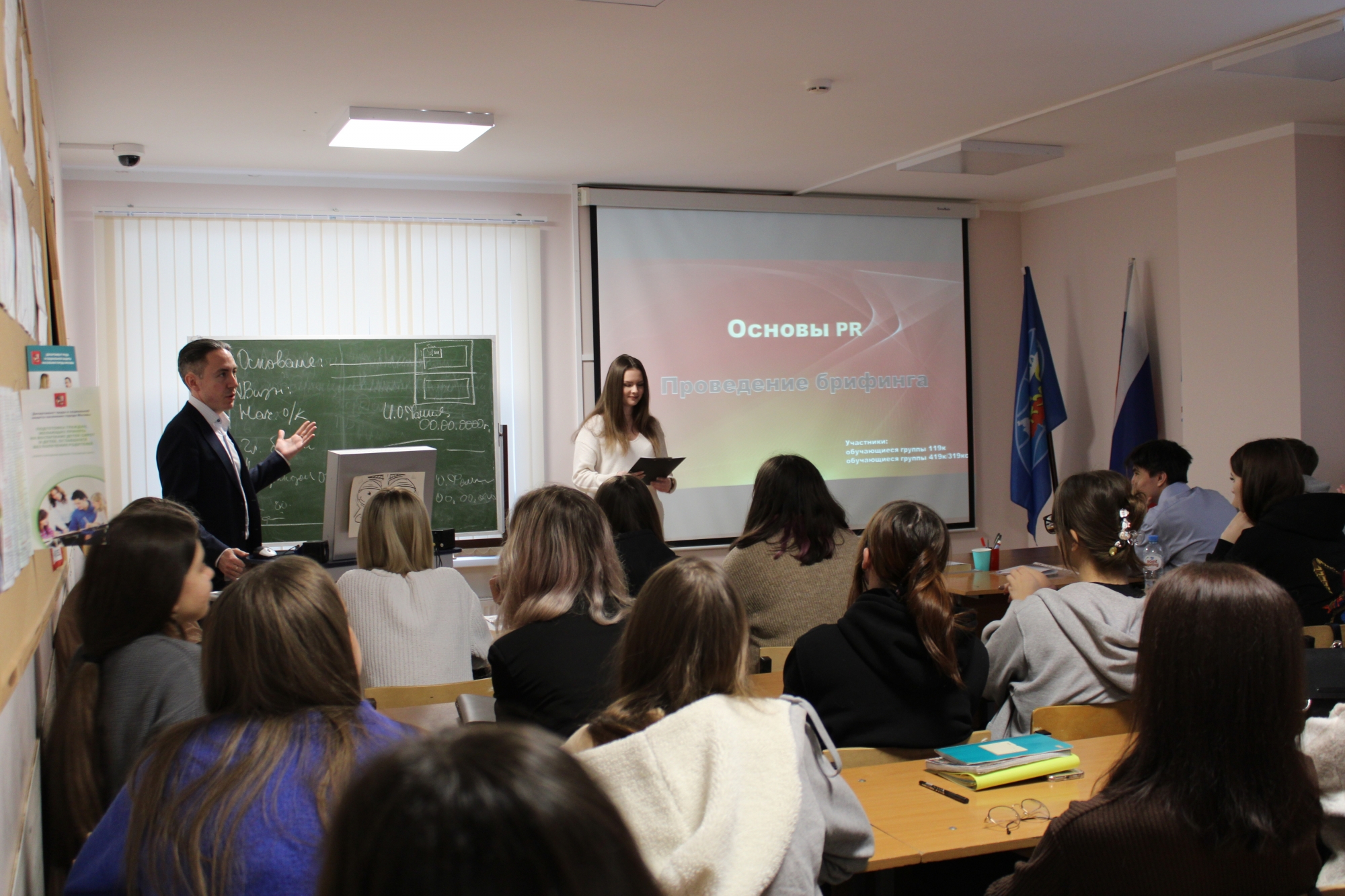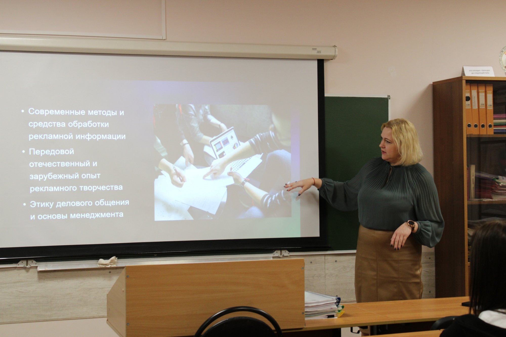 Директор Колледжа РосНОУ Колескина П. С. рассказала студентам первого курса при поддержке третьекурсников об основах рекламного маркетинга на открытом уроке по дисциплине «Маркетинг в рекламе».