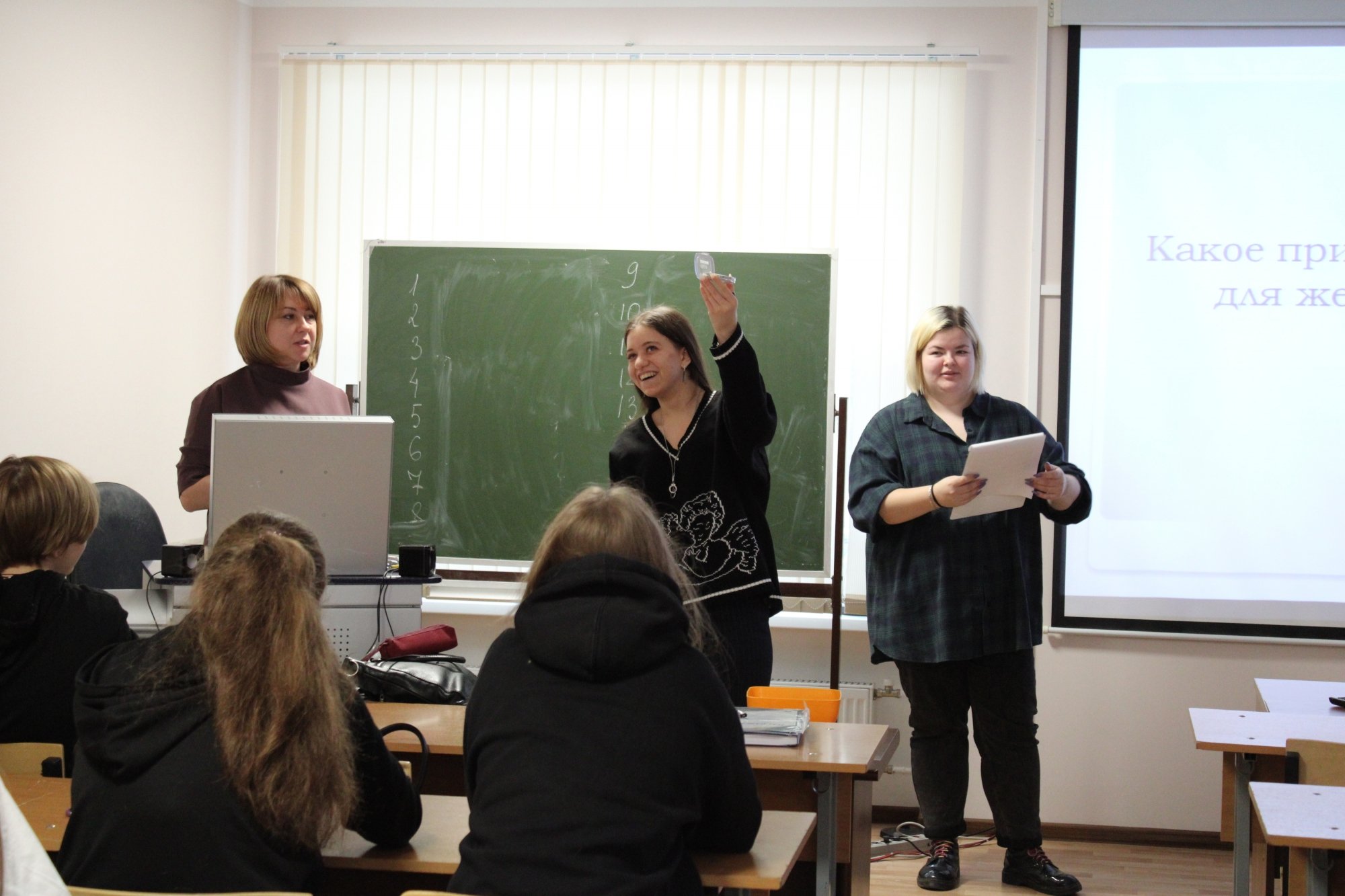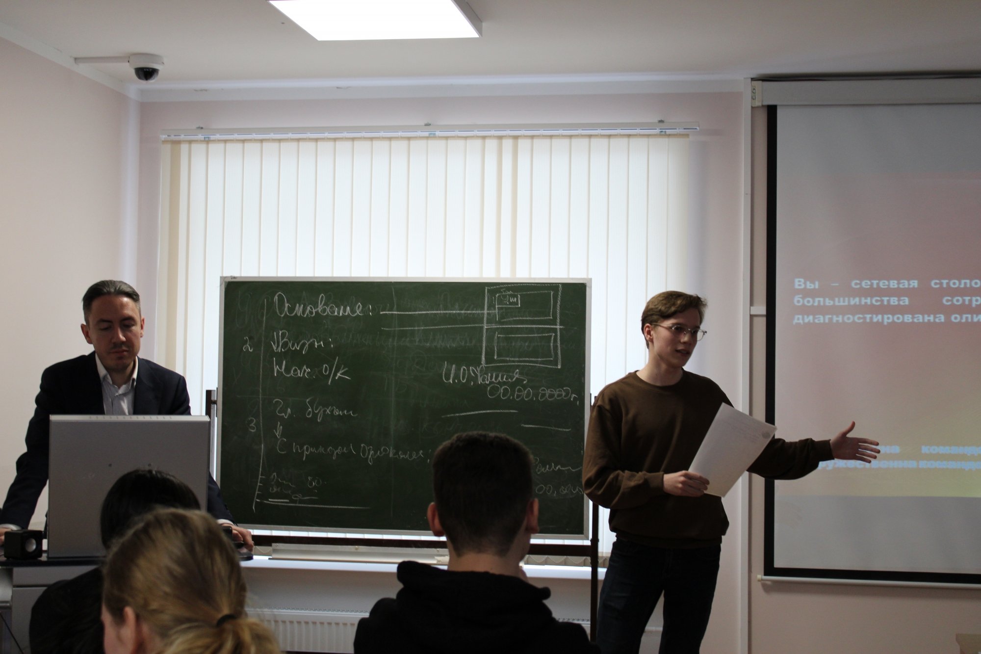 На открытом уроке по дисциплине «Менеджмент и экономические основы рекламной деятельности» преподавателя Ткачук О. В. обучающиеся выпускного курса подготовили доклады на тему «Управление рекламой» и провели мозговые штурмы для первокурсников. Самые активные и креативные участники получили подарки.