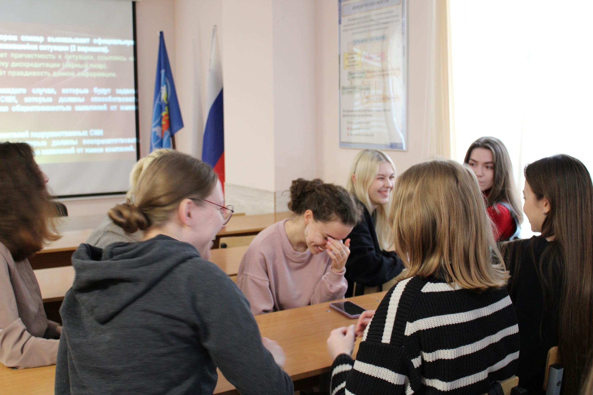 Неделя «Рекламы» в Колледже РосНОУ началась с открытых уроков по дисциплине «Основы PR» председателя ПЦК (предметно-цикловые комиссии) «Рекламы» Баруздина А. А. На занятии «Чёрный PR» учащиеся групп 119, 219 и 419 заслушали доклады Милены Фёдоровой, Александры Мяснянкиной и Александра Мустяцэ, затем разделились на 4 группы для деловой игры. Студенты готовили заявления для брифинга и вопросы от СМИ, по очереди выступали и отвечали на вопросы «конкурентов». Впечатление на всех присутствующих грамотными выступлениями и блестящими ответами даже на самые каверзные вопросы произвели первокурсники.