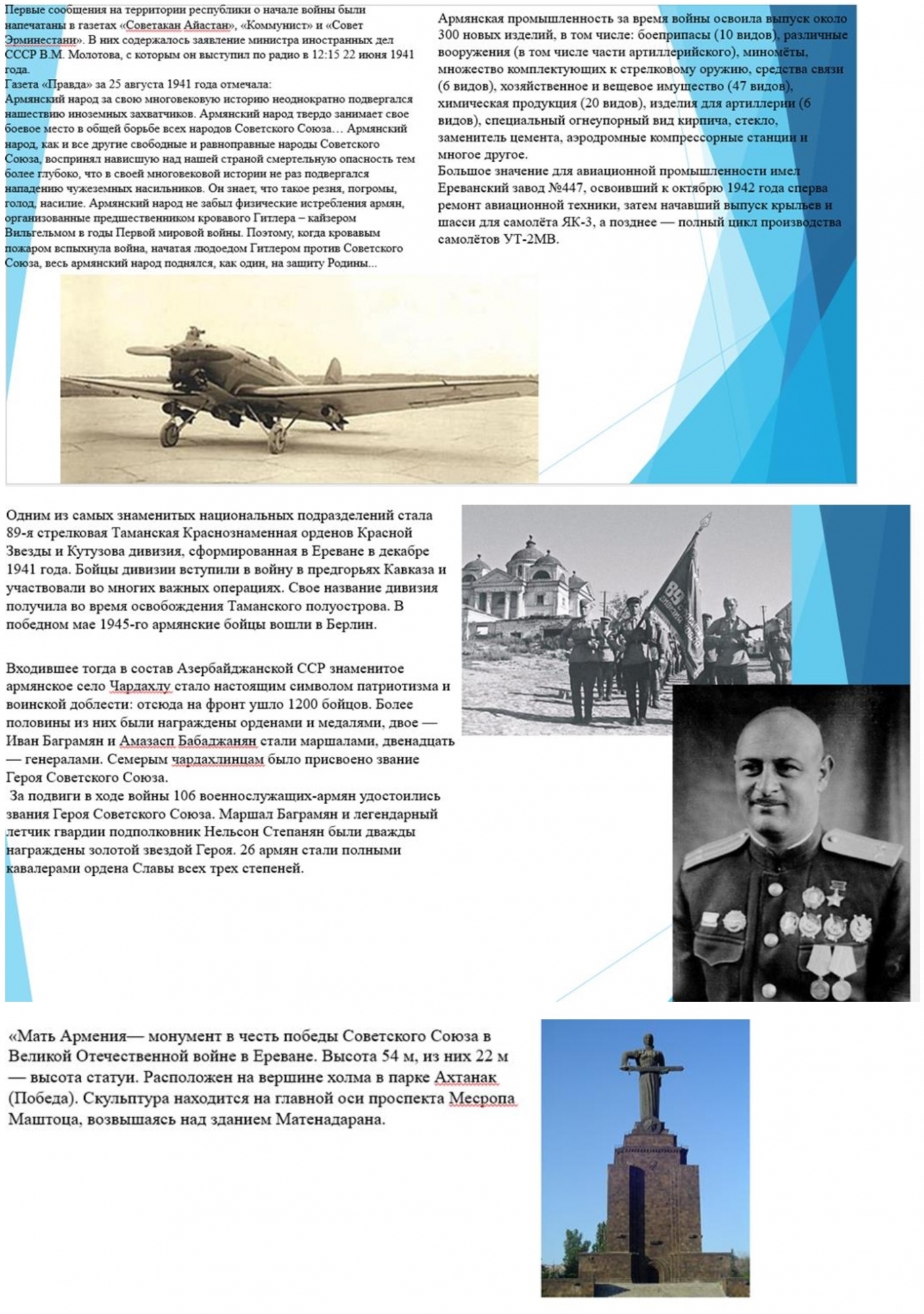 «Сталинградская победа принесла людям надежду и веру, она укрепила ряды борцов с фашизмом. В битве под Сталинградом принимало участие с обеих сторон более двух миллионов человек на территории ста тысяч квадратных километров. В ней была разгромлена четвёртая часть военных сил Вермахта, действовавших на восточном фронте. История войн не знала таких сражений. Это была не только победа одной армии над другой. Это был исторический подвиг советского народа и его вооруженных сил, решивший судьбу фашисткой Германии и нового фашистского порядка в Европе».