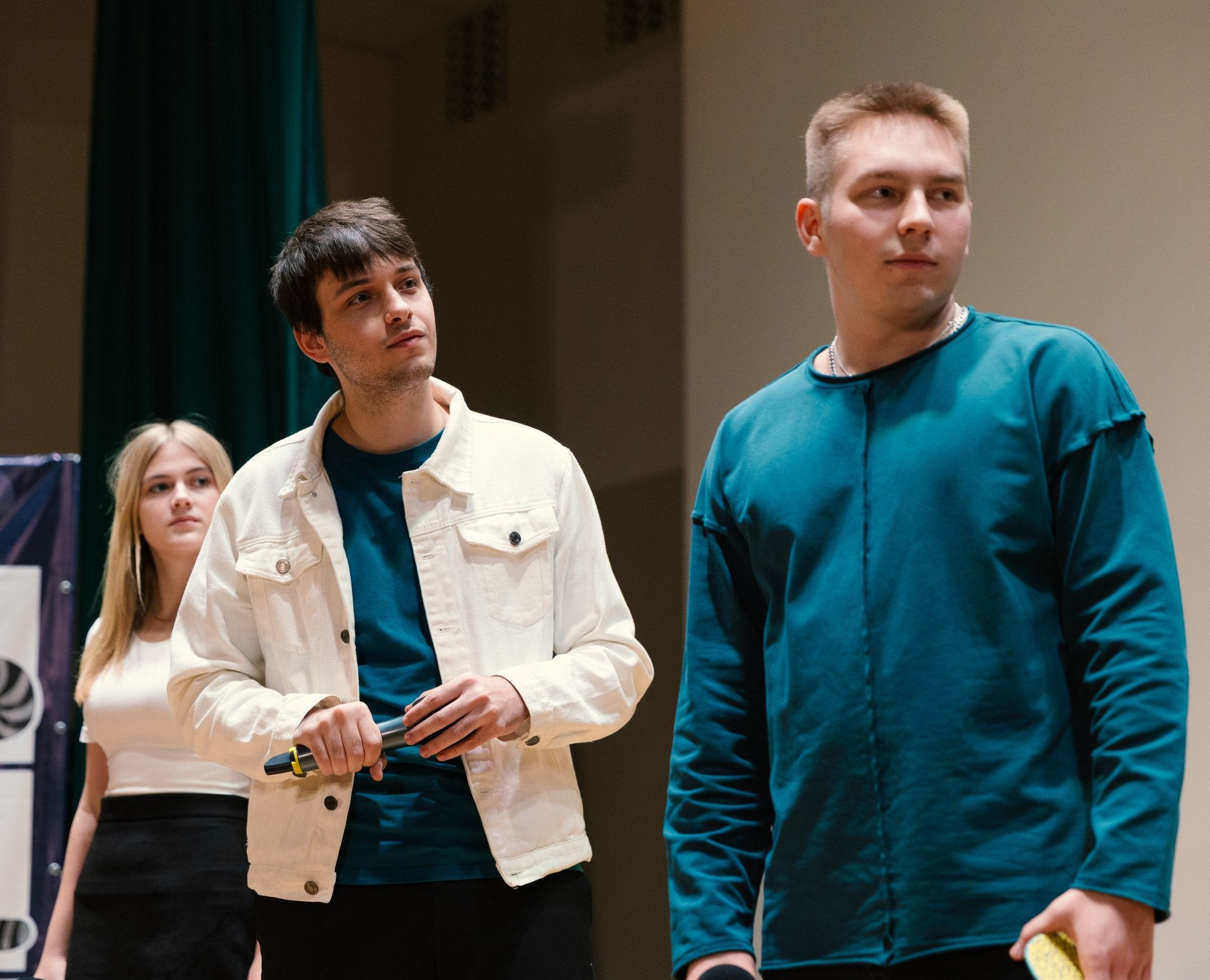 Команды сыграли конкурс «Приветствие». Пока жюри совещалось, ведущая игры Наталья Теряева провела разминку с залом и с помощью рандомайзера разыграла среди зрителей, подписавшихся на ВК Студии комедии, умную колонку SberBoom (победила студентка РосНОУ Полина Власова).
