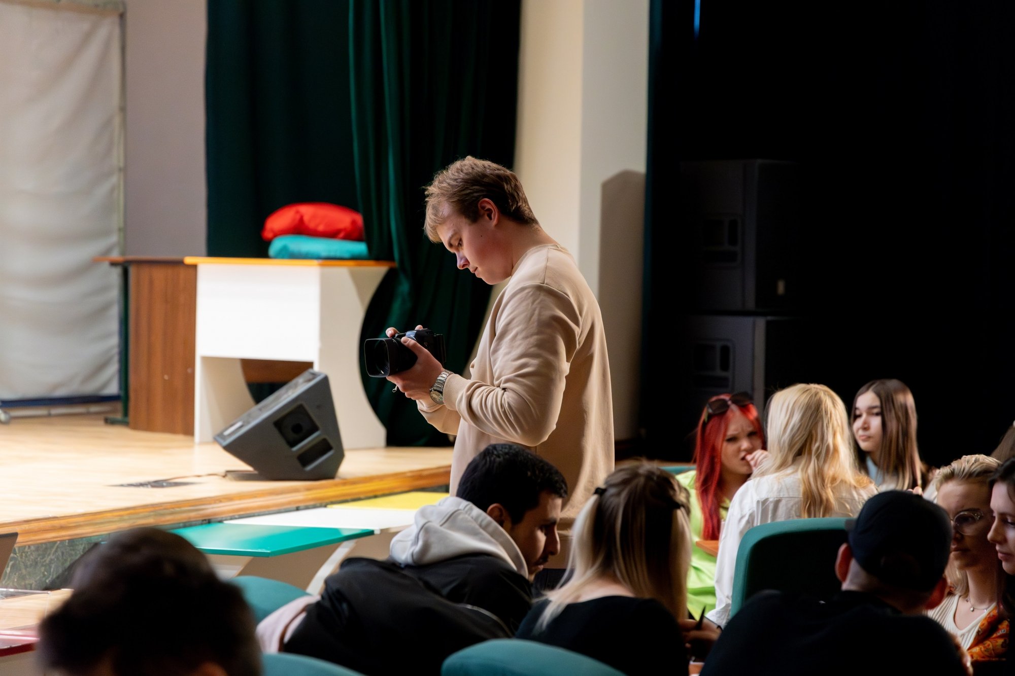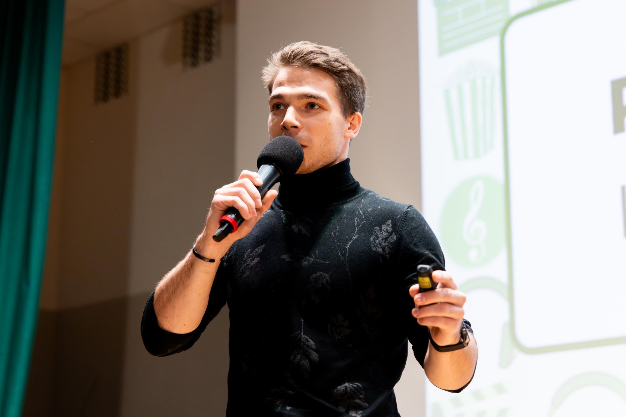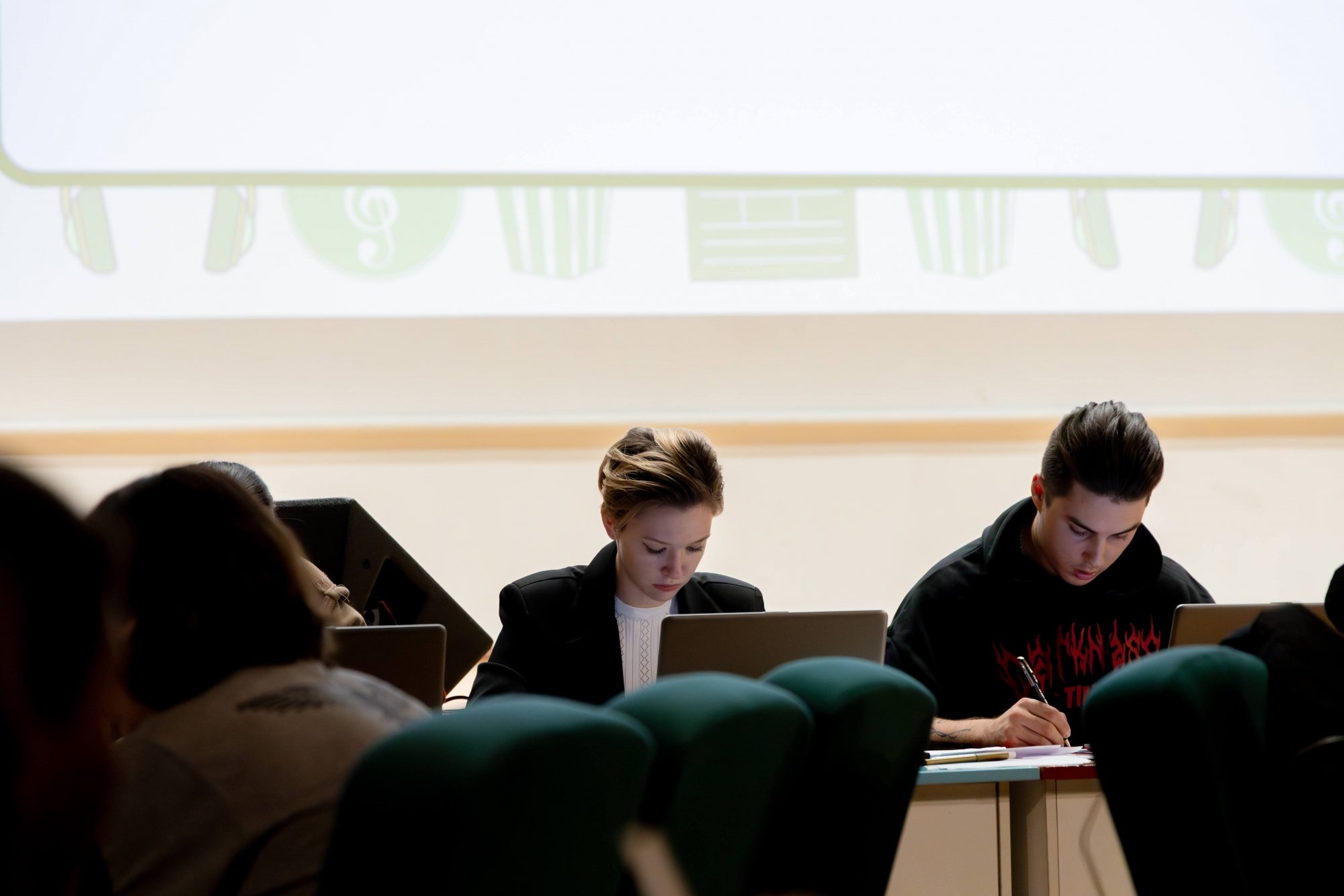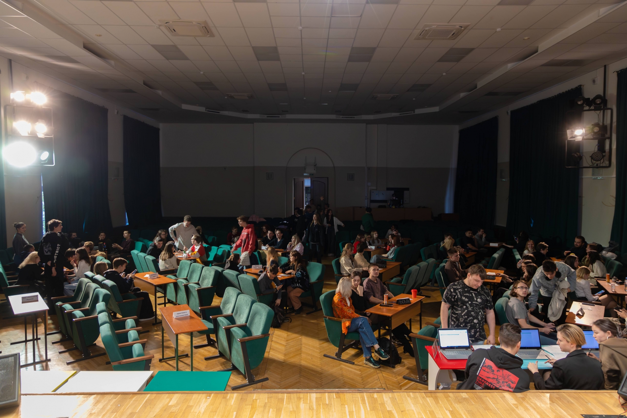 14 октября в Малахитовом зале Российского нового университета прошел интеллектуально-развлекательный РосНОУ-квиз «Кино и музыка» № 7. За звание лучших кино- и меломанов боролись студенты пяти учебных подразделений: шесть команд Гуманитарного института, пять — Института бизнес-технологий, четыре — ИСИКТ, две — Налогового института, одна — колледжа РосНОУ и две сборные. Для турнира это новый рекорд — предыдущий держался с пятого квиза, который прошел год назад и собрал 18 команд.