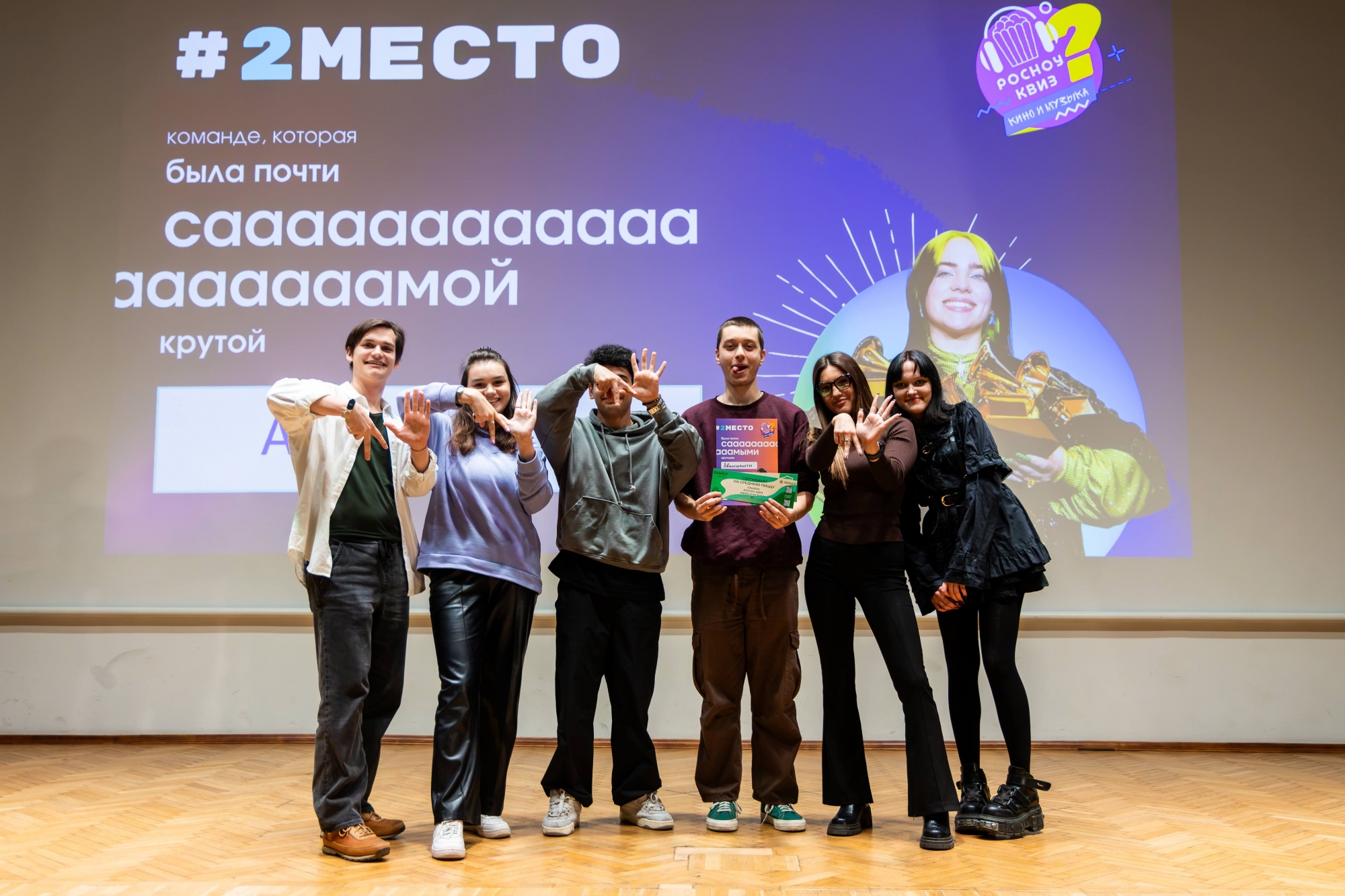 Квиз показался нам идеально сбалансированным — местами простым, местами сложным, вопросы были интересными и необычными. Понравилось разнообразие раундов: ожидали только отрывки песен и кадры из фильмов, а здесь организаторы разошлись на всю катушку.