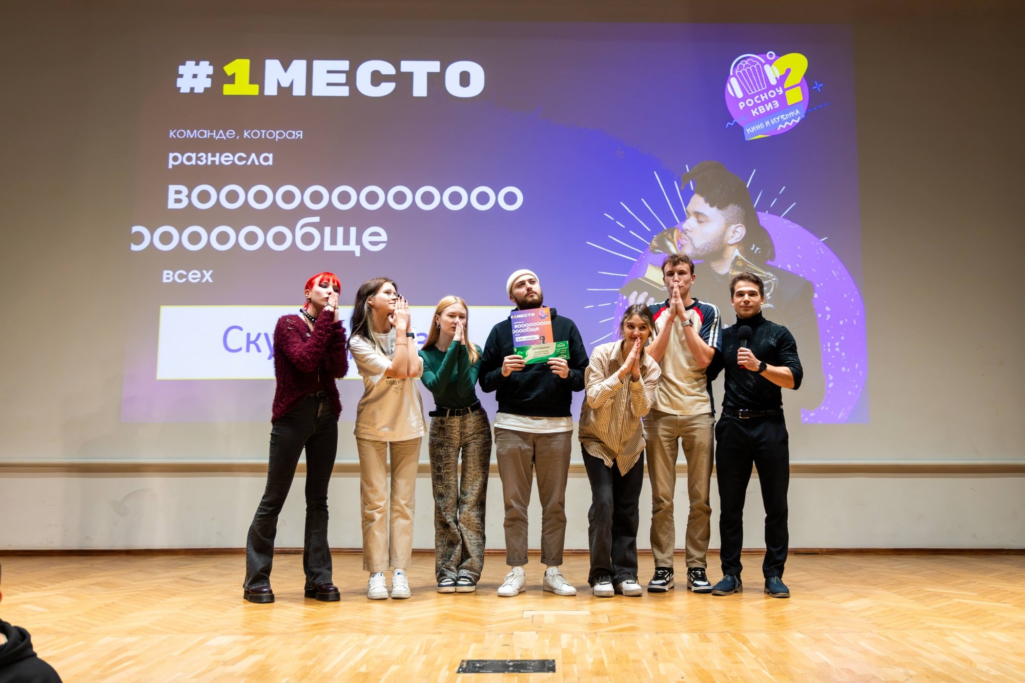 Победу в квизе впервые одержала сборная — «скуф и друзья», в которую вошли студенты Гуманитарного института и Института бизнес-технологий.