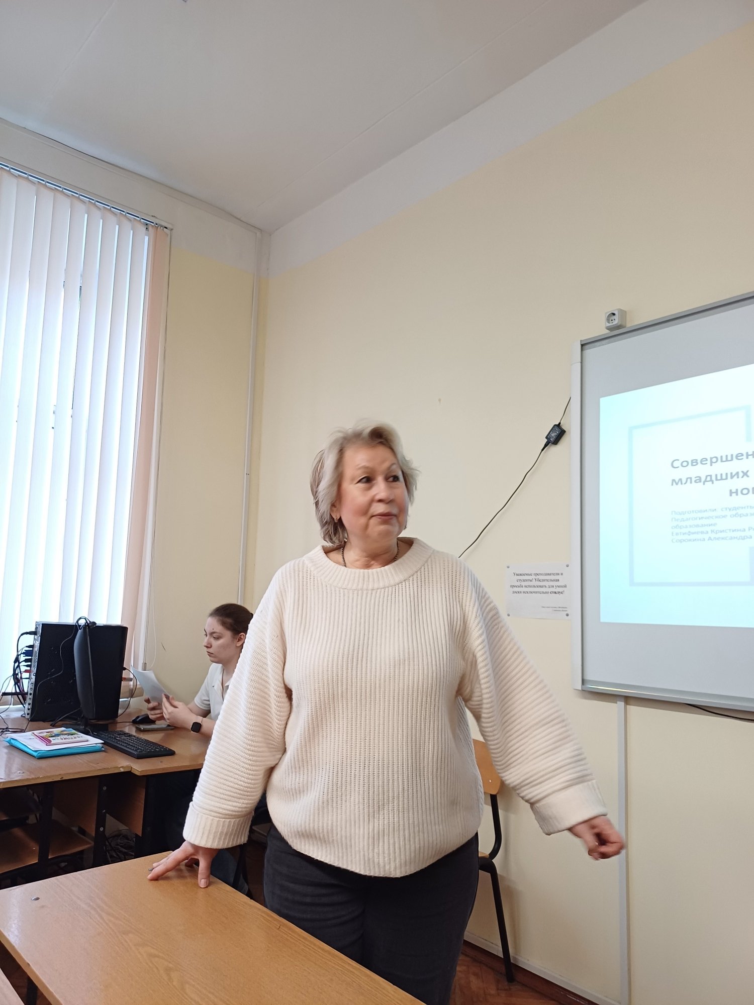 В мастер-классе приняли участие около двадцати студентов Колледжа РосНОУ и первокурсников Гуманитарного института направления подготовки «Педагогическое образование». Занятие для будущих педагогов и логопедов провели доцент кафедры педагогического и специального дефектологического образования ГИ РосНОУ Оксана Викторовна Дорошенко и преподаватель Татьяна Владимировна Алабина. Они продемонстрировали, как с помощью интерактивных упражнений, шумовых инструментов, музыки, ложек и колокольчиков можно развивать речевые и двигательные навыки детей, в том числе и обучающихся с ограниченными возможностями здоровья.