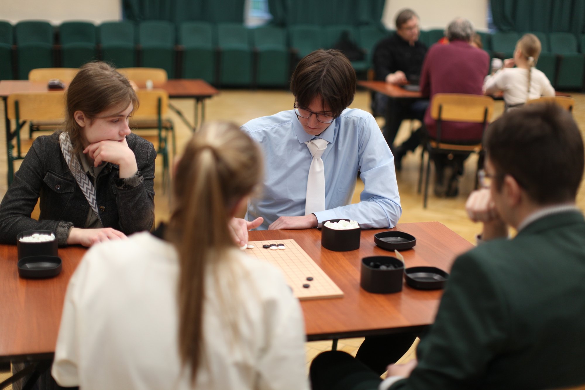 Го — логическо-стратегическая игра, созданная в Древнем Китае около двух тысяч лет до нашей эры. Два игрока стараются оградить своими камнями (фишками чёрного или белого цвета) как можно большую территорию на размеченной линиями доске. Побеждает тот, кто окружит больше территории, при этом камень или группа камней, окружённая фишками другого цвета, снимается с доски.