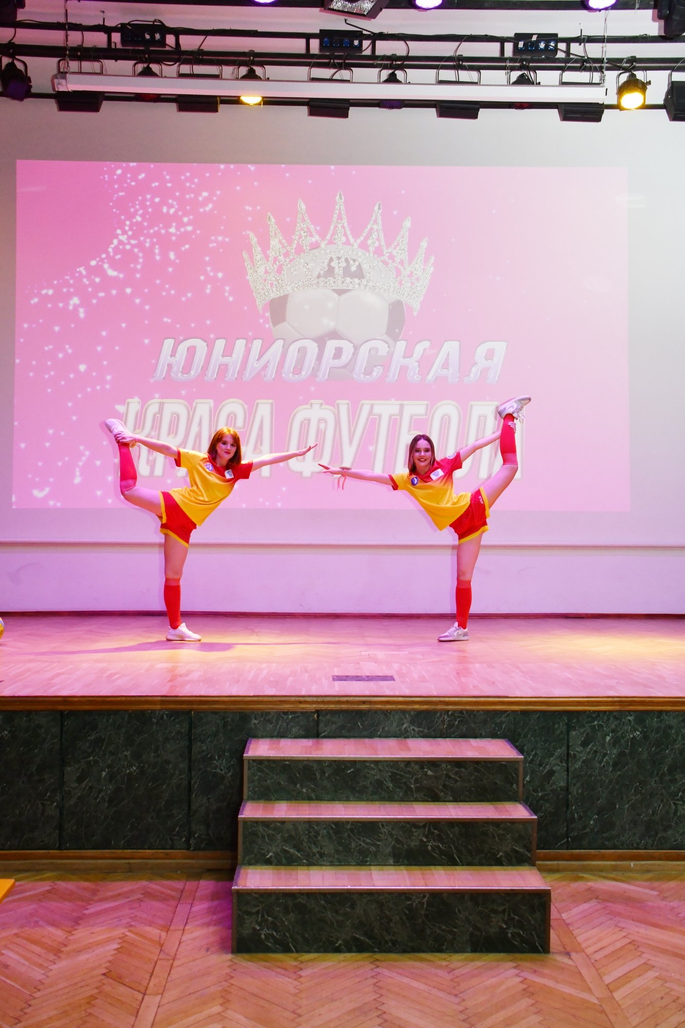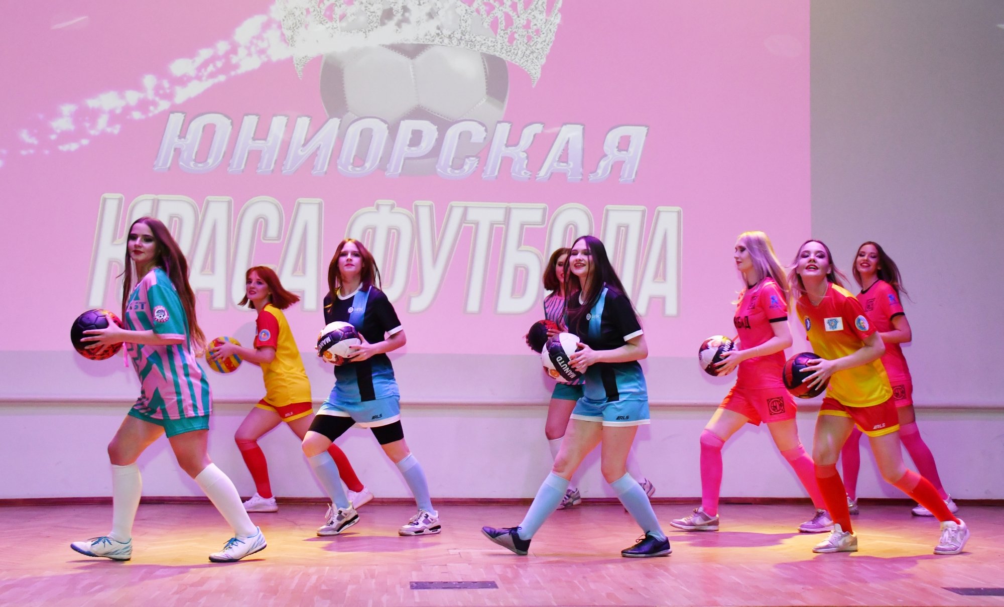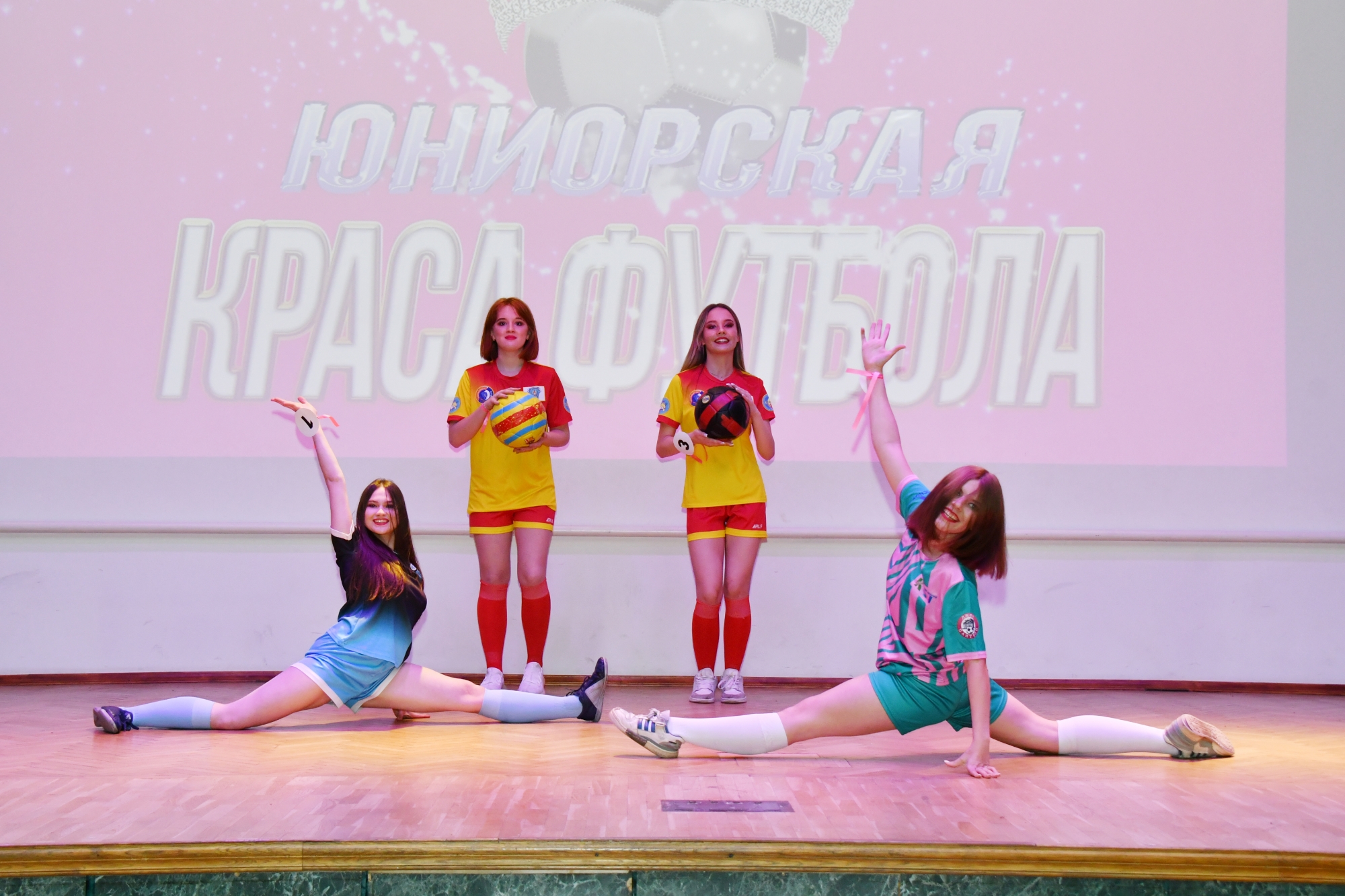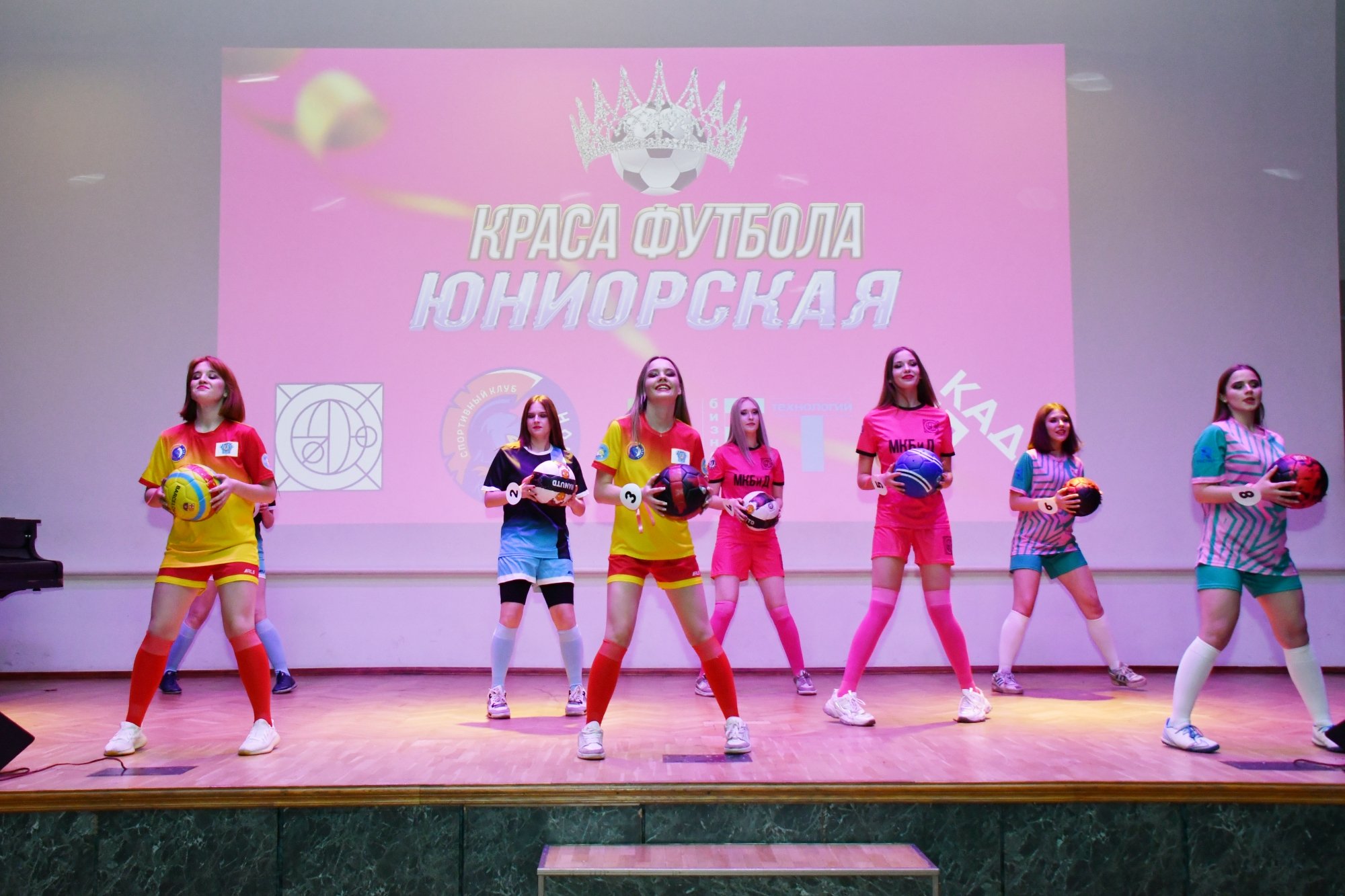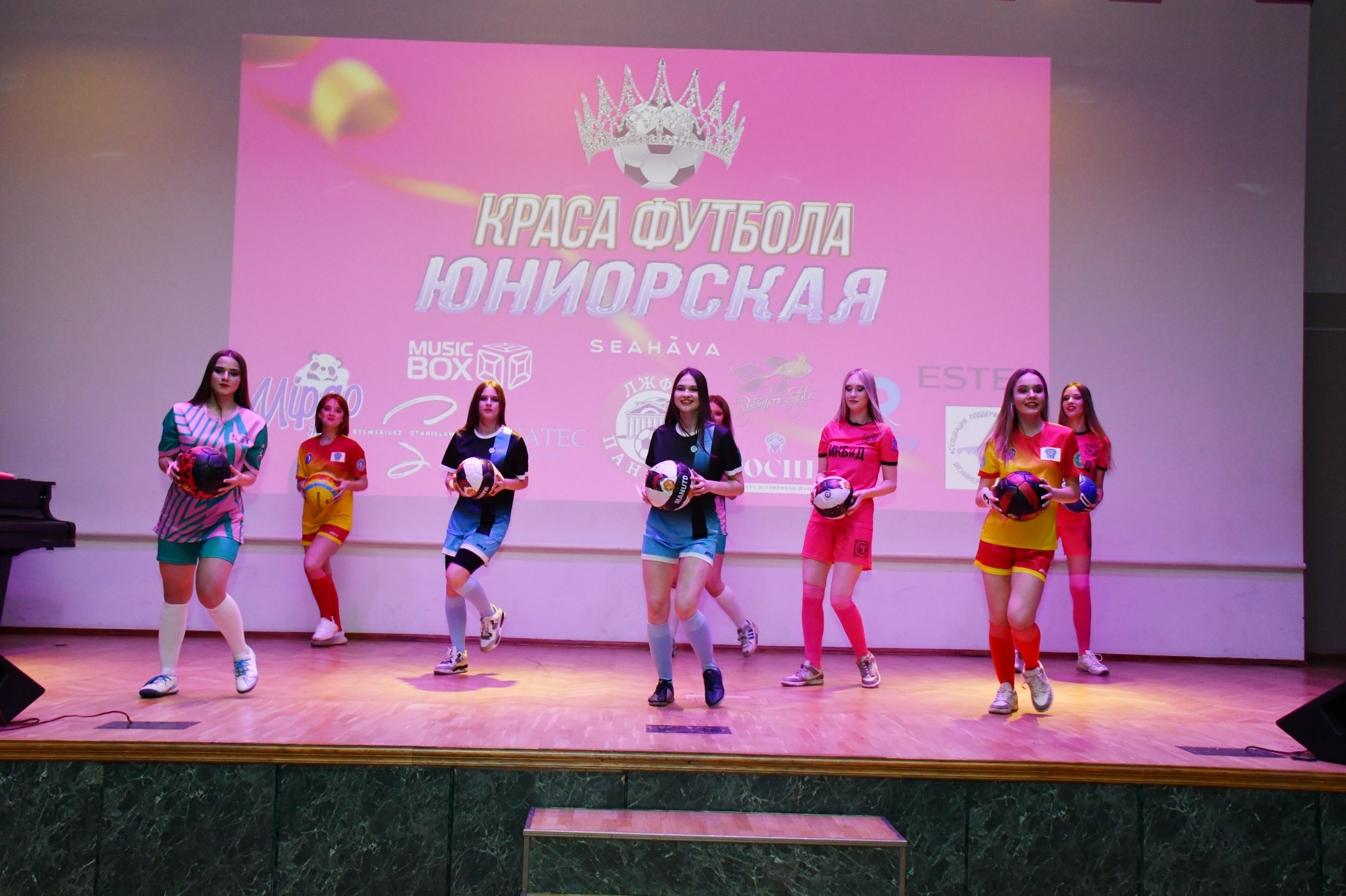 Участницы «Юниорской красы футбола» показали визитку-дефиле в дизайнерских платьях, танец-флешмоб в спортивной форме и вышли на сцену в вечерних платьях под песню Ивана Рыбникова «Мадонна Рафаэля». В четвертой номинации, «Минута славы», студентки представили творческие номера.