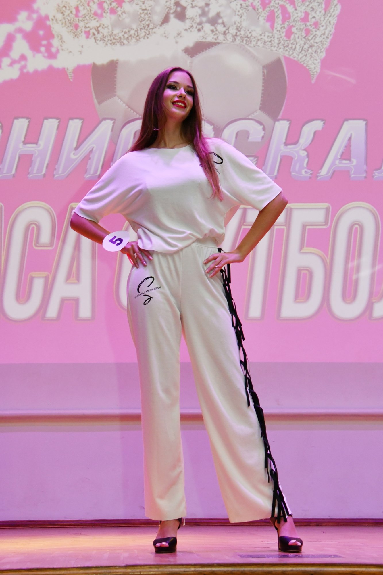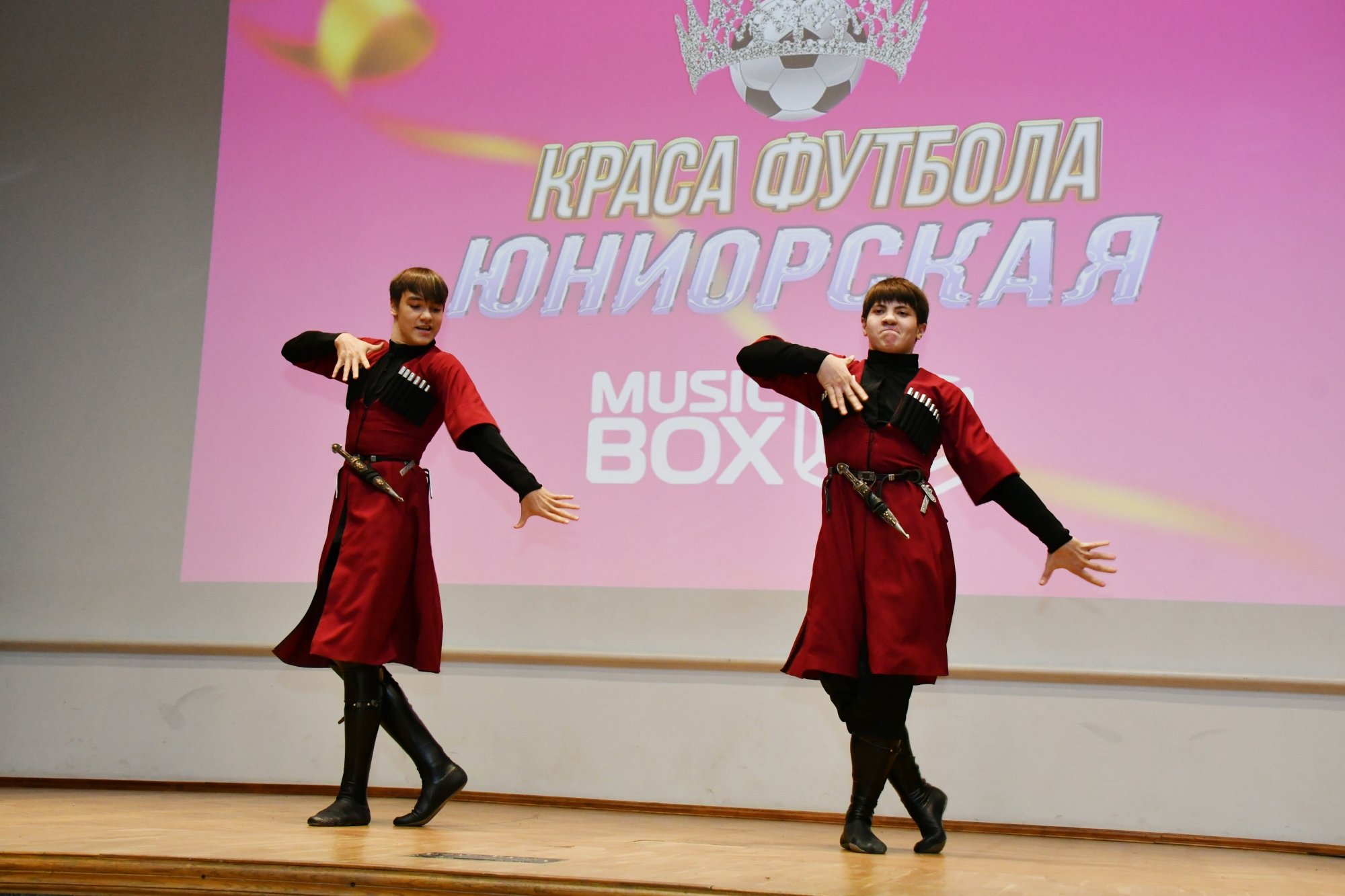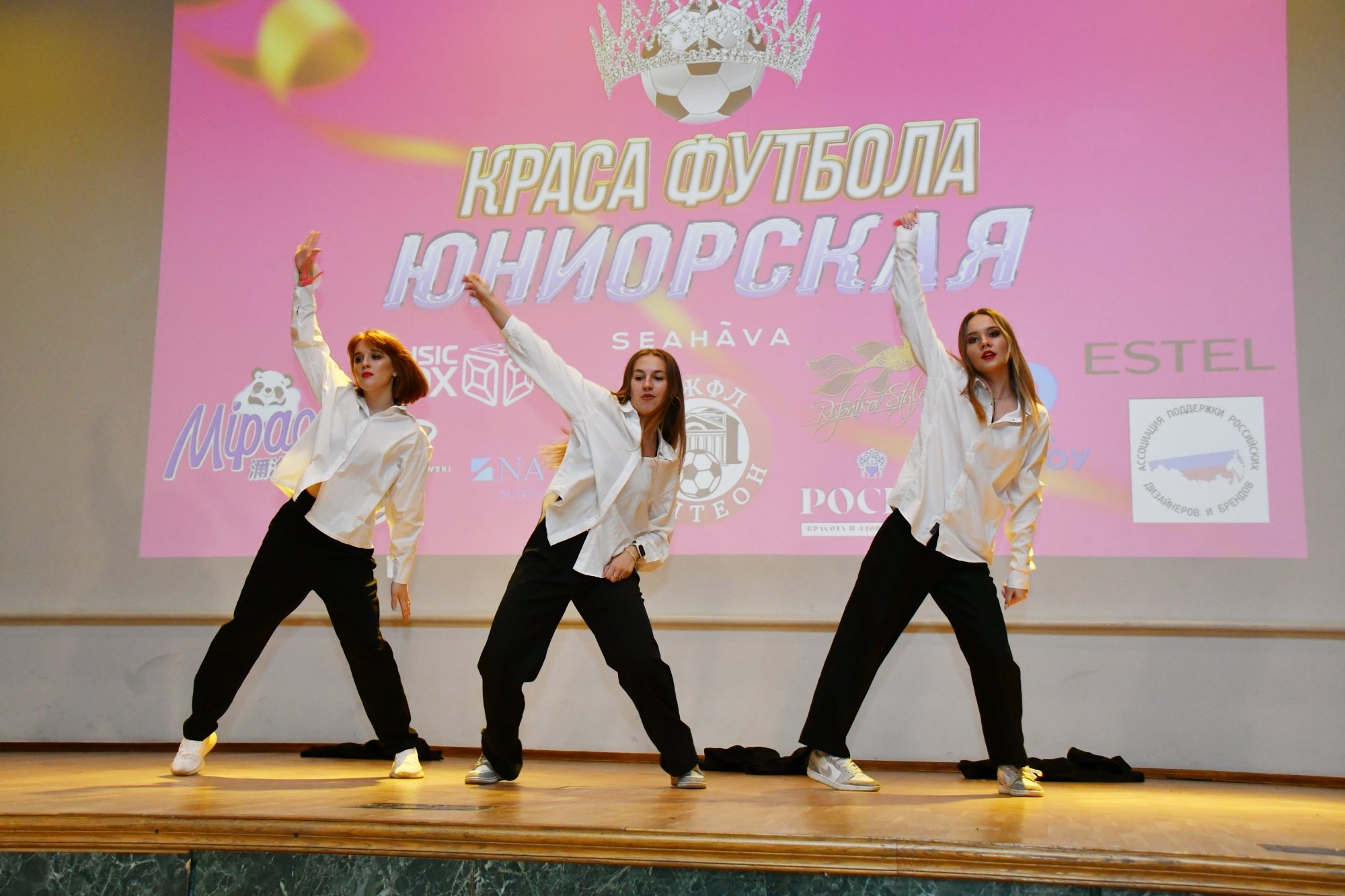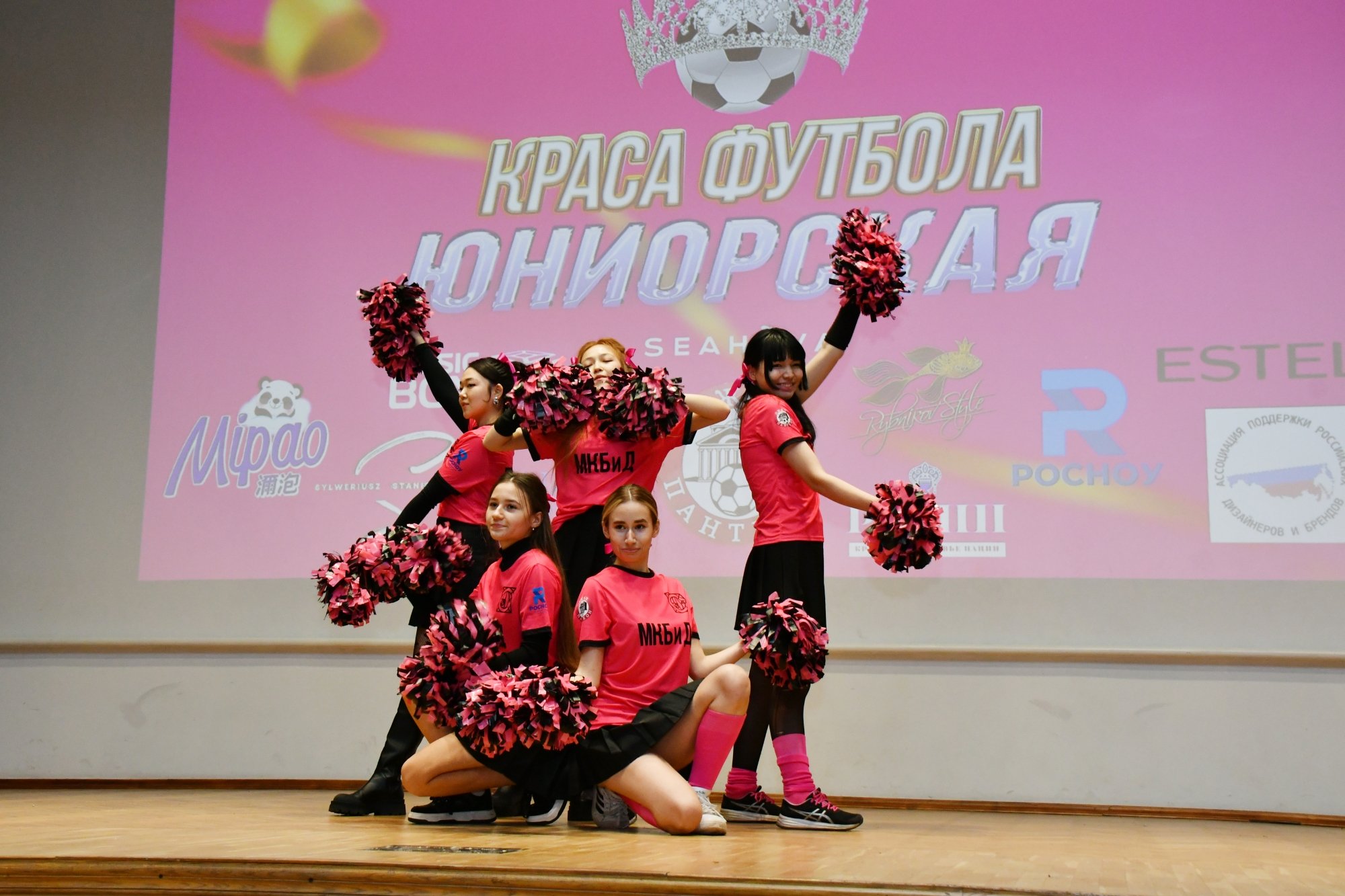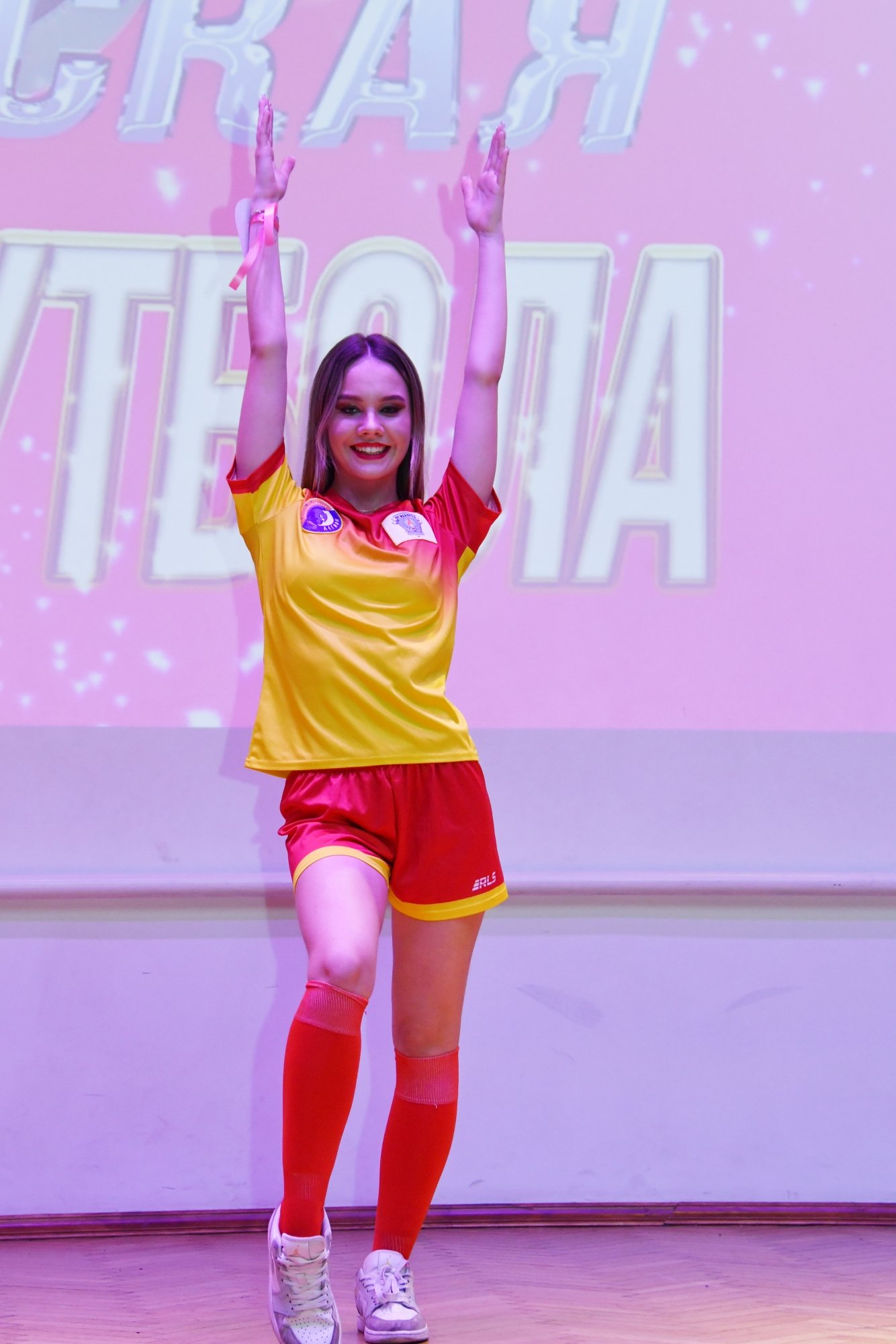 Участницы «Юниорской красы футбола» показали визитку-дефиле в дизайнерских платьях, танец-флешмоб в спортивной форме и вышли на сцену в вечерних платьях под песню Ивана Рыбникова «Мадонна Рафаэля». В четвертой номинации, «Минута славы», студентки представили творческие номера.
