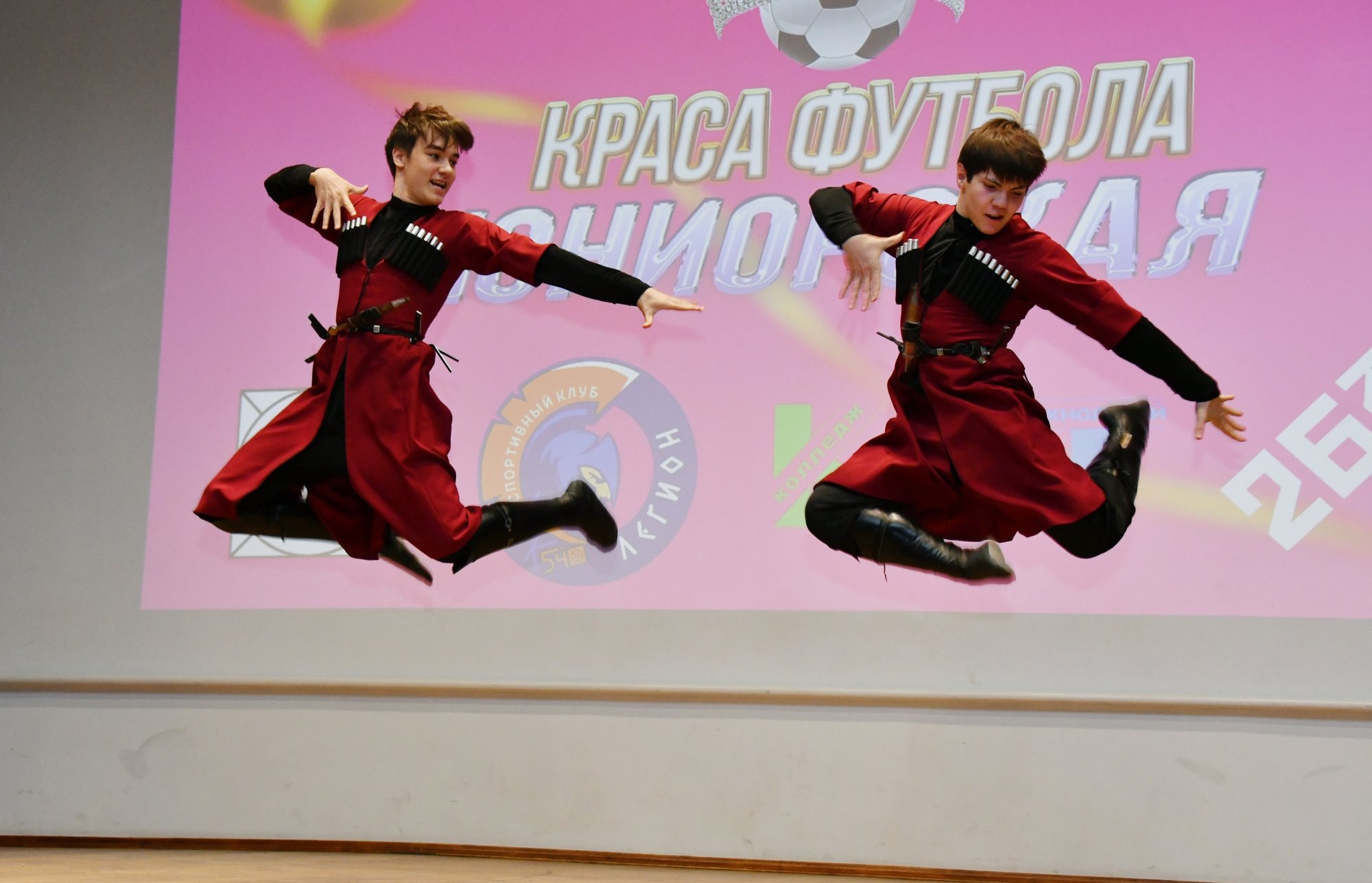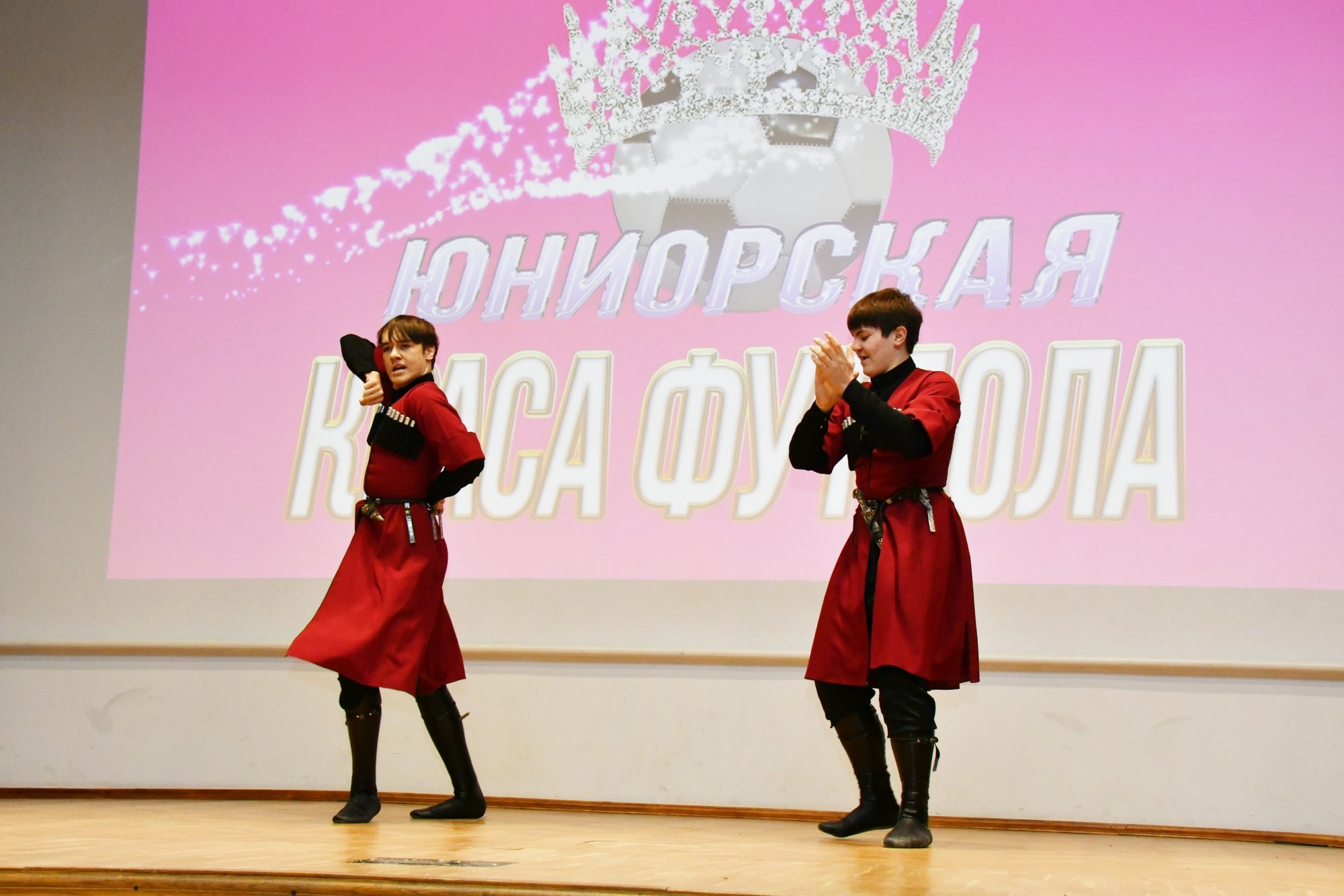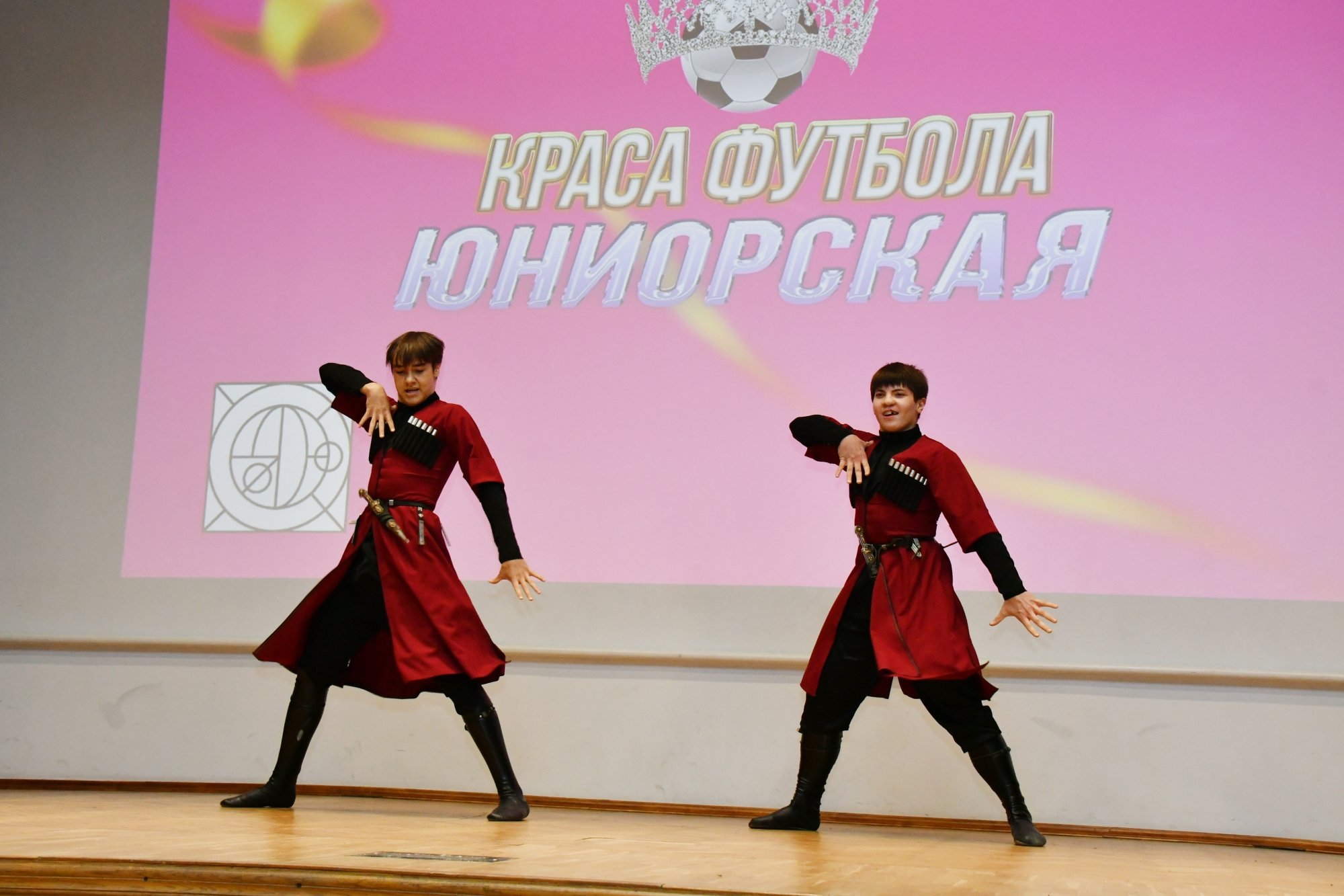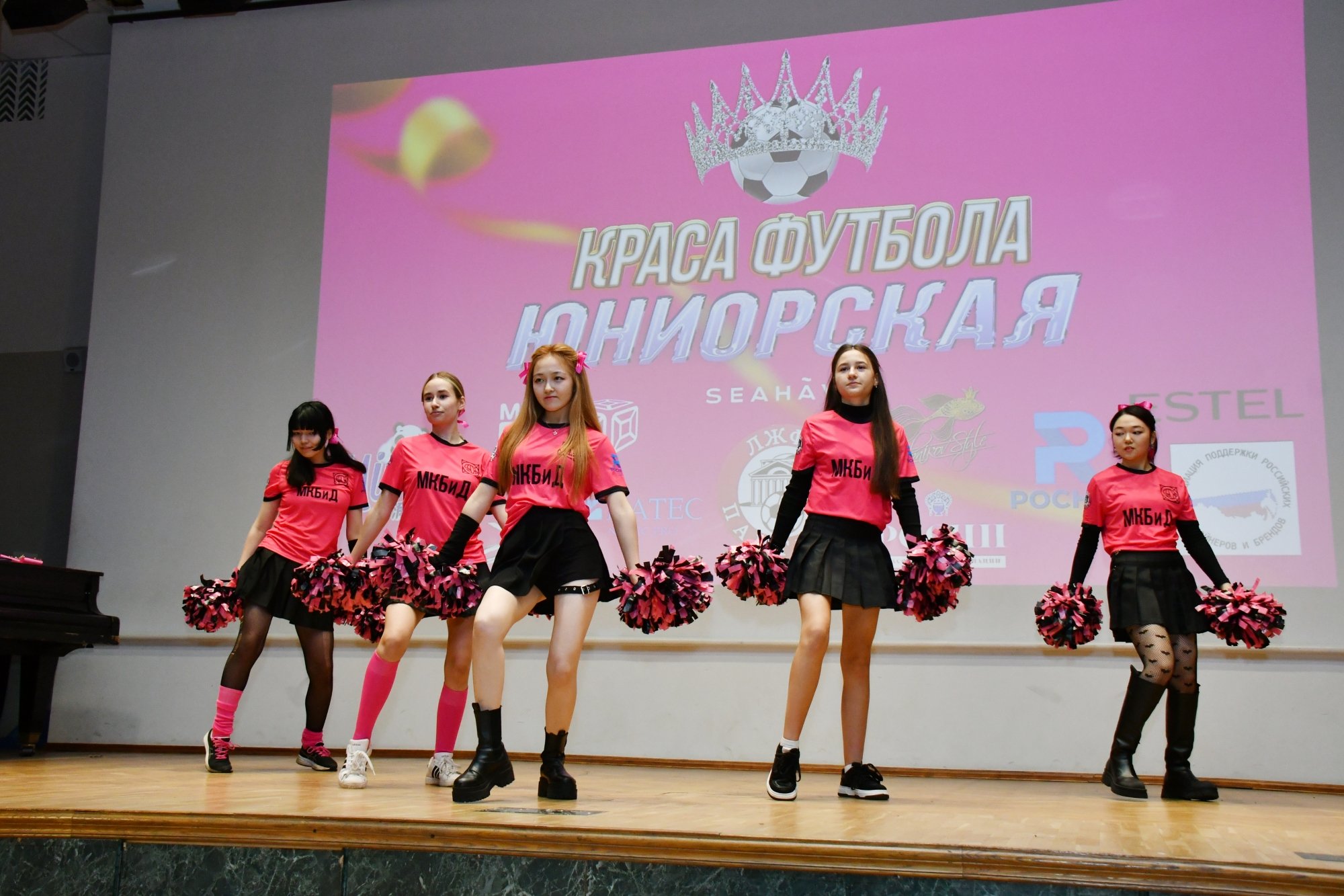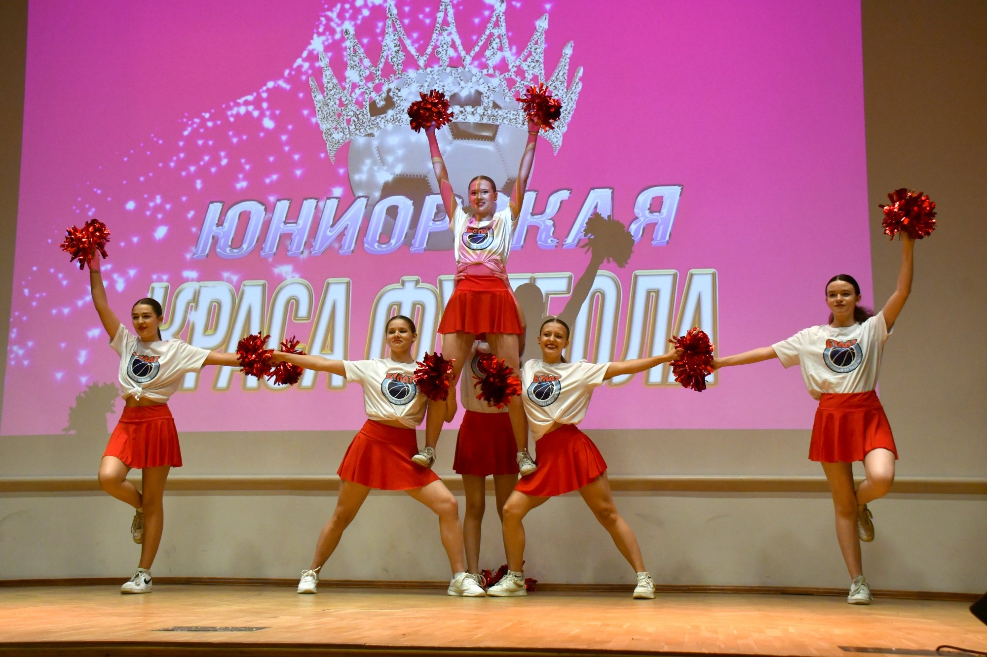 Участницы «Юниорской красы футбола» показали визитку-дефиле в дизайнерских платьях, танец-флешмоб в спортивной форме и вышли на сцену в вечерних платьях под песню Ивана Рыбникова «Мадонна Рафаэля». В четвертой номинации, «Минута славы», студентки представили творческие номера.