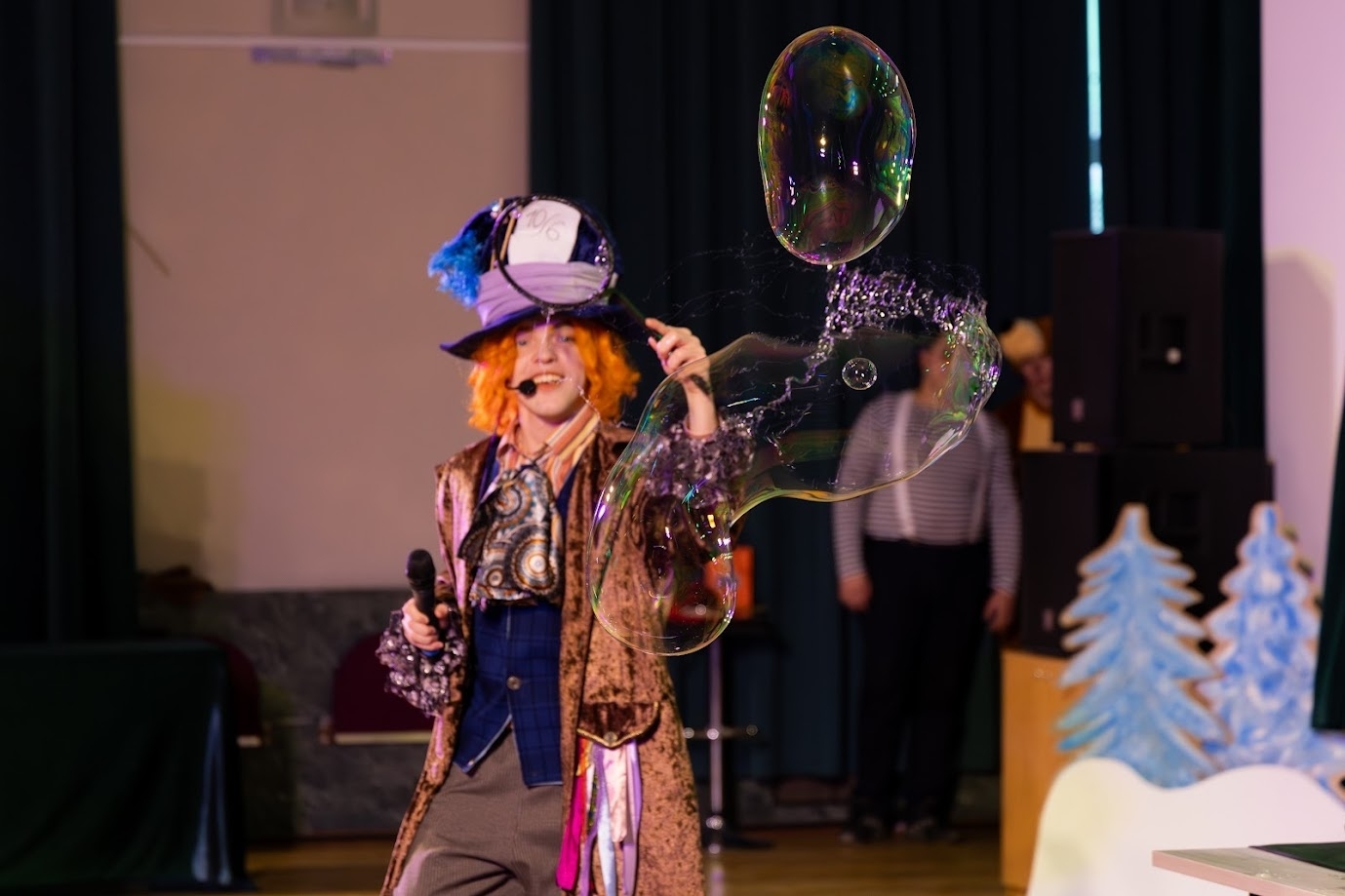 В представлении также приняли участие приглашенные актеры — Ростислав Абдулсатдаров в роли Безумного шляпника с шоу-программой «Мыльные пузыри» и Ефим Крылов в роли фокусника зазеркалья с программой «Волшебные фокусы».