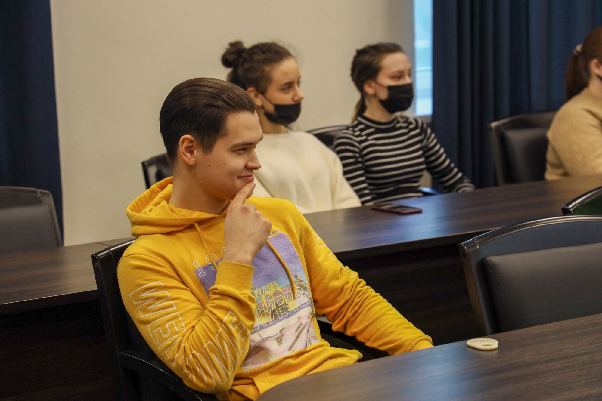 Наш университет представляли руководитель департамента по делам молодёжи РосНОУ Н. В. Буторова, председатель студенческого совета Никита Селезнёв; во встрече приняли участие около 20 членов студенческого актива.