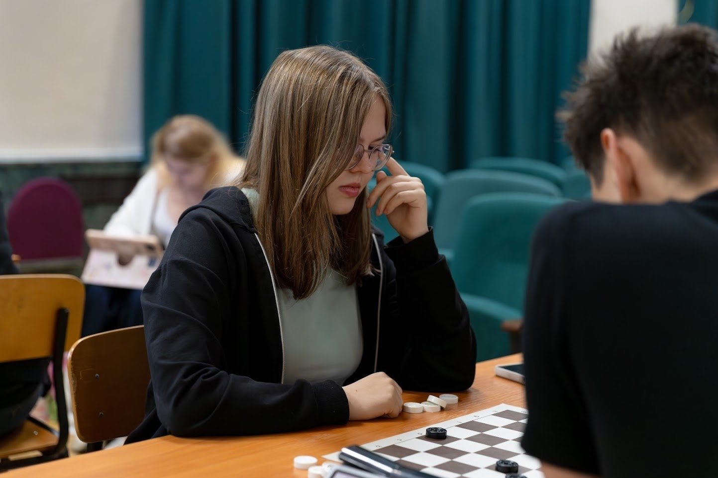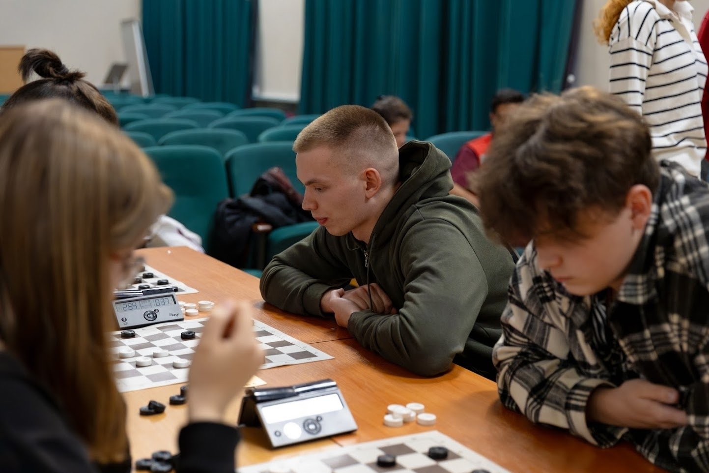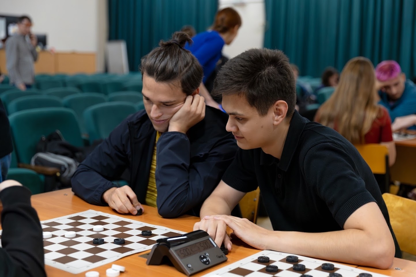 Жеребьевка отыгрывается по швейцарской системе, которая хороша тем, что сводит между собой игроков примерно одинакового уровня. В первом туре, разумеется, жеребьевка случайна, но, чем ближе к концу игры, тем точнее идет сведение между собой соперников с одинаковым количеством очков и близкими коэффициентами. В одном зале собрались ребята с высокими титулами, например, Иван Илясов — чемпион мира в своей возрастной категории, призёры и победители первенств Москвы, а также любители, для которых шашки — просто хобби.