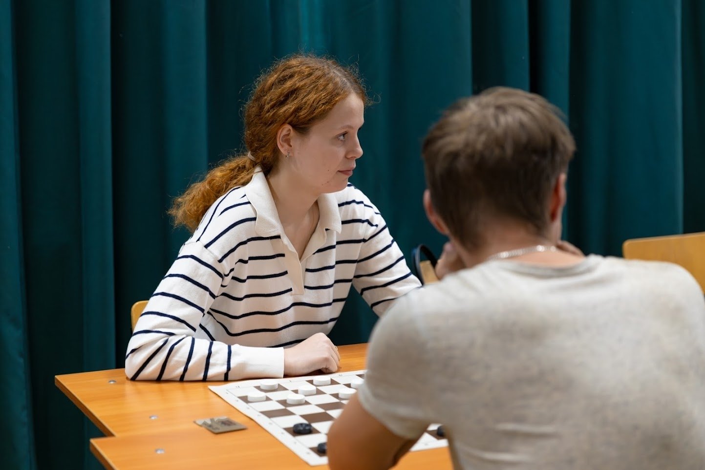 Играть с профессионалами зачастую легче, чем с любителями. На профессиональном уровне используются стандартные позиции, к которым все привыкли, 12 на 12 без каких-то дополнительных ходов. Профессионалы их уже все выучили, и обычно получается ничья. Очень тяжело выигрывать! На турнире в РосНОУ, благодаря большому количеству игроков-любителей, играем начальную расстановку, которая на профессиональном уровне не применяется уже лет 40. В такой ситуации чуть сложнее побеждать, потому что соперники должны ошибиться иногда слишком много раз. Если в противниках сильный мастер, бывает тяжело, конечно, но мне, к счастью, посчастливилось выиграть!