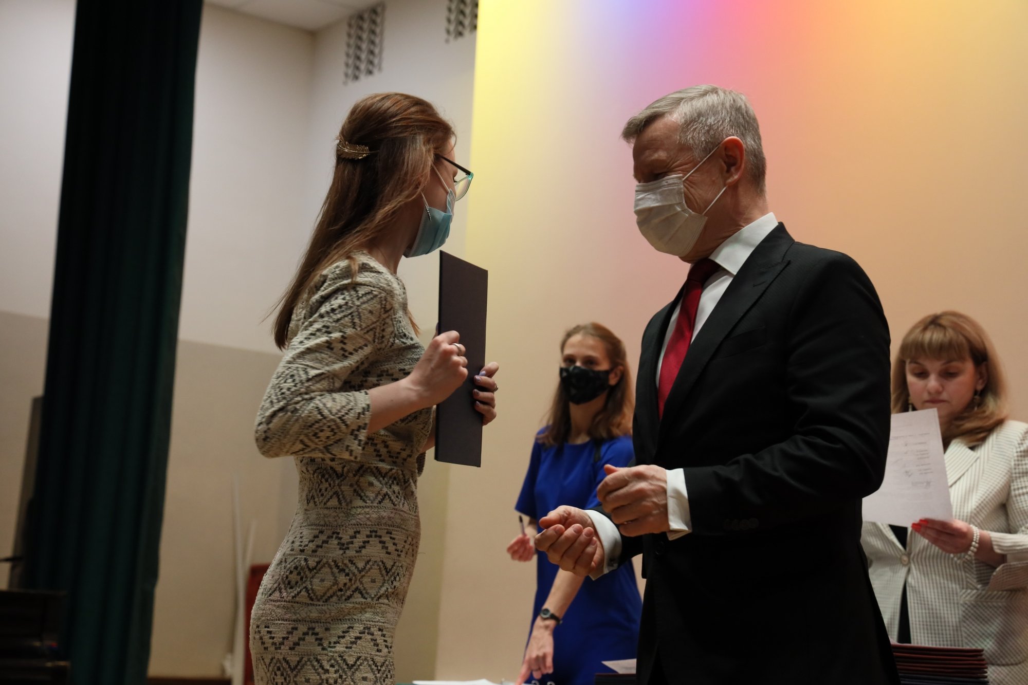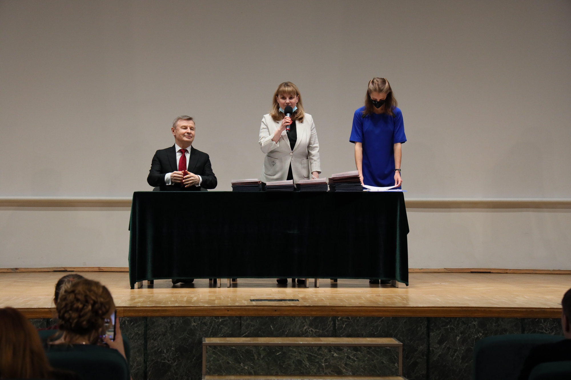 Свои напутственные слова выразили заведующие кафедрами: кандидат психологических наук, доцент Эльвира Валерьевна Лихачева (кафедра общей психологии и психологии труда), кандидат педагогических наук, доцент Татьяна Альбертовна Головятенко (кафедра педагогического образования), кандидат педагогических наук, доцент Оксана Викторовна Дорошенко (кафедра специального дефектологического образования), обозначившие важность миссии полученных выпускниками профессий и пригласившие их продолжить обучение на второй ступени высшего образования – в магистратуре.