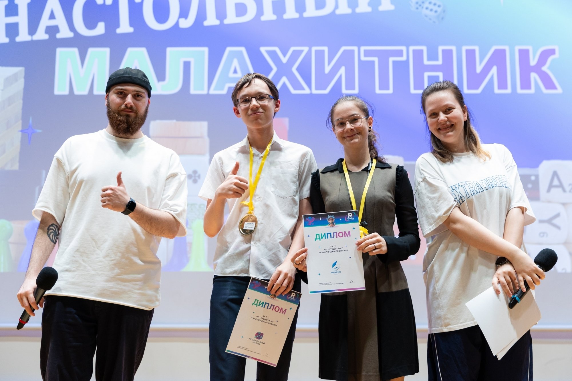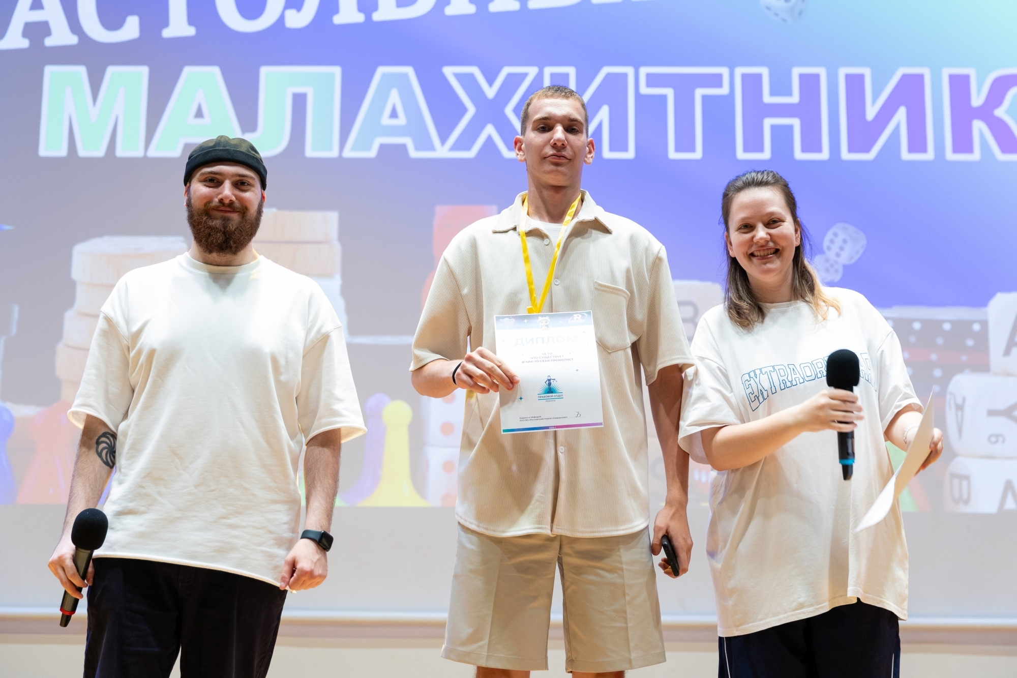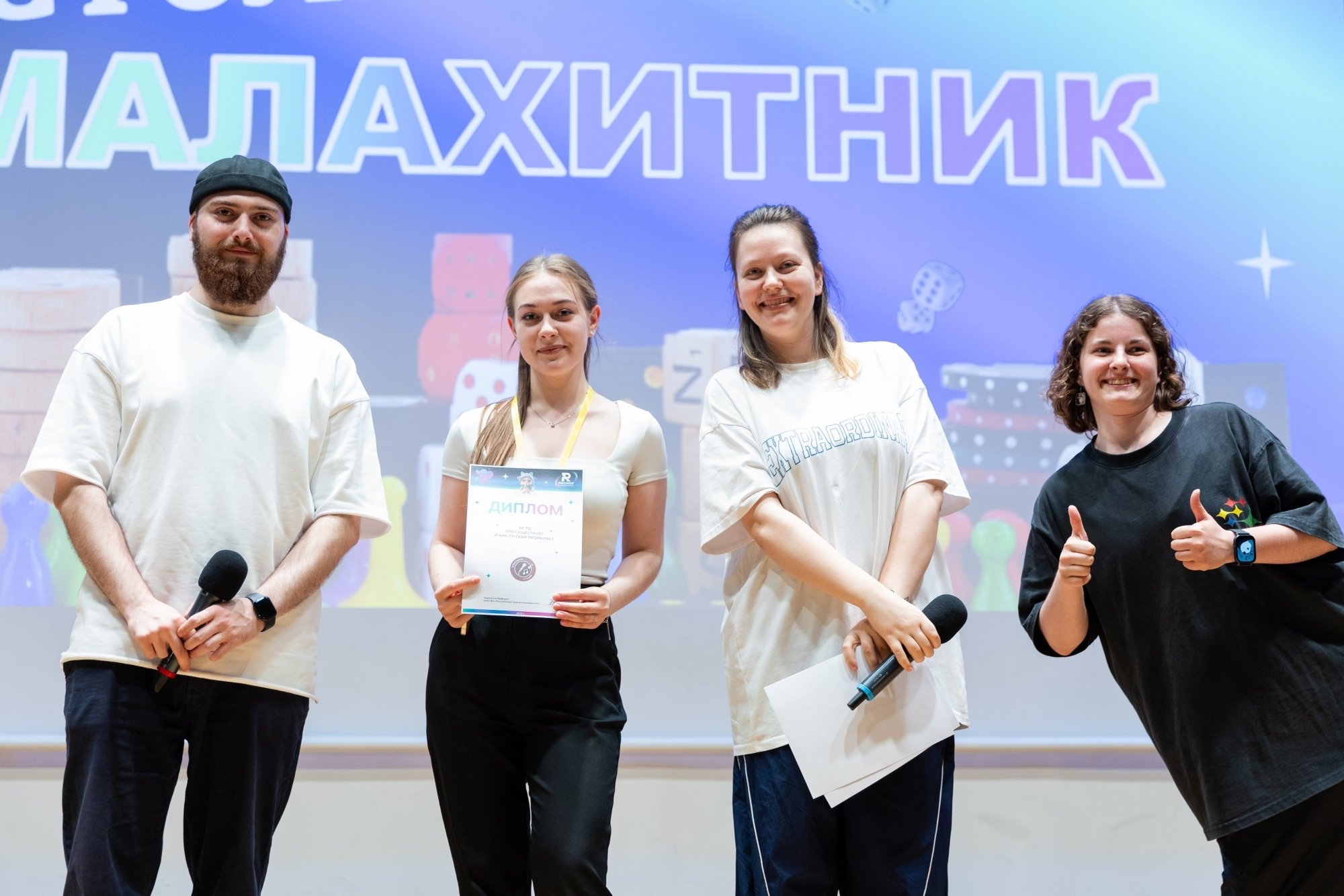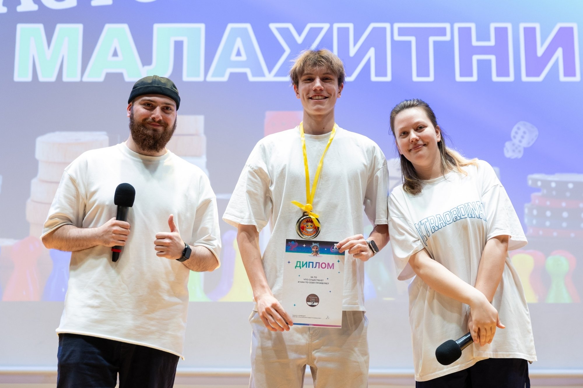 Я часто провожу «Свою игру» для друзей и решил, что «Малахитник» — идеальная возможность попробовать этот формат в вузе. Вопросы были разные: узнать человека только по его глазам, назвать всех персонажей мультика, изображённых на кадре, вспомнить название картины… Даже был раунд про звёзд в РосНОУ — нужно было по фото, на которых скрыты лица, понять, что за известная личность приезжала в университет. А ещё был раунд — проверка знаний о РосНОУ. Ожидания игра оправдала: были крики, азарт и веселье. Мне всё понравилось, и игрокам тоже.