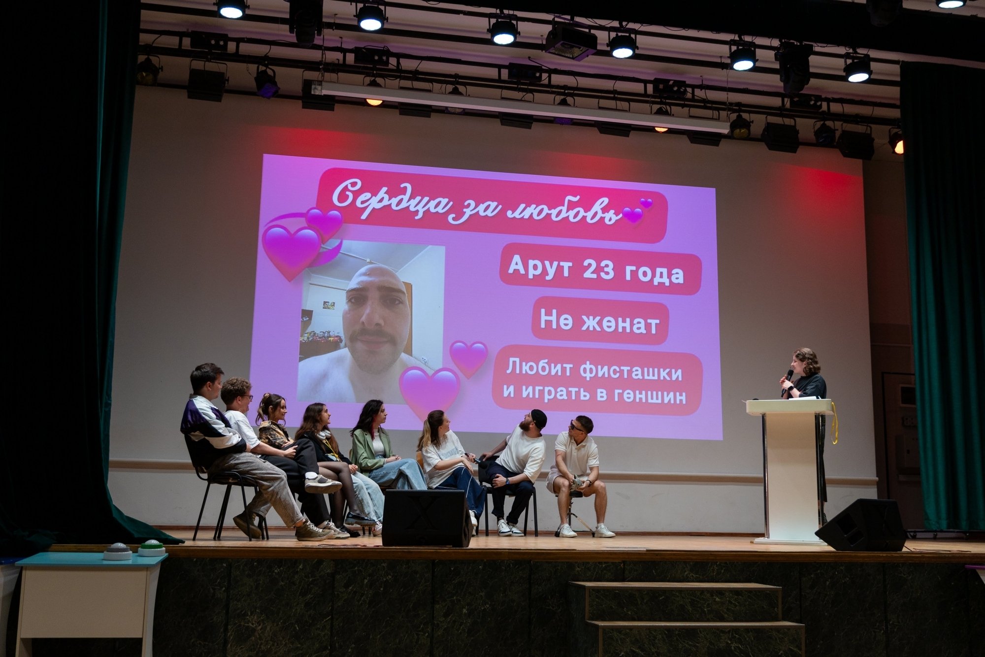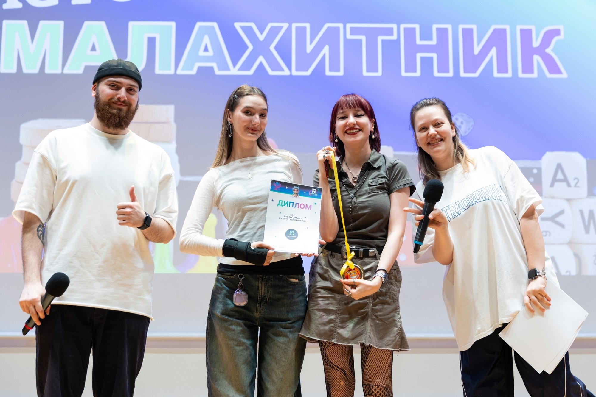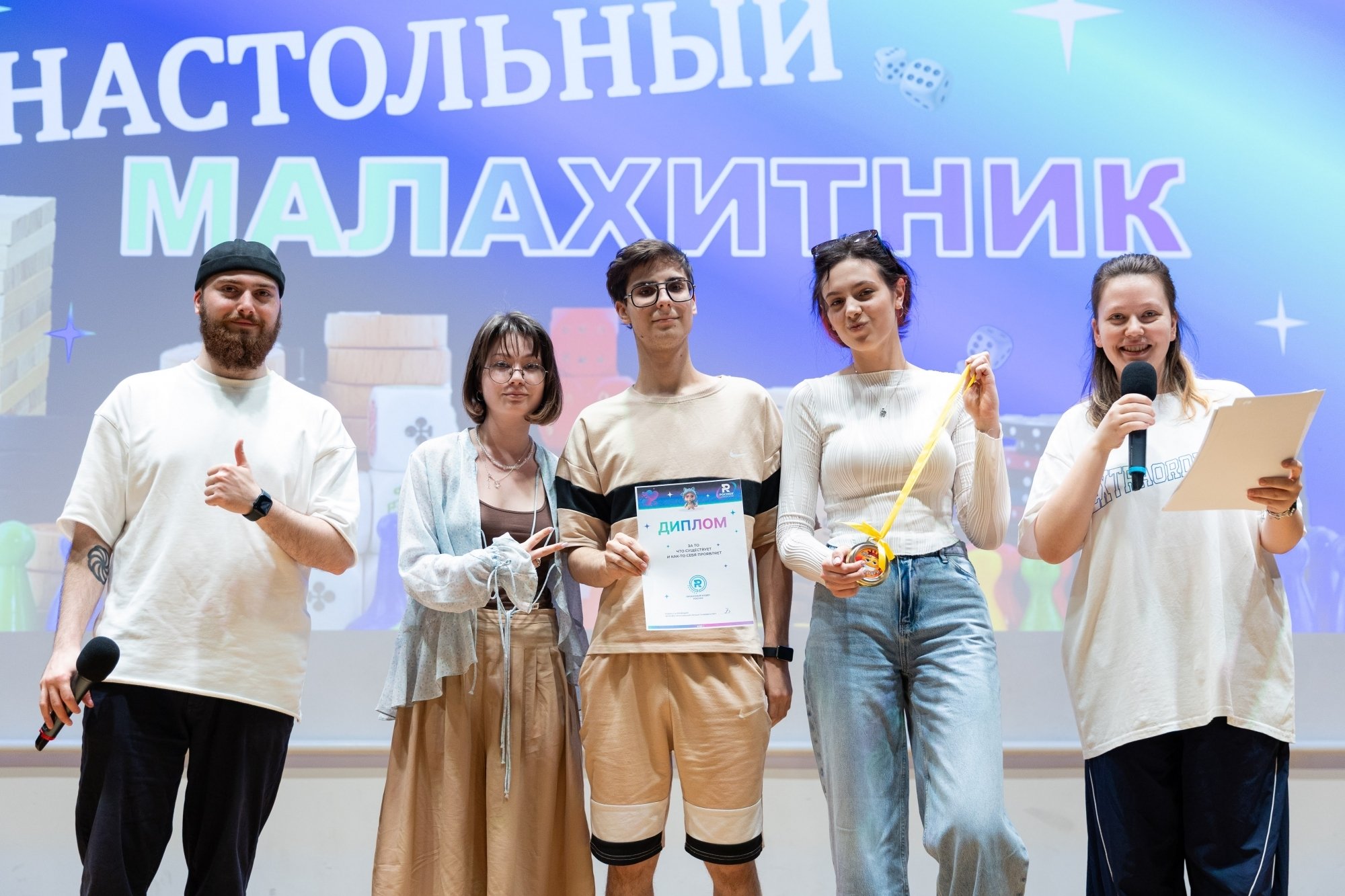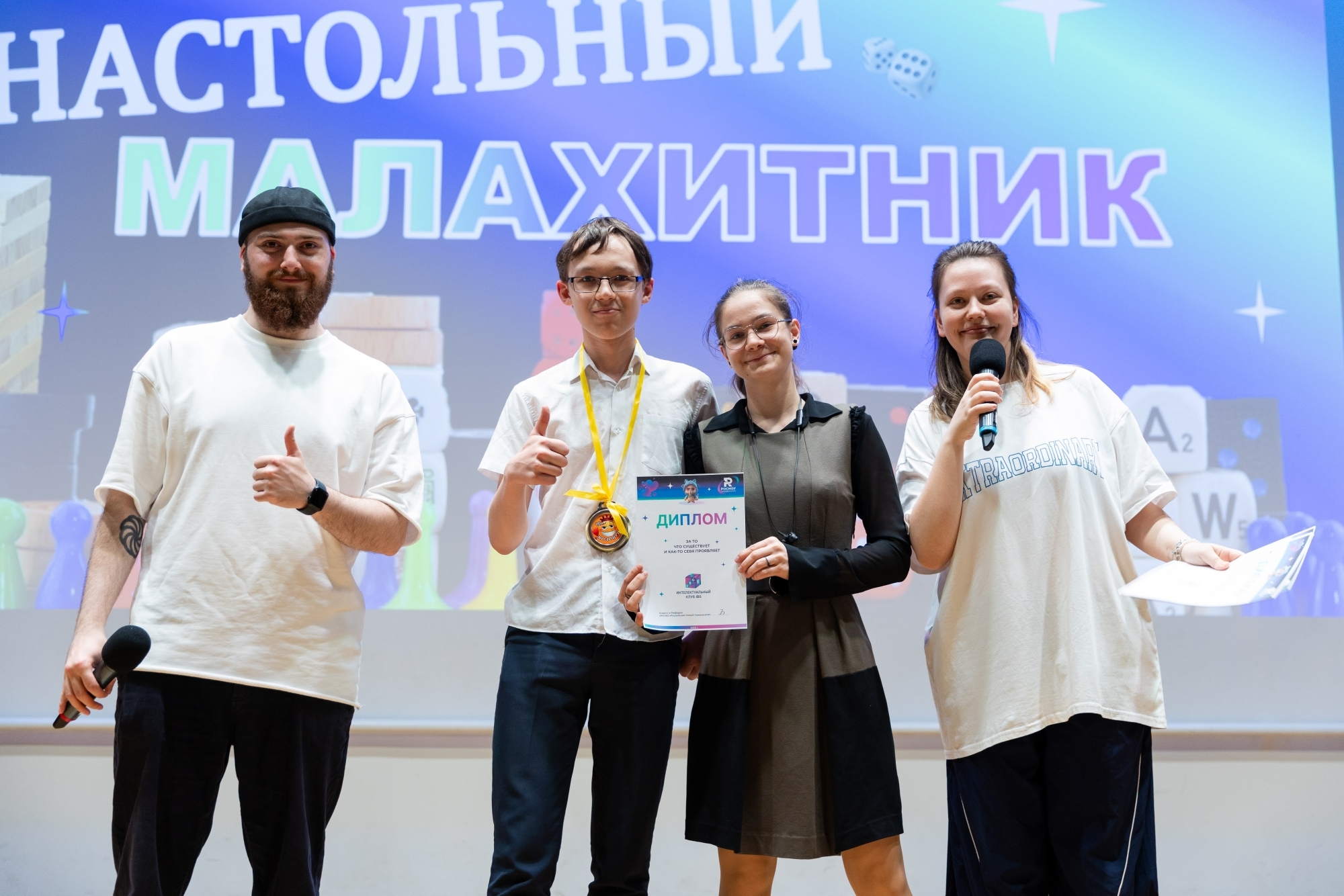 Я часто провожу «Свою игру» для друзей и решил, что «Малахитник» — идеальная возможность попробовать этот формат в вузе. Вопросы были разные: узнать человека только по его глазам, назвать всех персонажей мультика, изображённых на кадре, вспомнить название картины… Даже был раунд про звёзд в РосНОУ — нужно было по фото, на которых скрыты лица, понять, что за известная личность приезжала в университет. А ещё был раунд — проверка знаний о РосНОУ. Ожидания игра оправдала: были крики, азарт и веселье. Мне всё понравилось, и игрокам тоже.