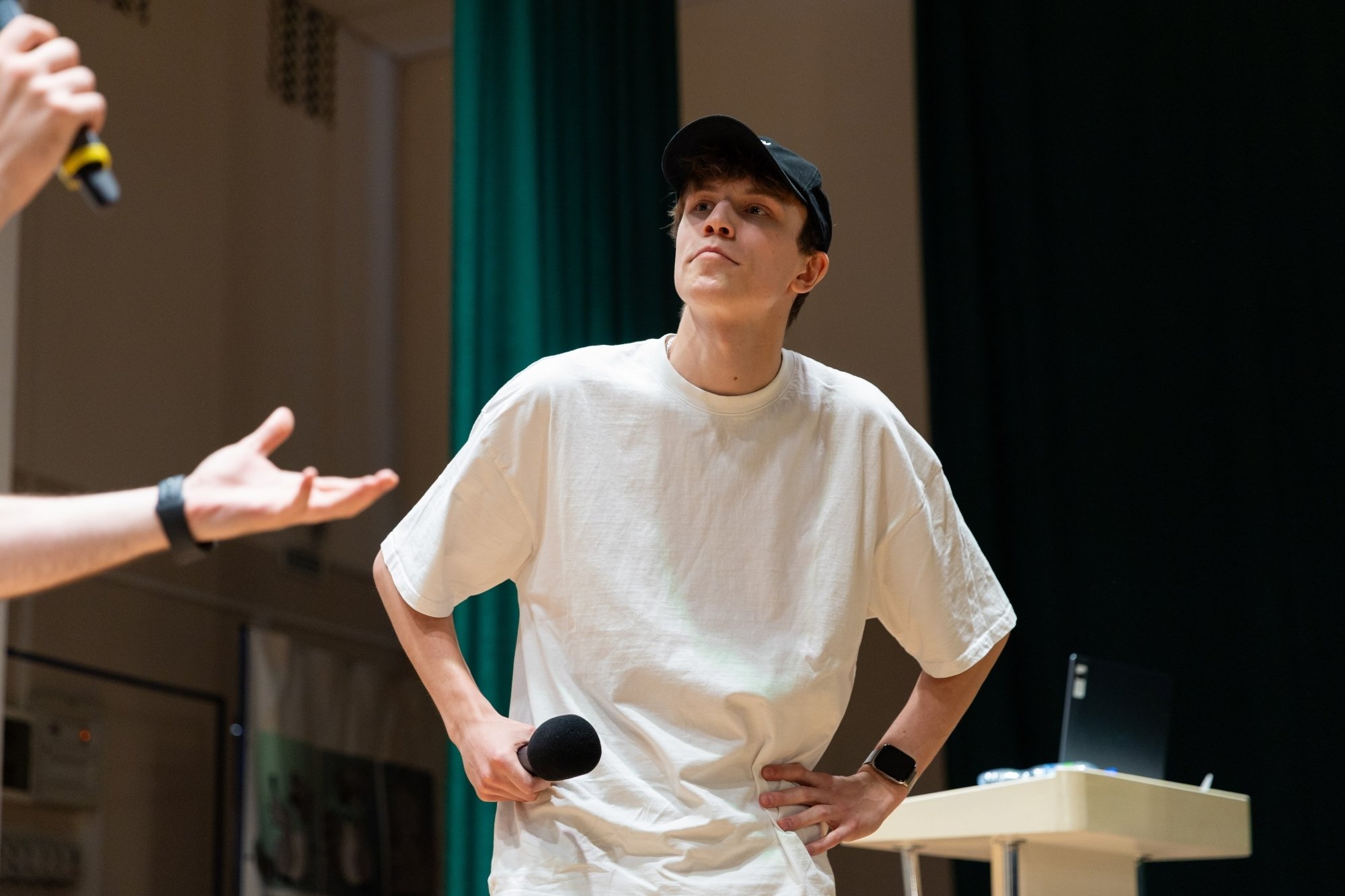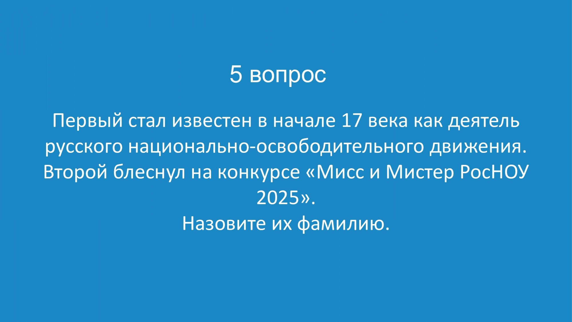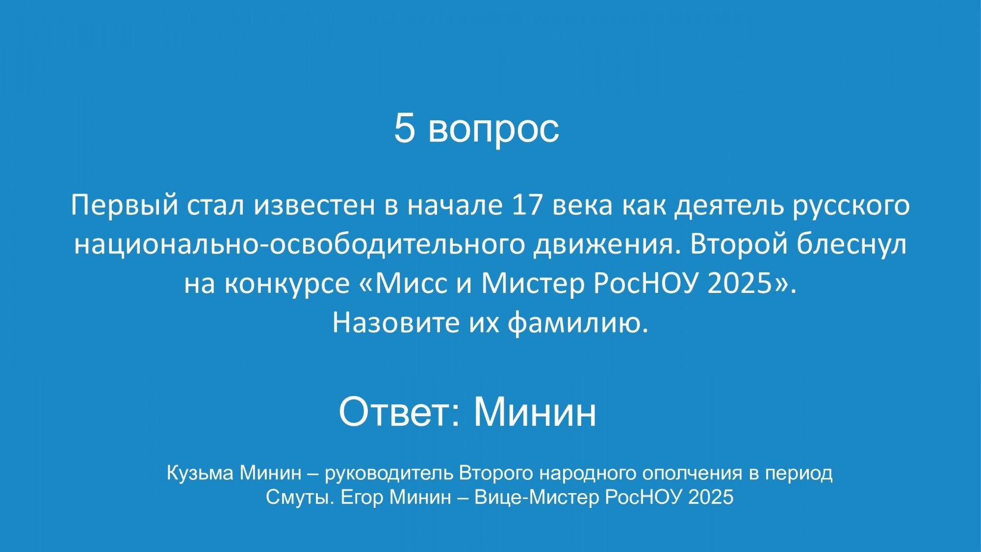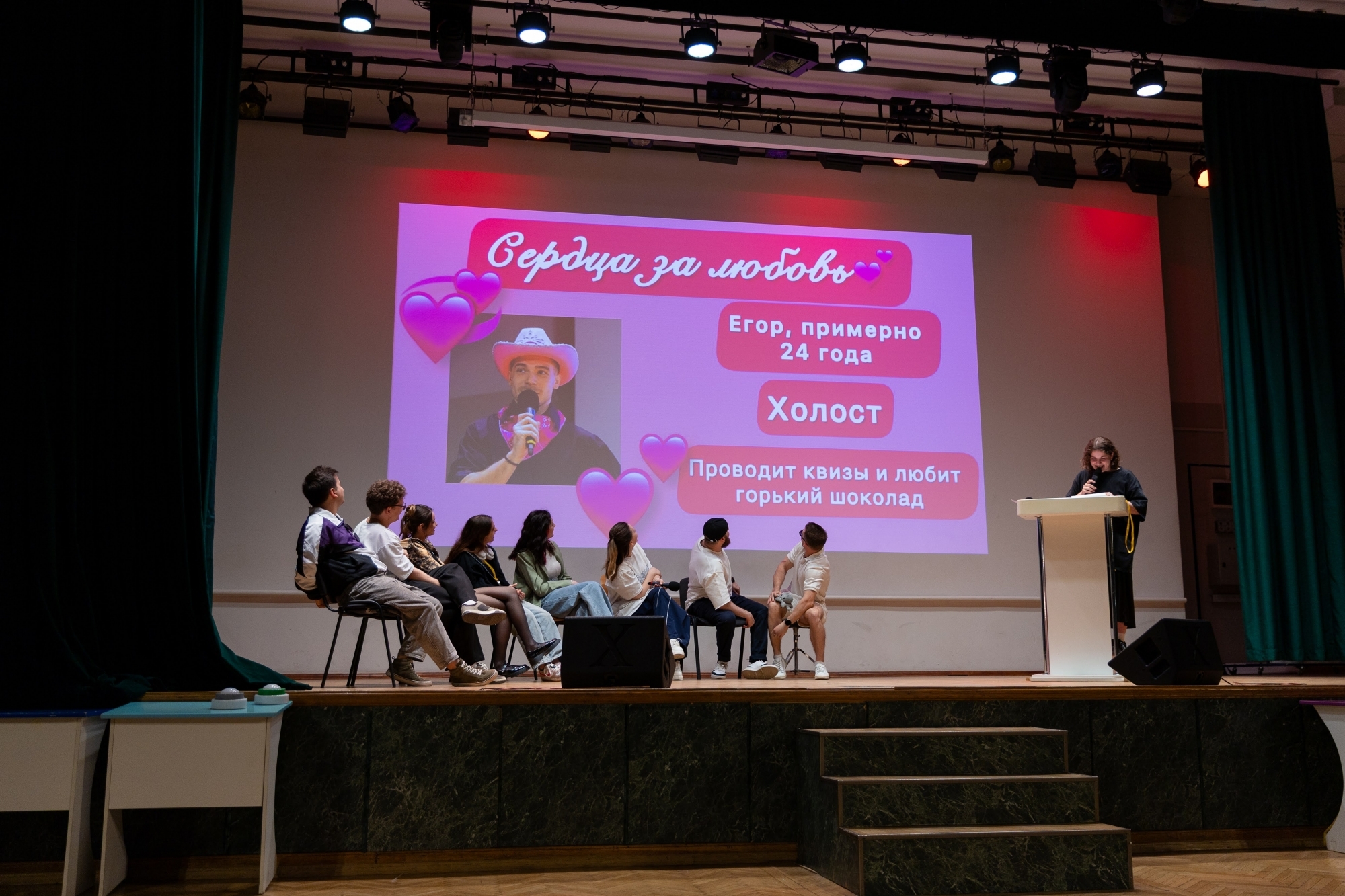 Я часто провожу «Свою игру» для друзей и решил, что «Малахитник» — идеальная возможность попробовать этот формат в вузе. Вопросы были разные: узнать человека только по его глазам, назвать всех персонажей мультика, изображённых на кадре, вспомнить название картины… Даже был раунд про звёзд в РосНОУ — нужно было по фото, на которых скрыты лица, понять, что за известная личность приезжала в университет. А ещё был раунд — проверка знаний о РосНОУ. Ожидания игра оправдала: были крики, азарт и веселье. Мне всё понравилось, и игрокам тоже.