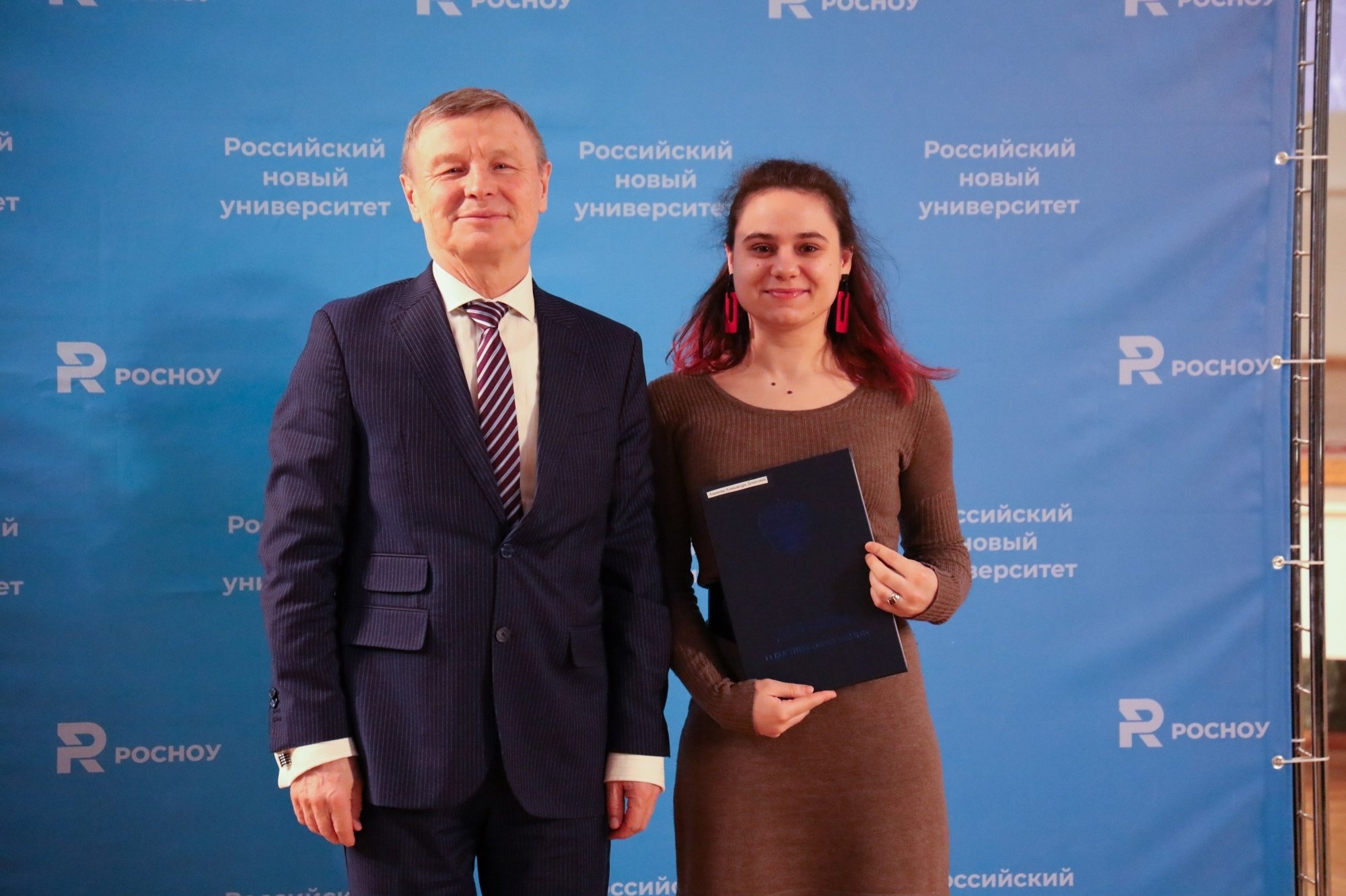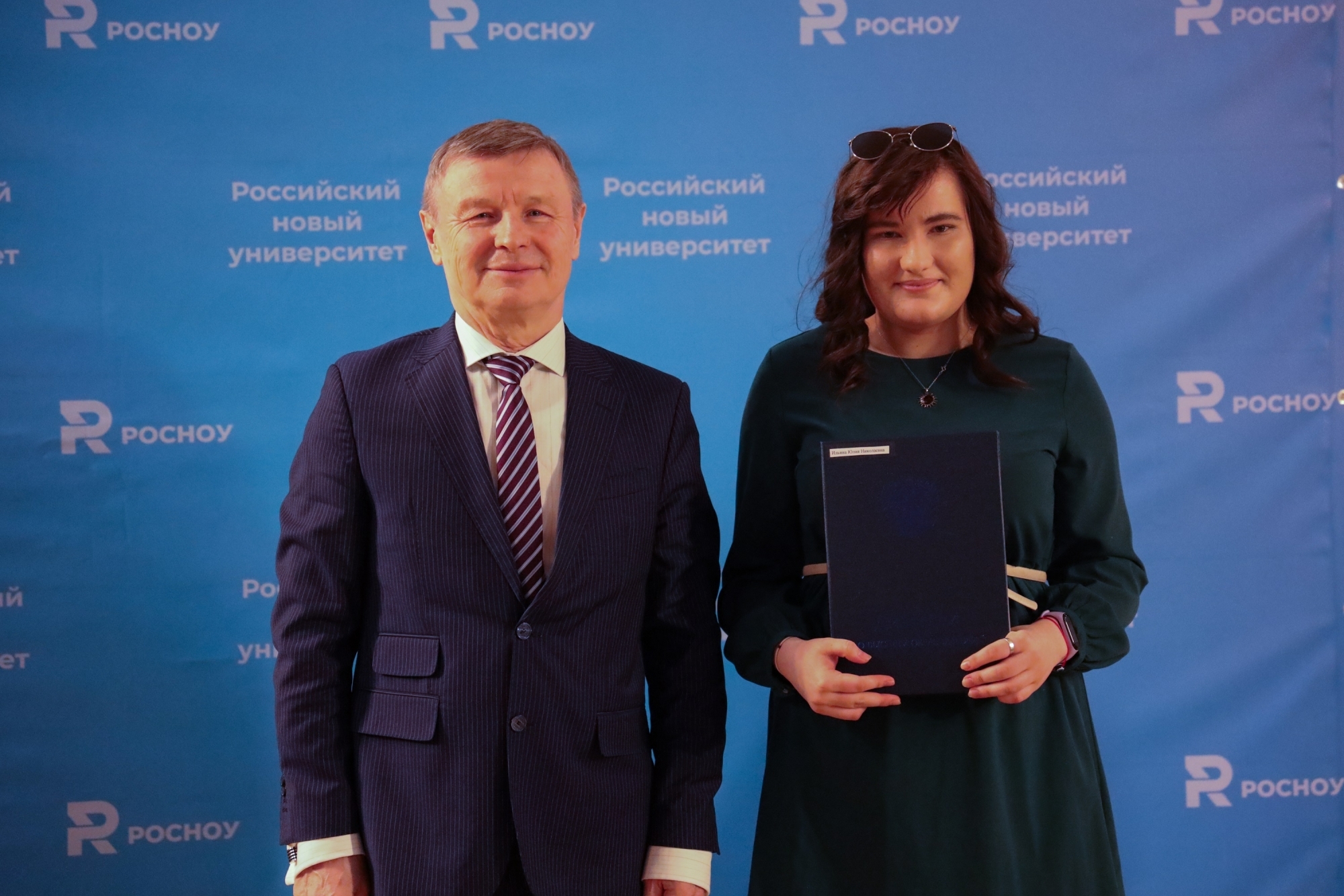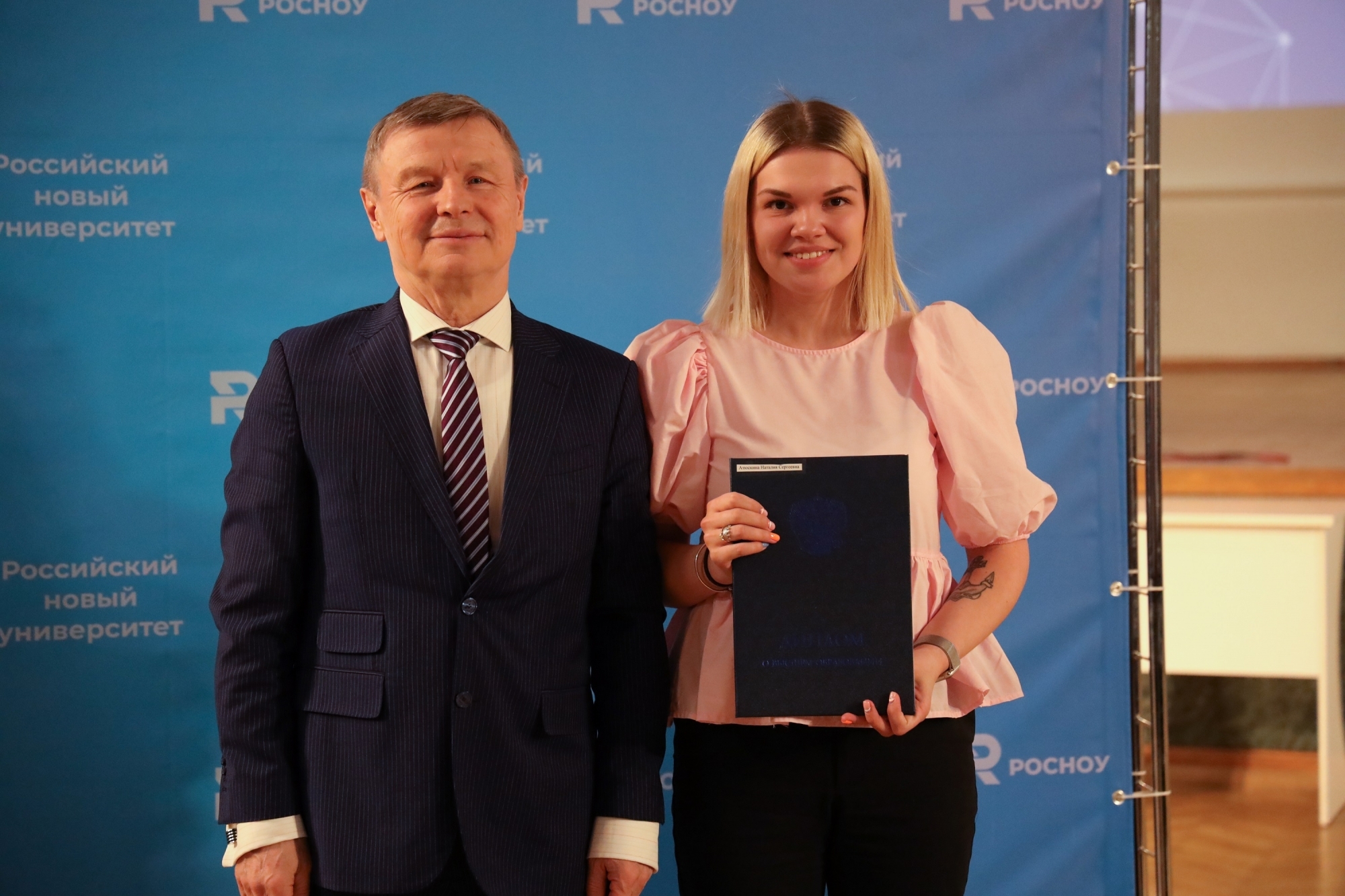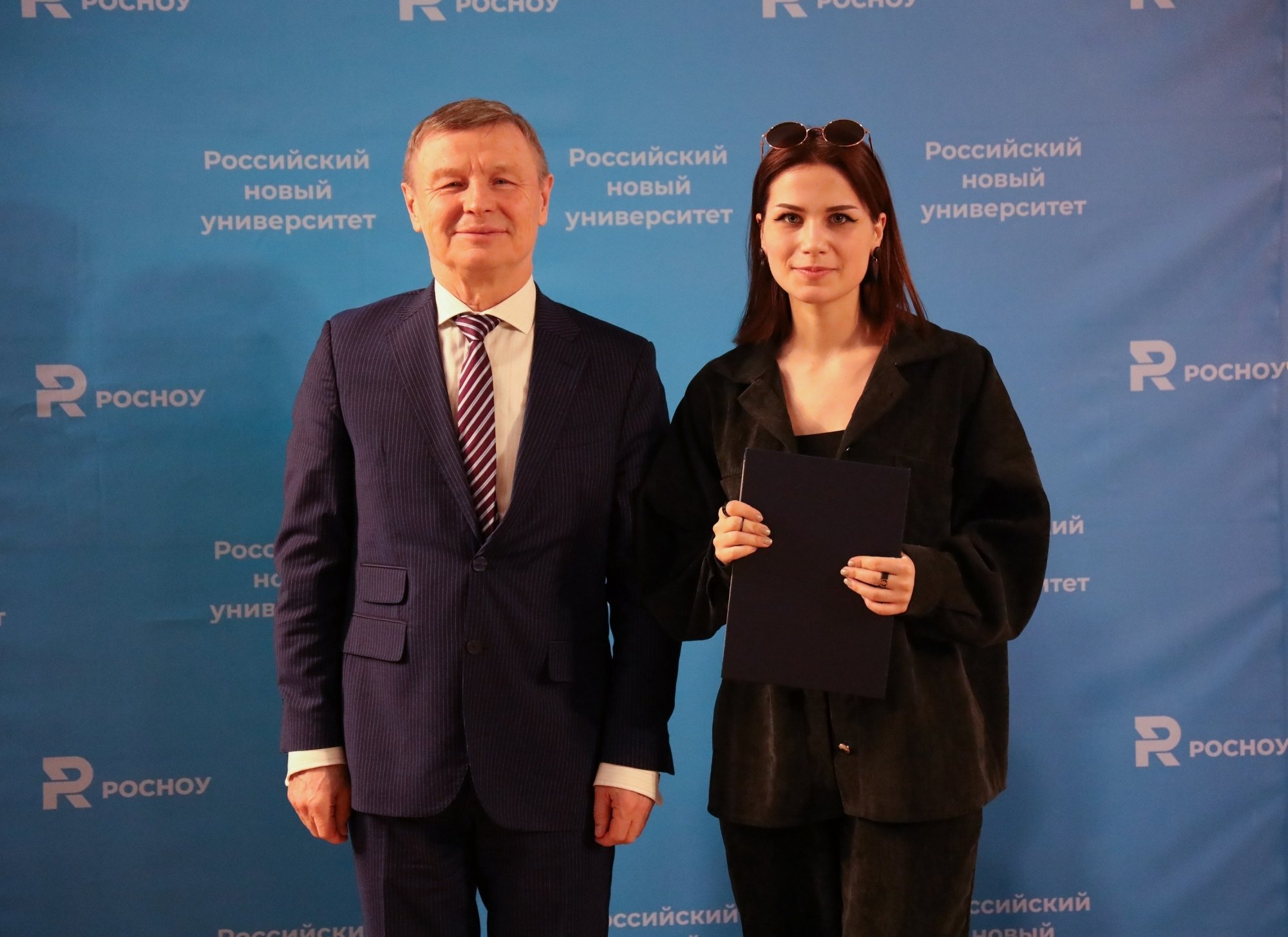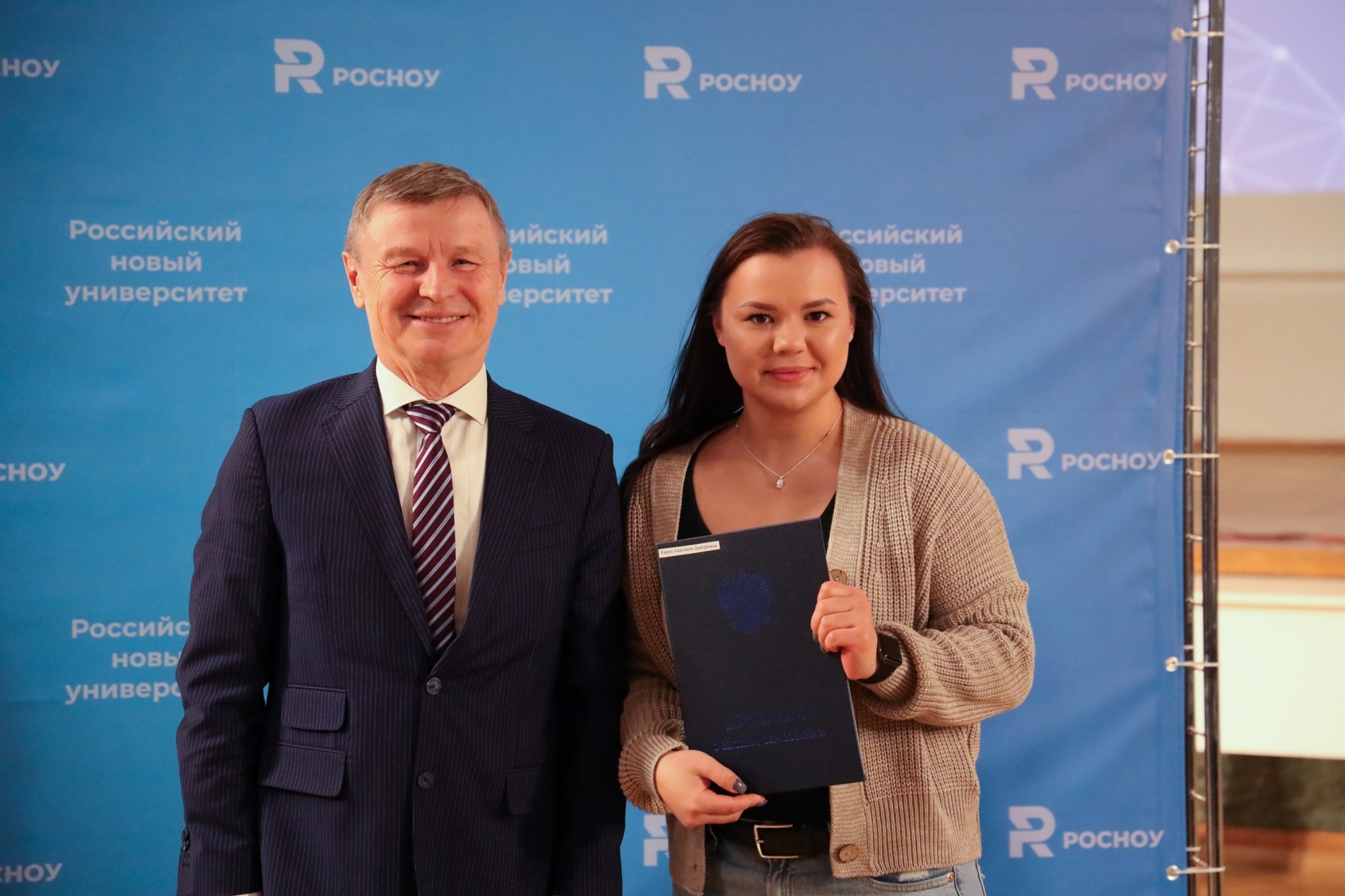 В торжественном мероприятии, которое прошло в Малахитовом зале университета, приняли участие проректор по учебной работе РосНОУ Григорий Шабанов и исполнительный директор Гуманитарного института Виктория Батколина.