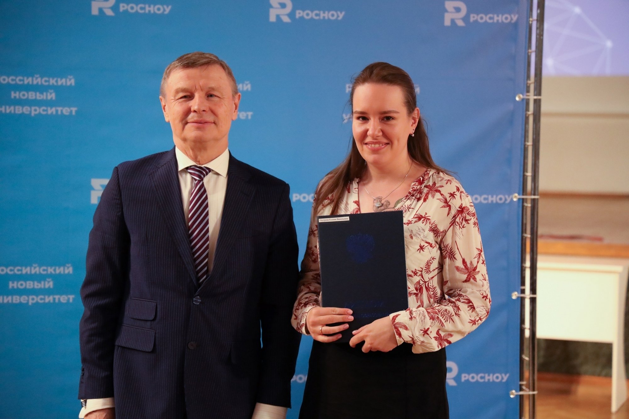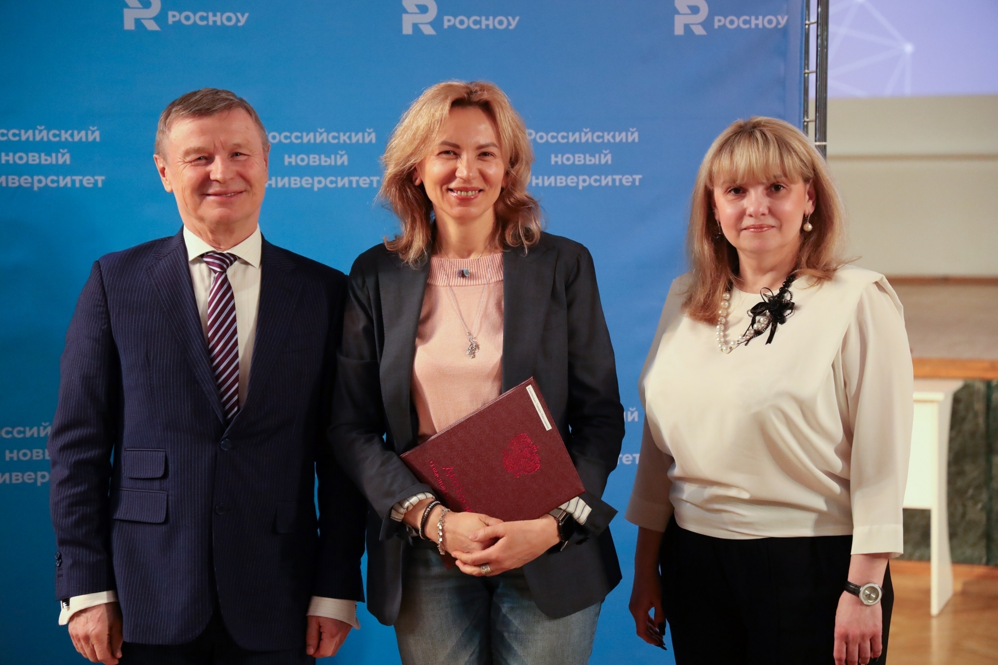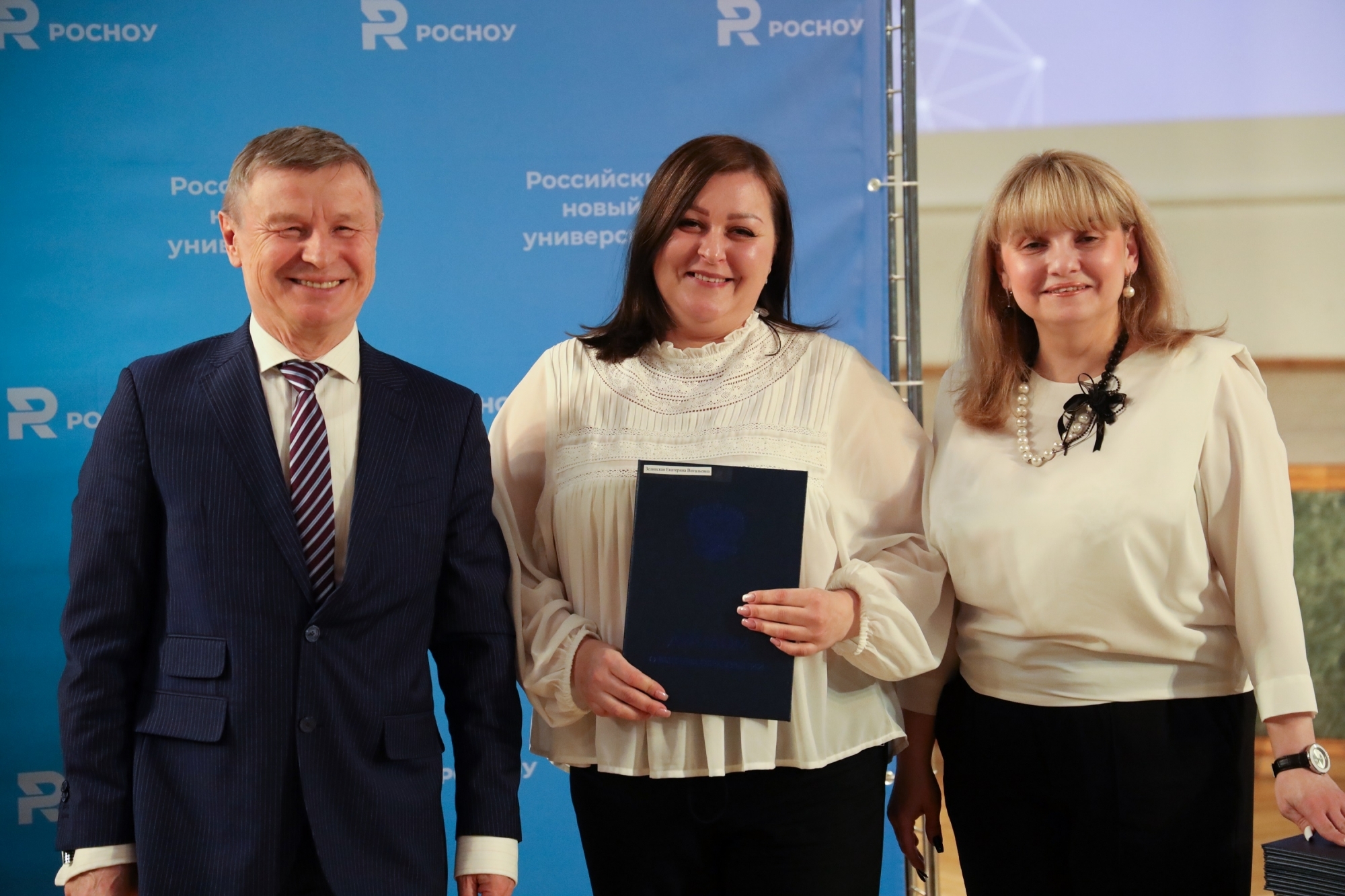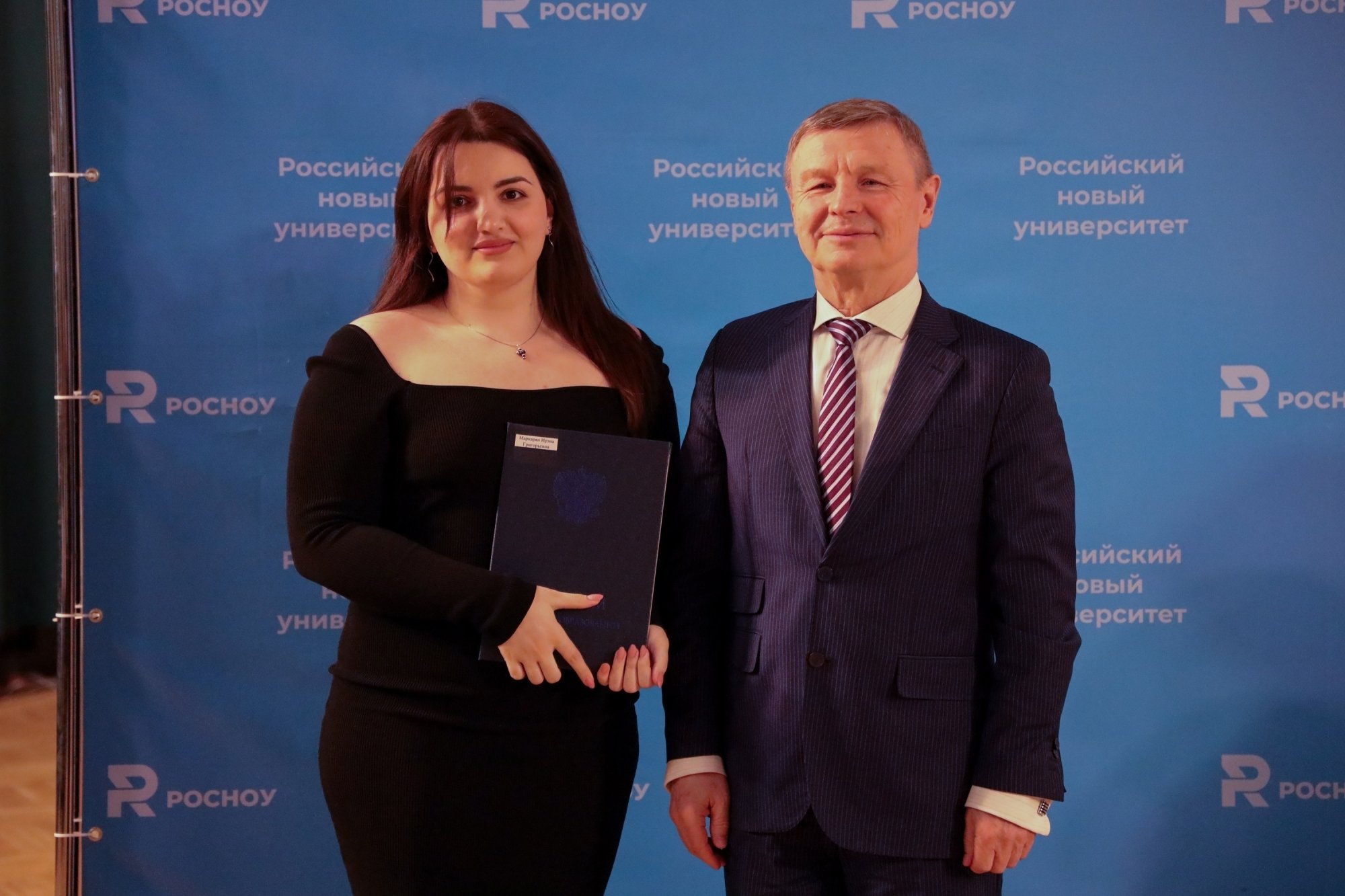 В торжественном мероприятии, которое прошло в Малахитовом зале университета, приняли участие проректор по учебной работе РосНОУ Григорий Шабанов и исполнительный директор Гуманитарного института Виктория Батколина.