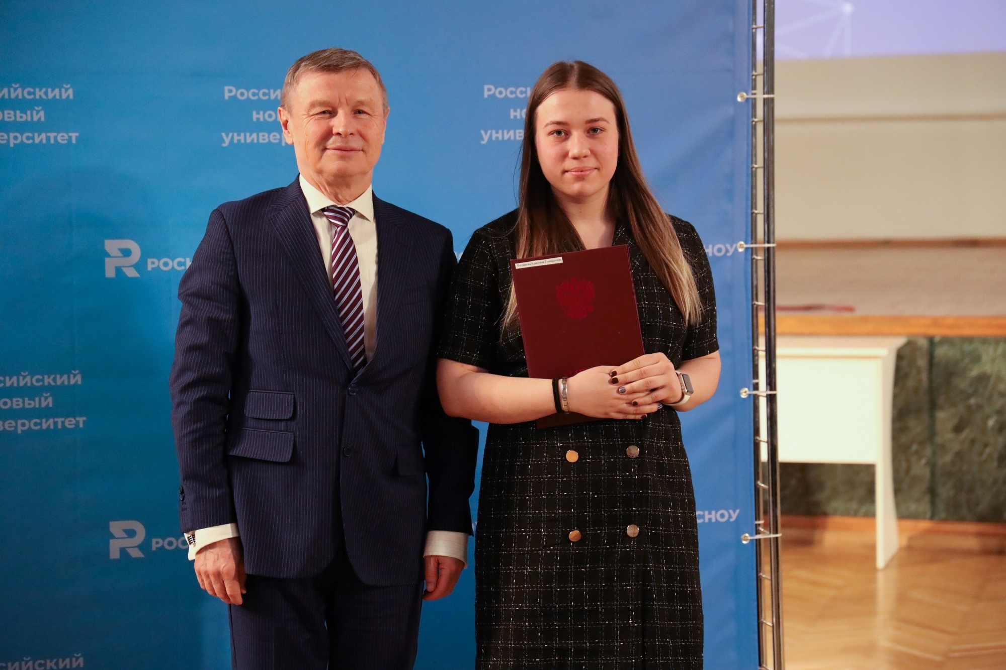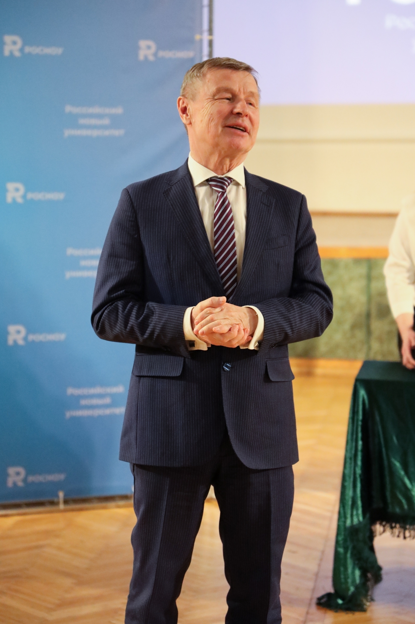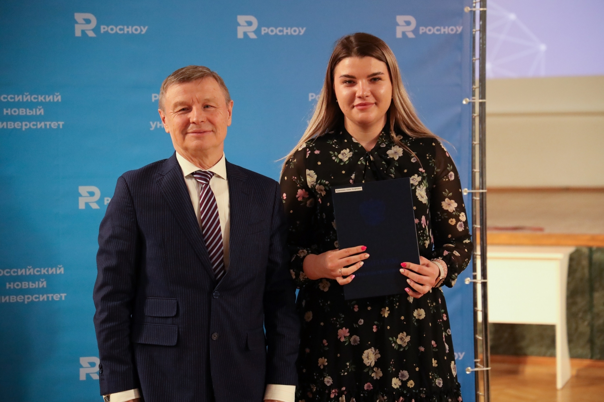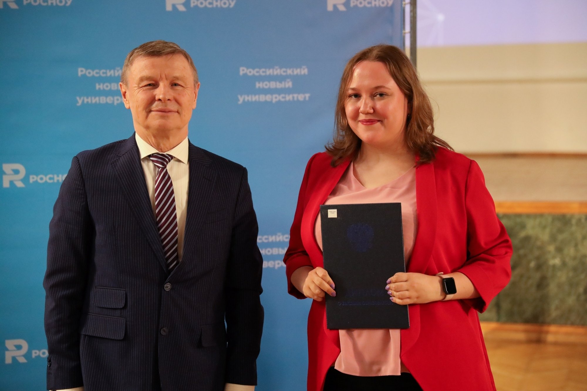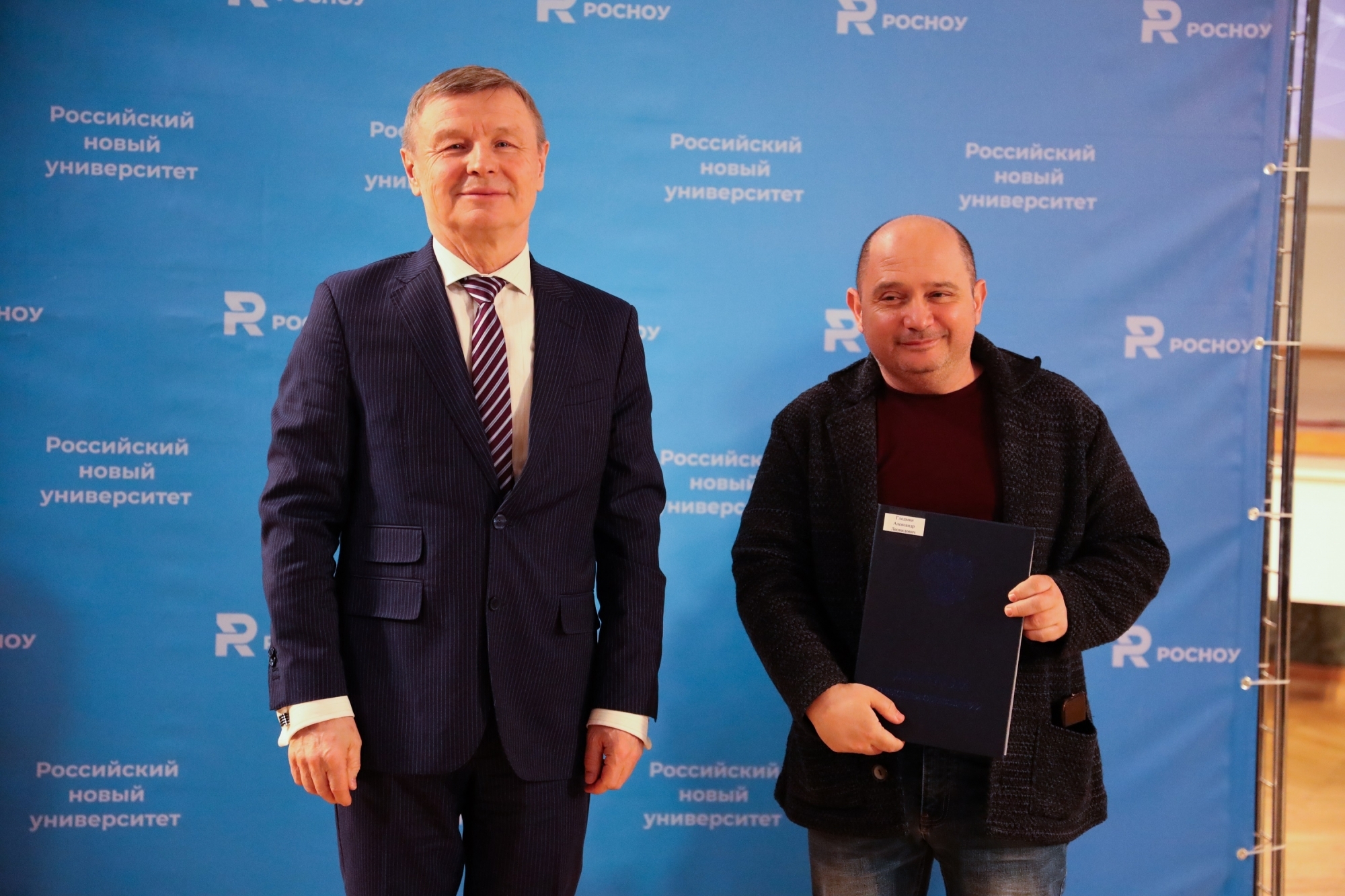 В торжественном мероприятии, которое прошло в Малахитовом зале университета, приняли участие проректор по учебной работе РосНОУ Григорий Шабанов и исполнительный директор Гуманитарного института Виктория Батколина.
