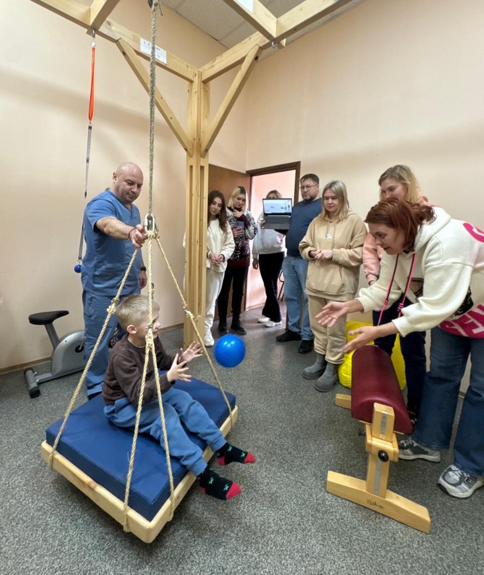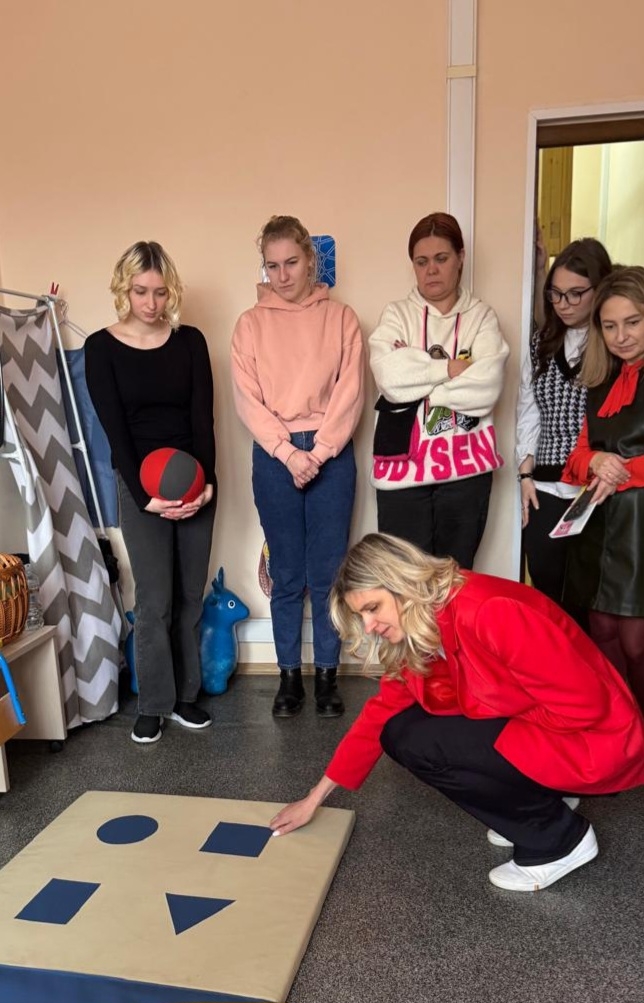 Участники курса познакомились с оборудованием сенсорно-динамического комплекса — маты, платформы и мячи — изучили диагностический материал, а также, под руководством преподавателей, провели самостоятельное обследование детей с ОВЗ.