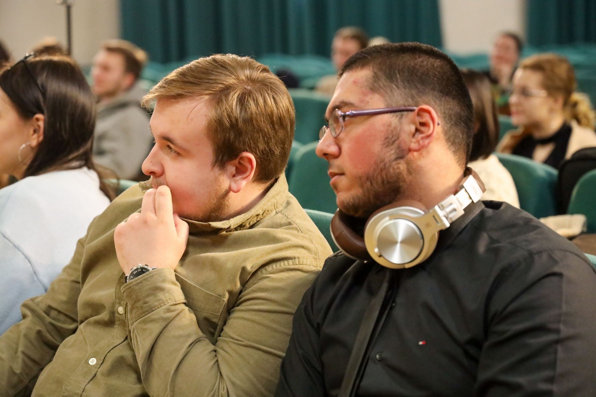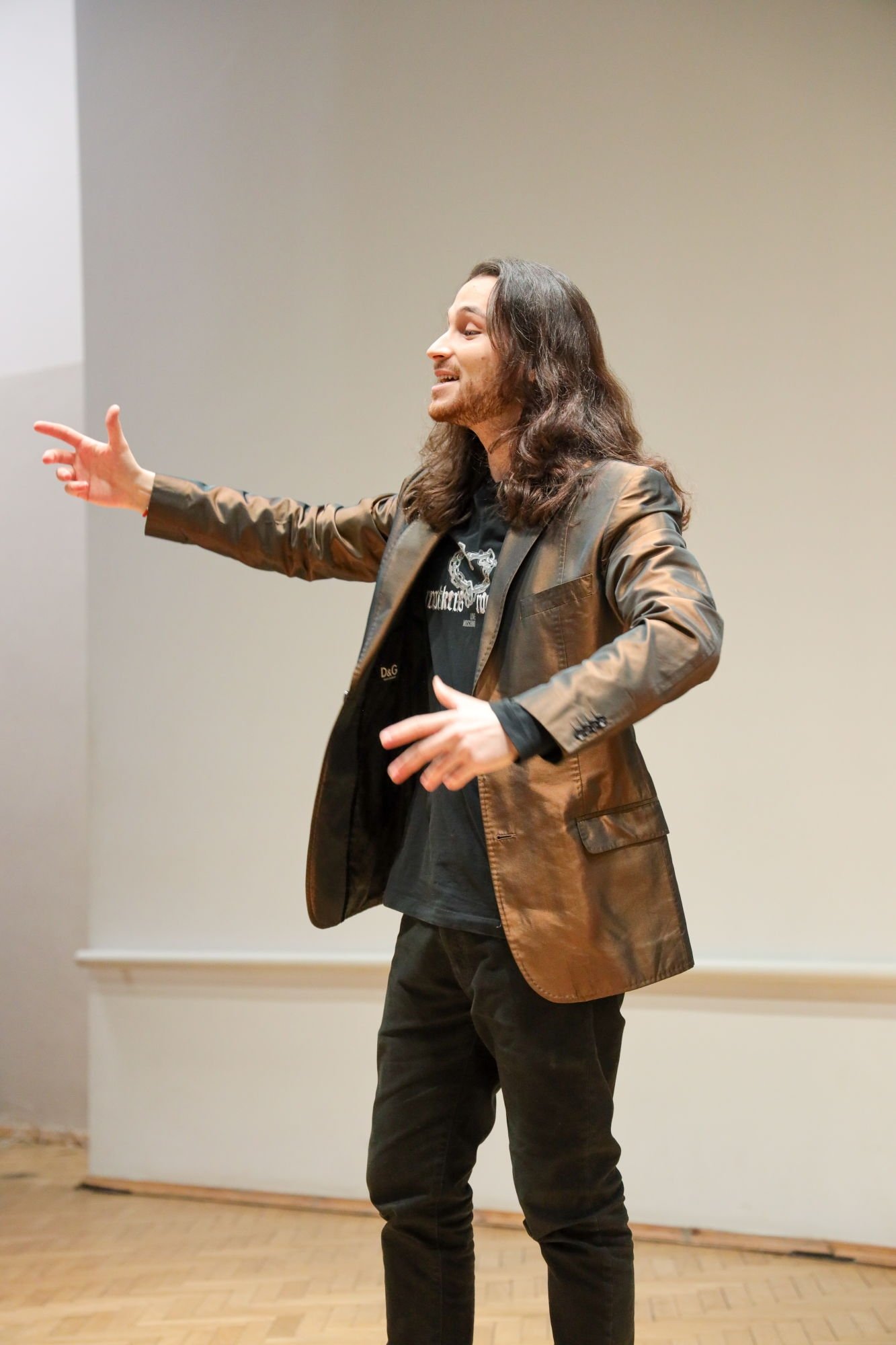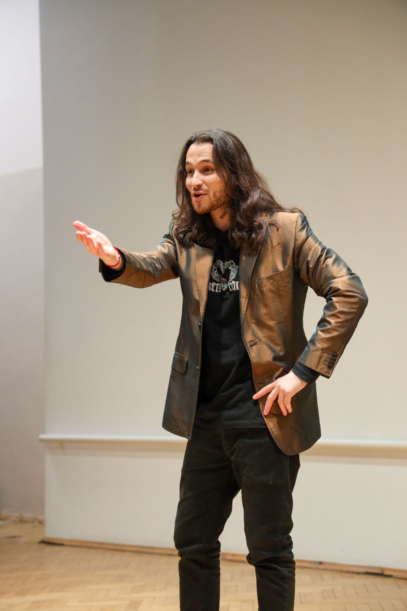Как держаться на сцене уверенно, не зажиматься и самое главное, не бояться, какие актерские техники и подходы можно использовать, объяснял нашим студентам актер и режиссер Иса Мустафаев: