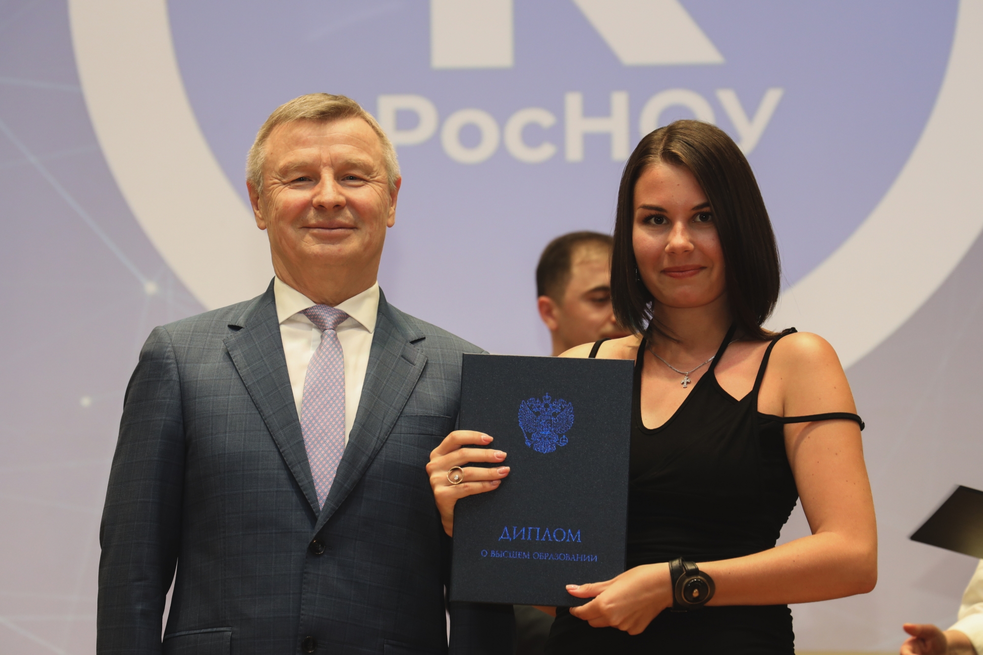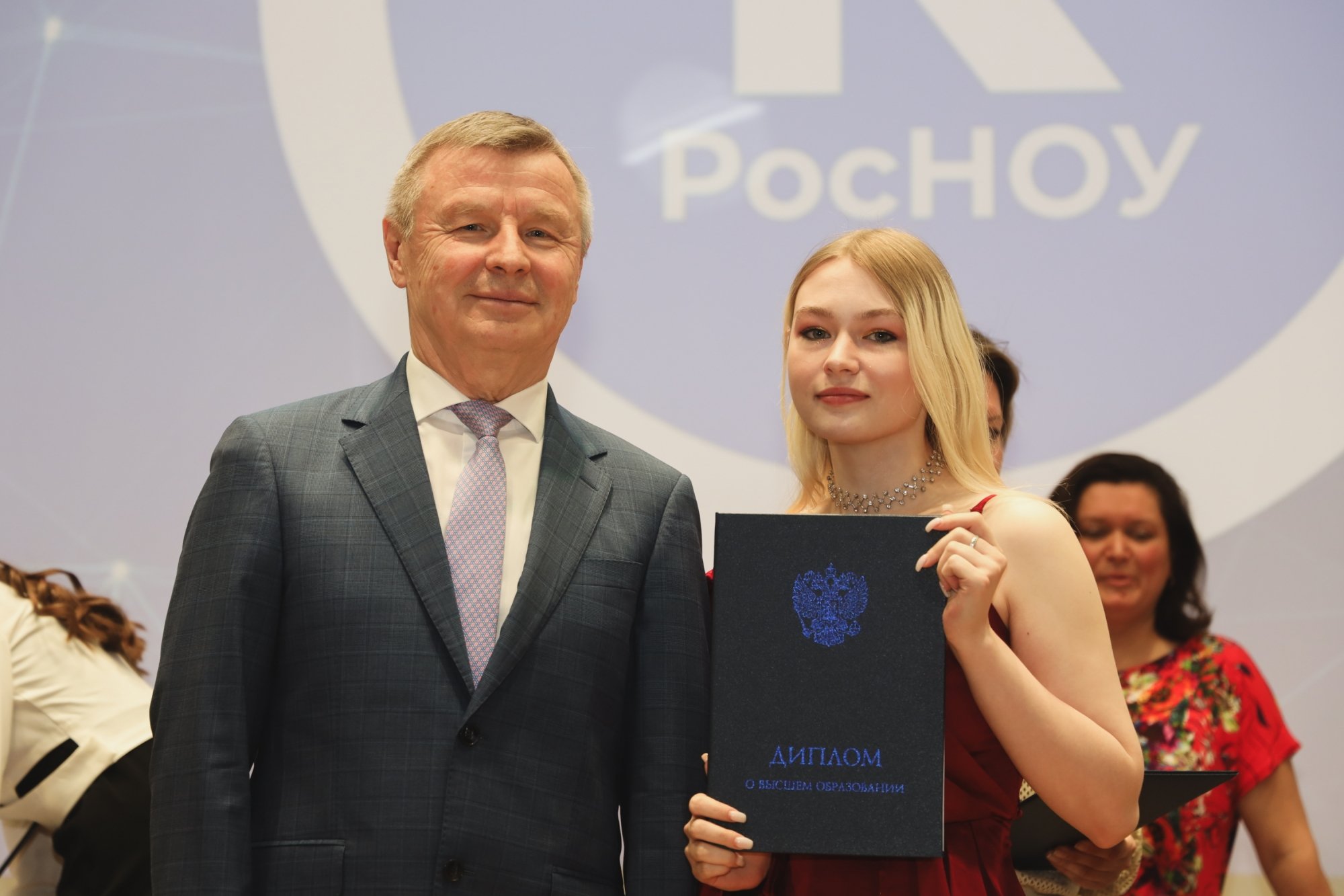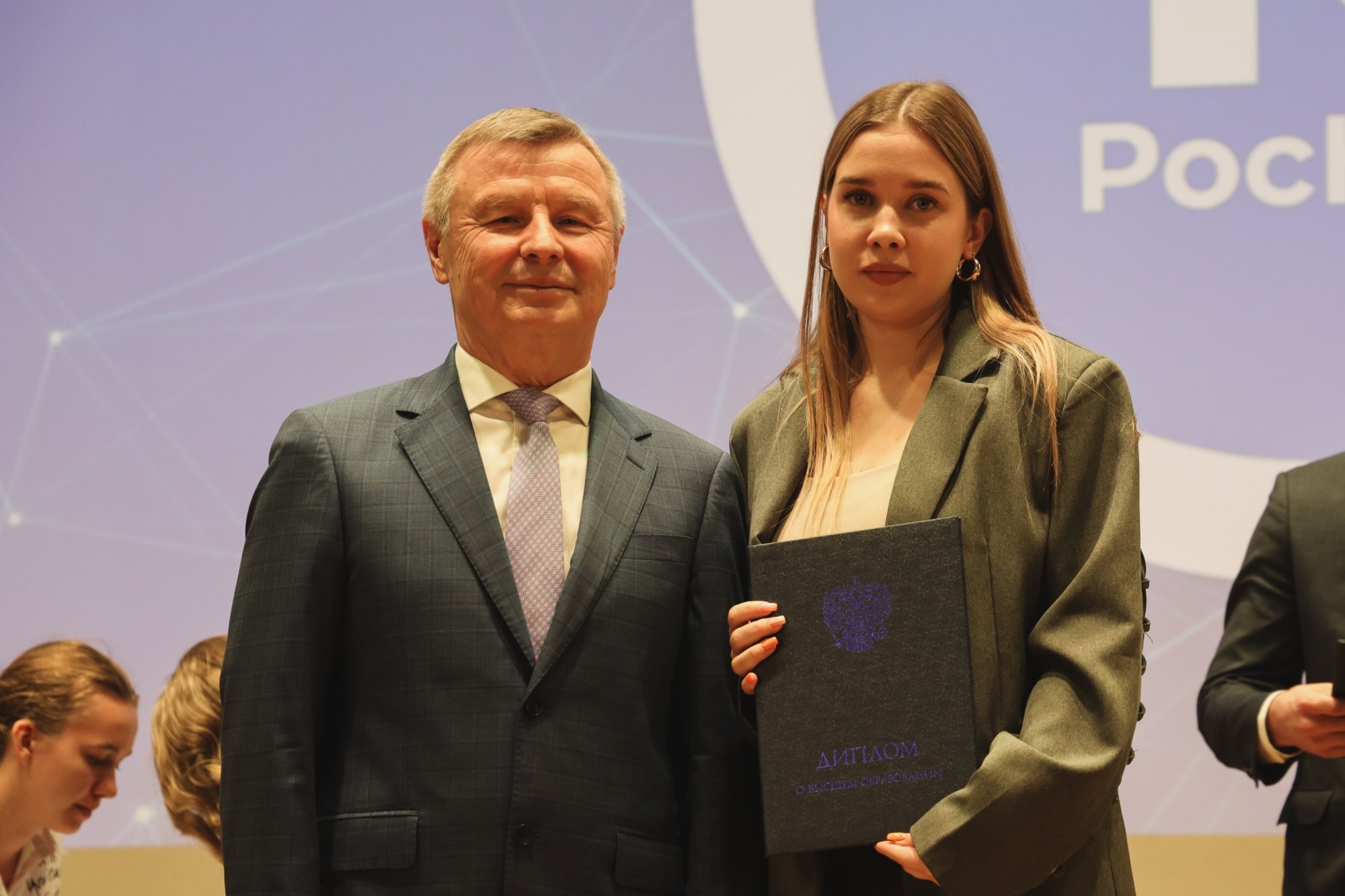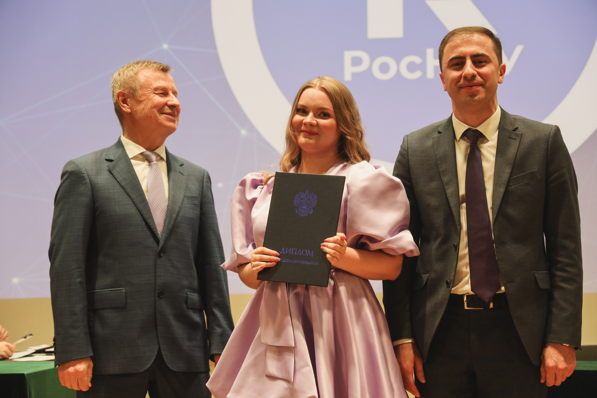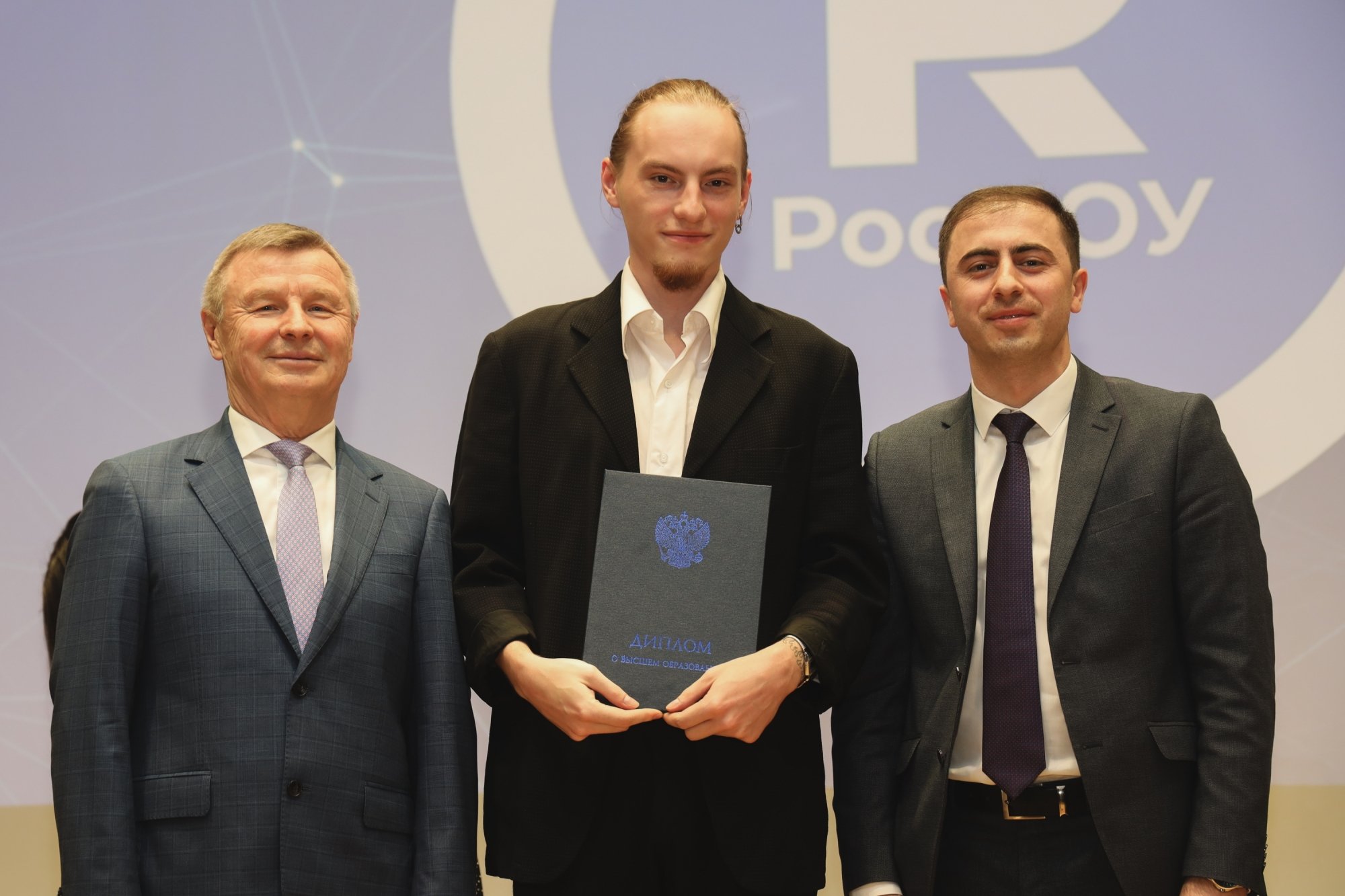 Торжественное событие собрало всех в Малахитовом зале Российского нового университета. Документы о высшем образовании и напутственные слова от педагогов получили 62 молодых специалиста.