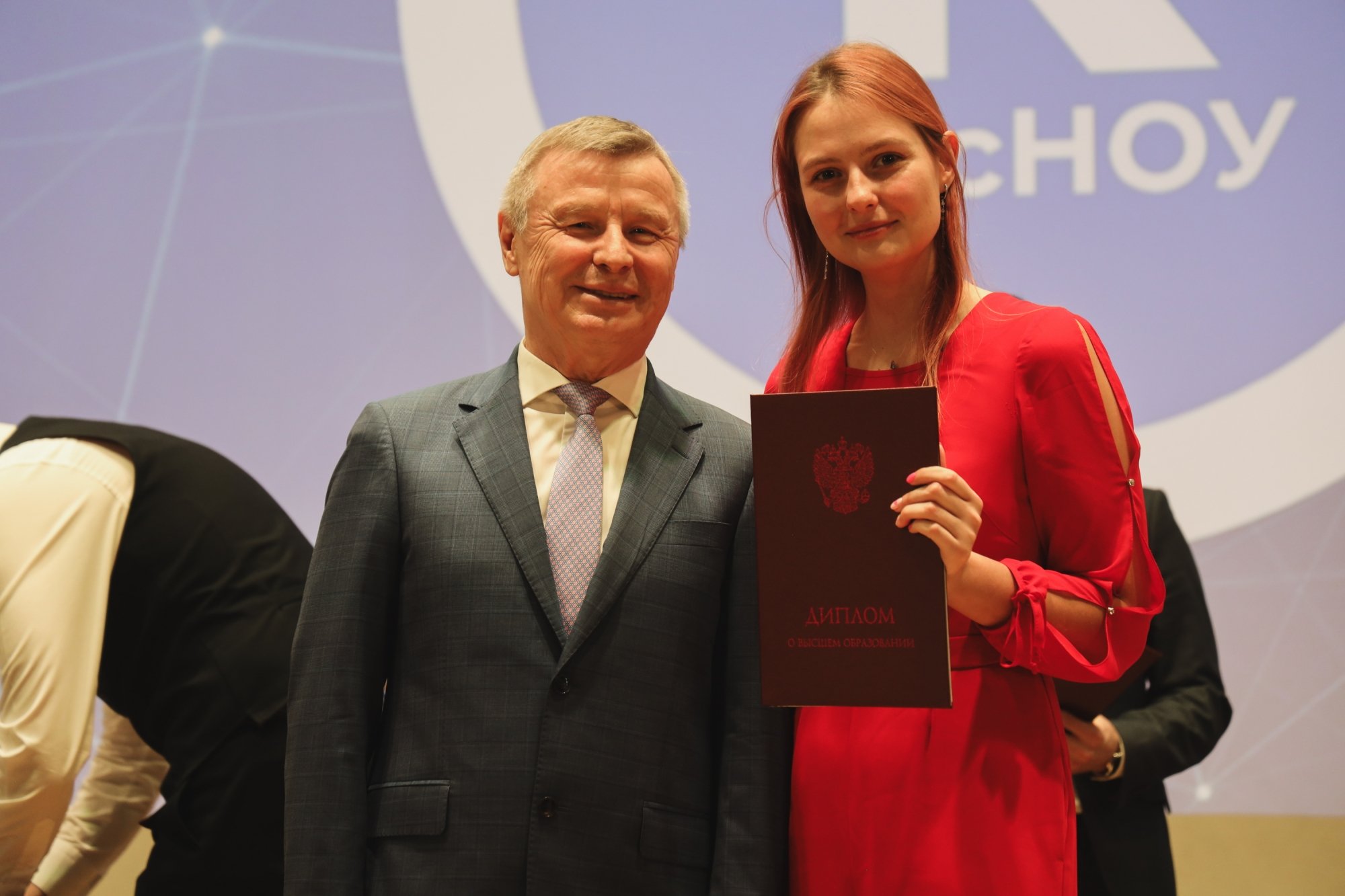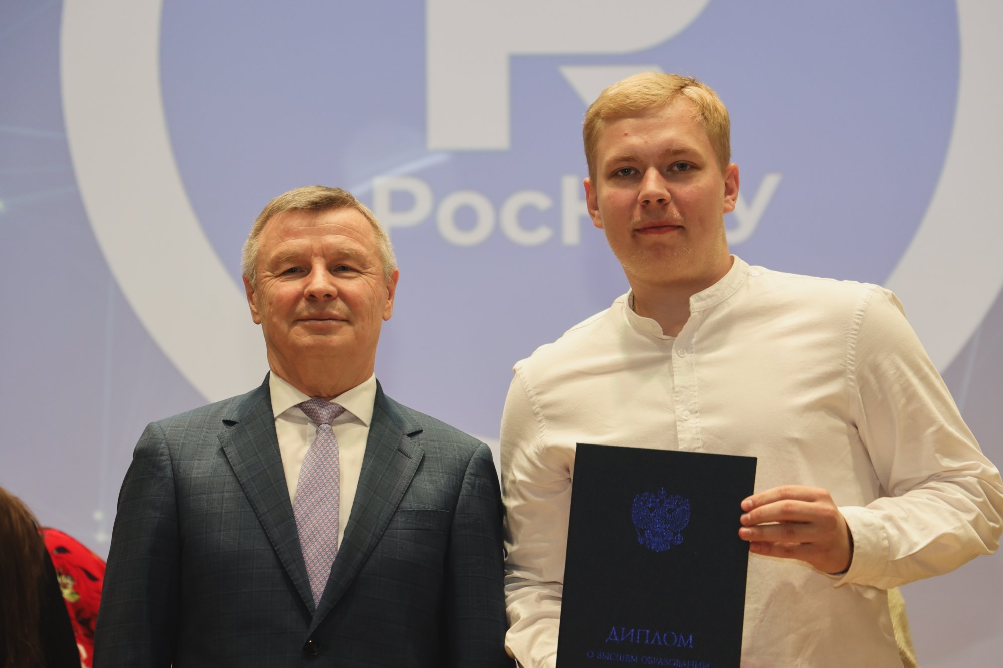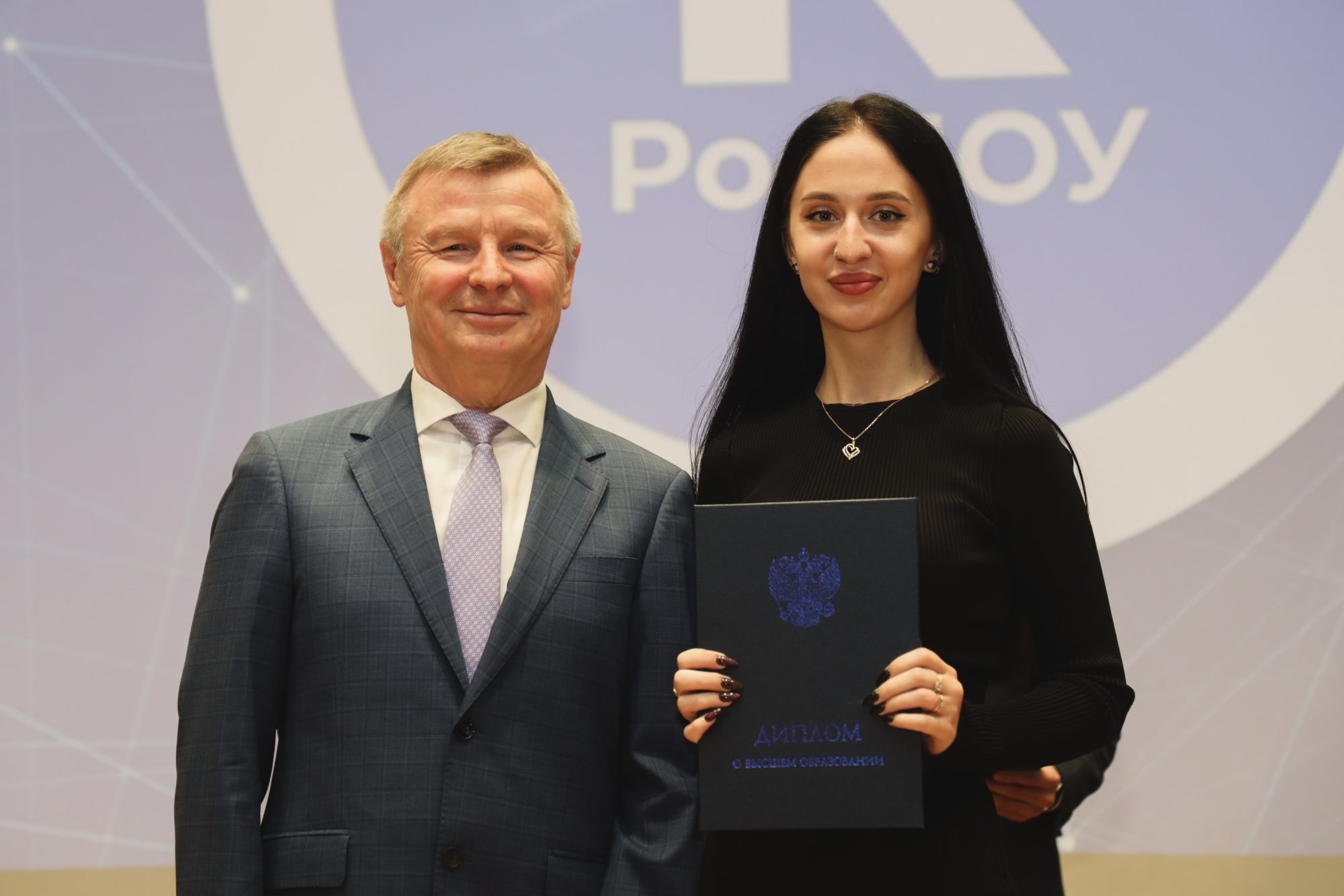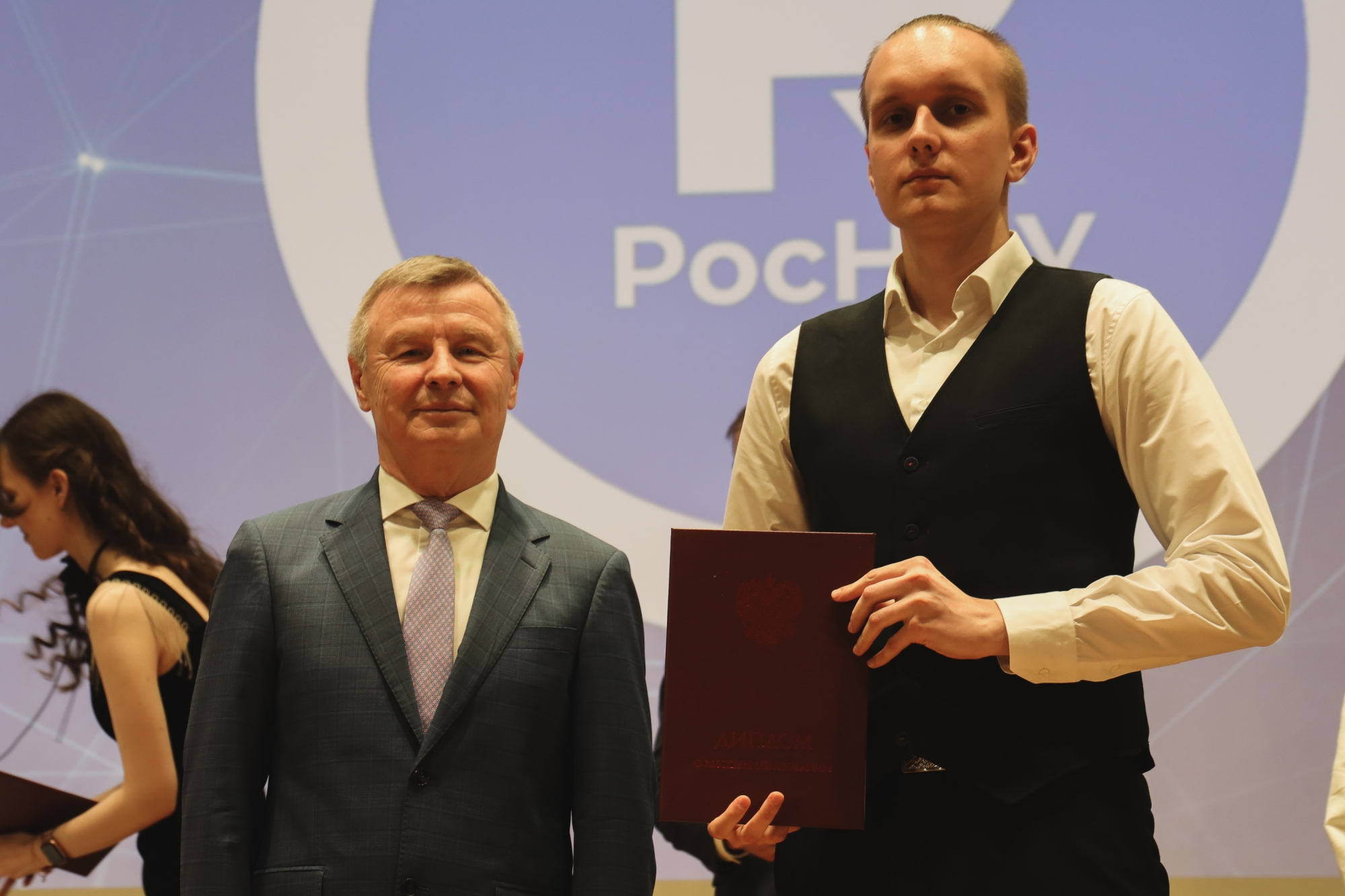 Торжественное событие собрало всех в Малахитовом зале Российского нового университета. Документы о высшем образовании и напутственные слова от педагогов получили 62 молодых специалиста.