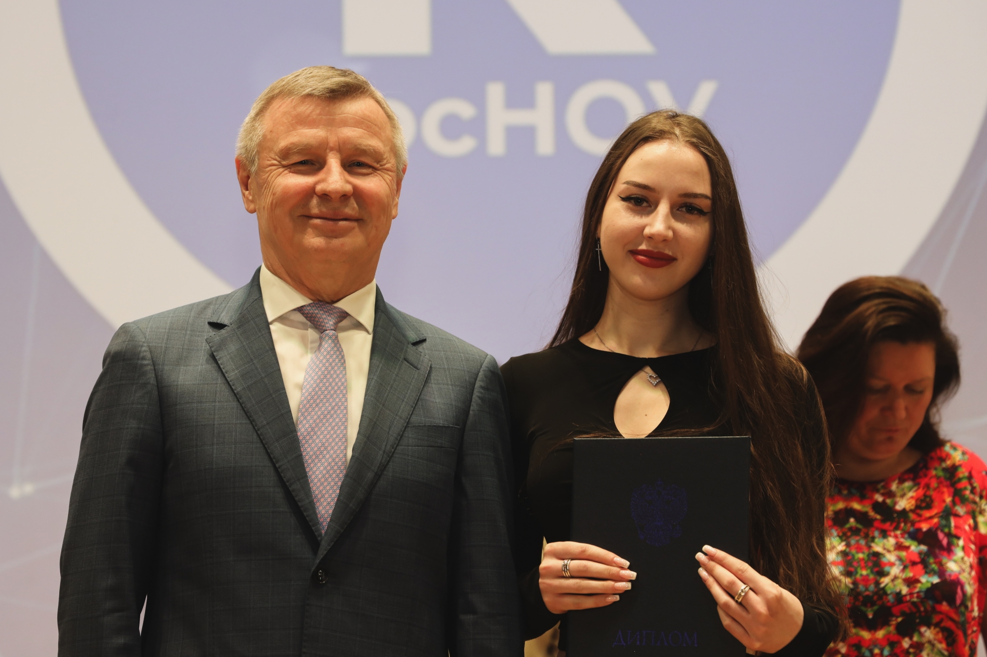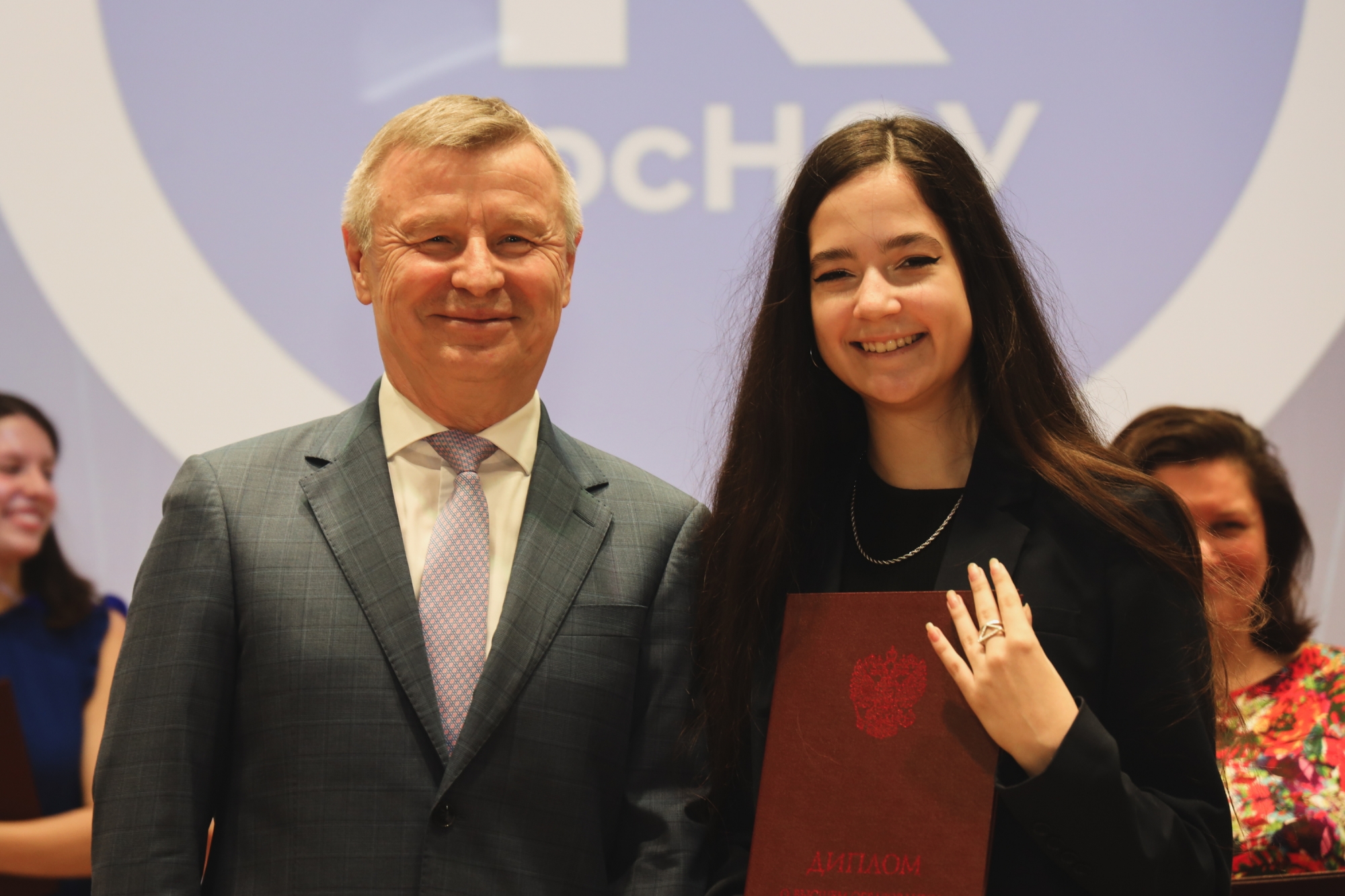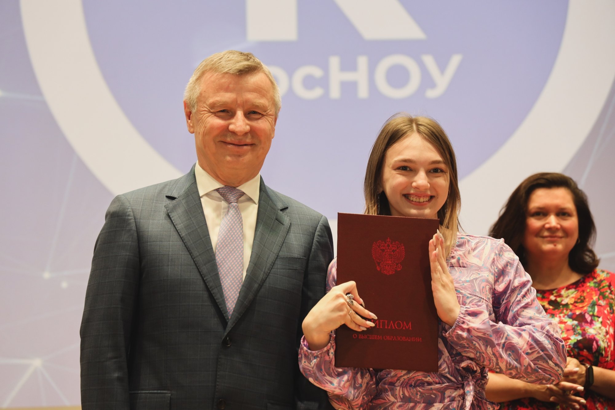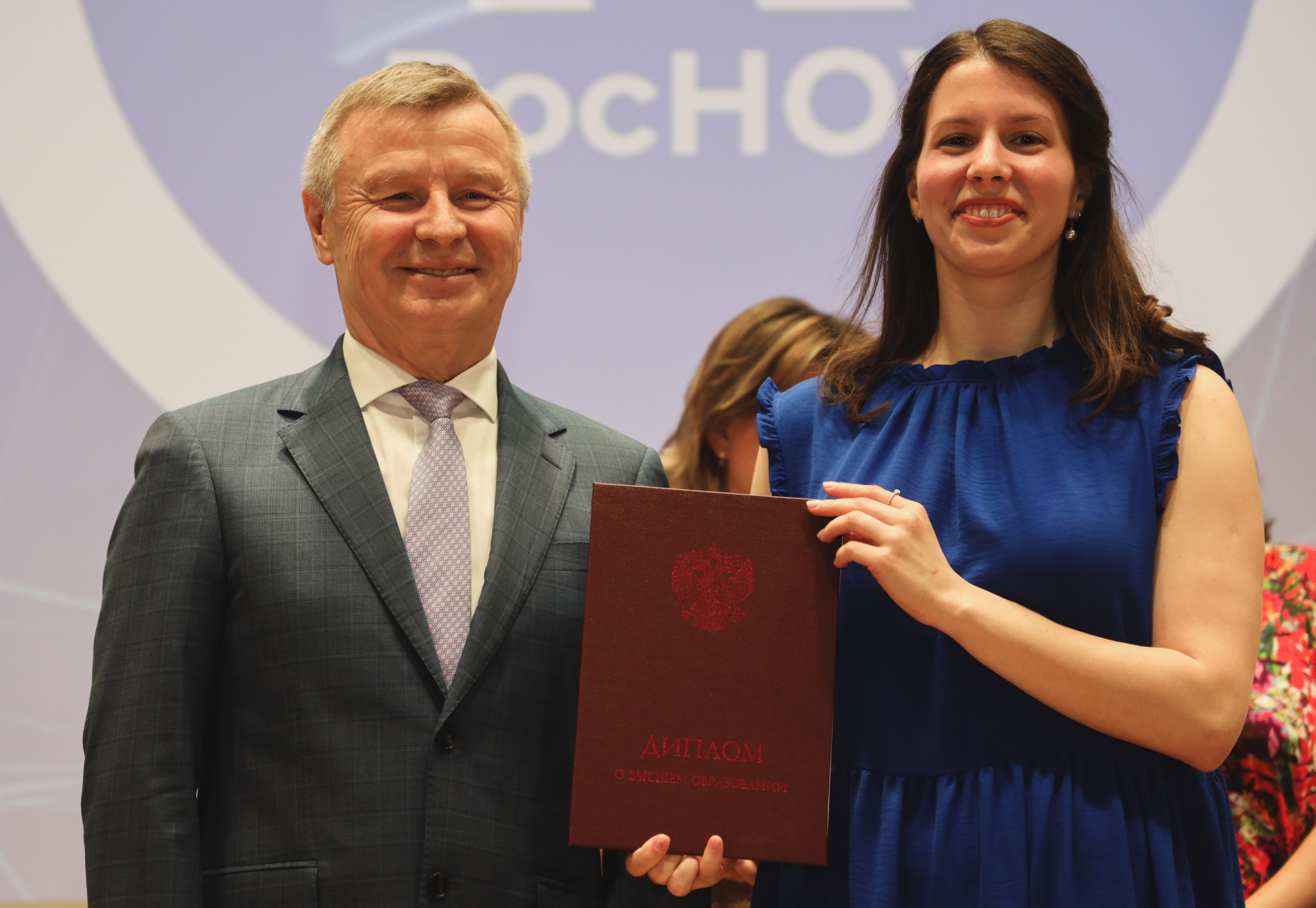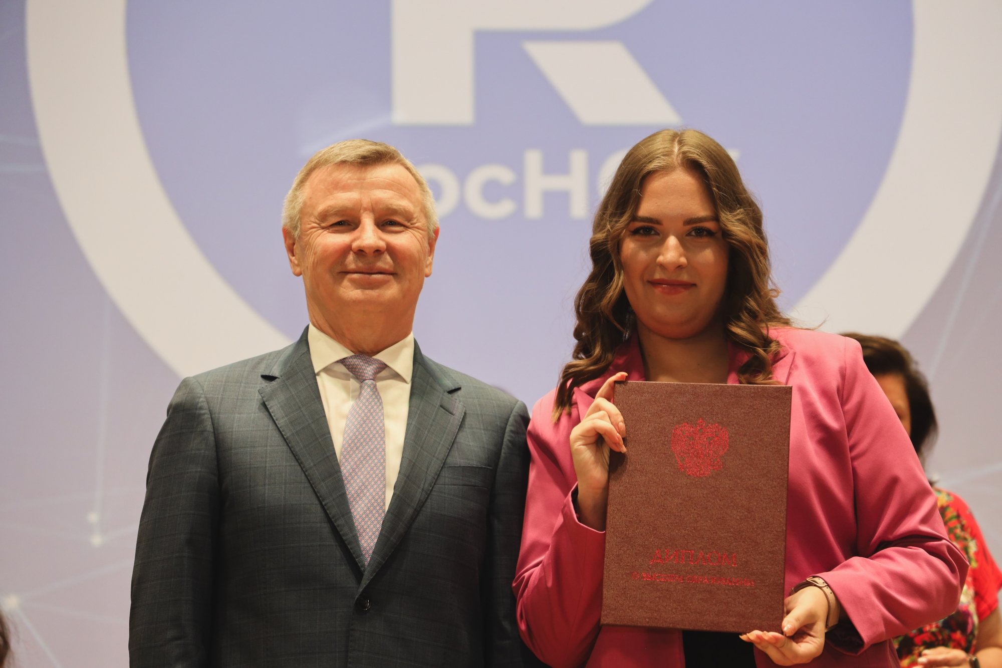 Торжественное событие собрало всех в Малахитовом зале Российского нового университета. Документы о высшем образовании и напутственные слова от педагогов получили 62 молодых специалиста.