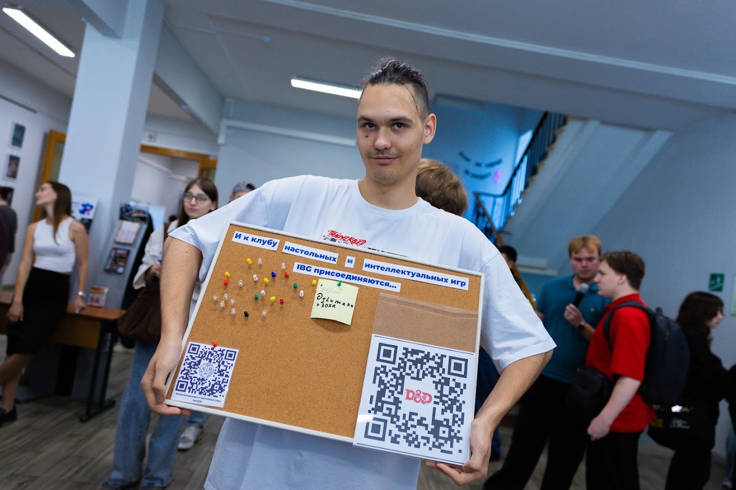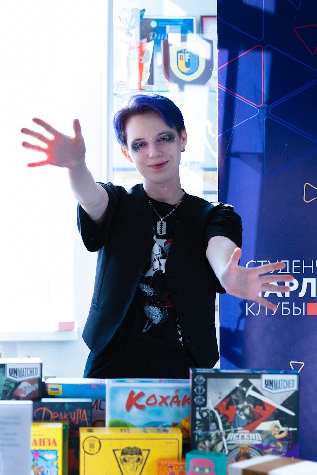 В школе я занимался настольными играми, много волонтёрил, изучал самостоятельно программирование, ходил в музыкальную школу — учился играть на скрипке, но бросил, не доучившись. Здесь я планирую продолжить заниматься настолками, а ещё вступлю в книжный клуб и будут помогать всем остальным клубам.