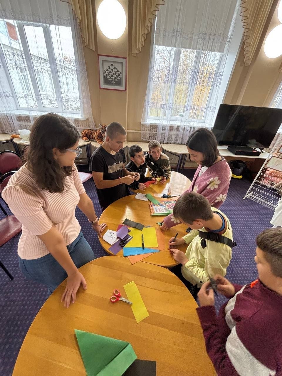 Студенты провели для воспитанников детского дома традиционные образовательные и творческие активности: лекцию по правилам дорожного движения, танцевально-двигательную терапию, мастер-классы по созданию бумажных фигурок и лепке из пластилина, а также игровую программу с настольными играми.
