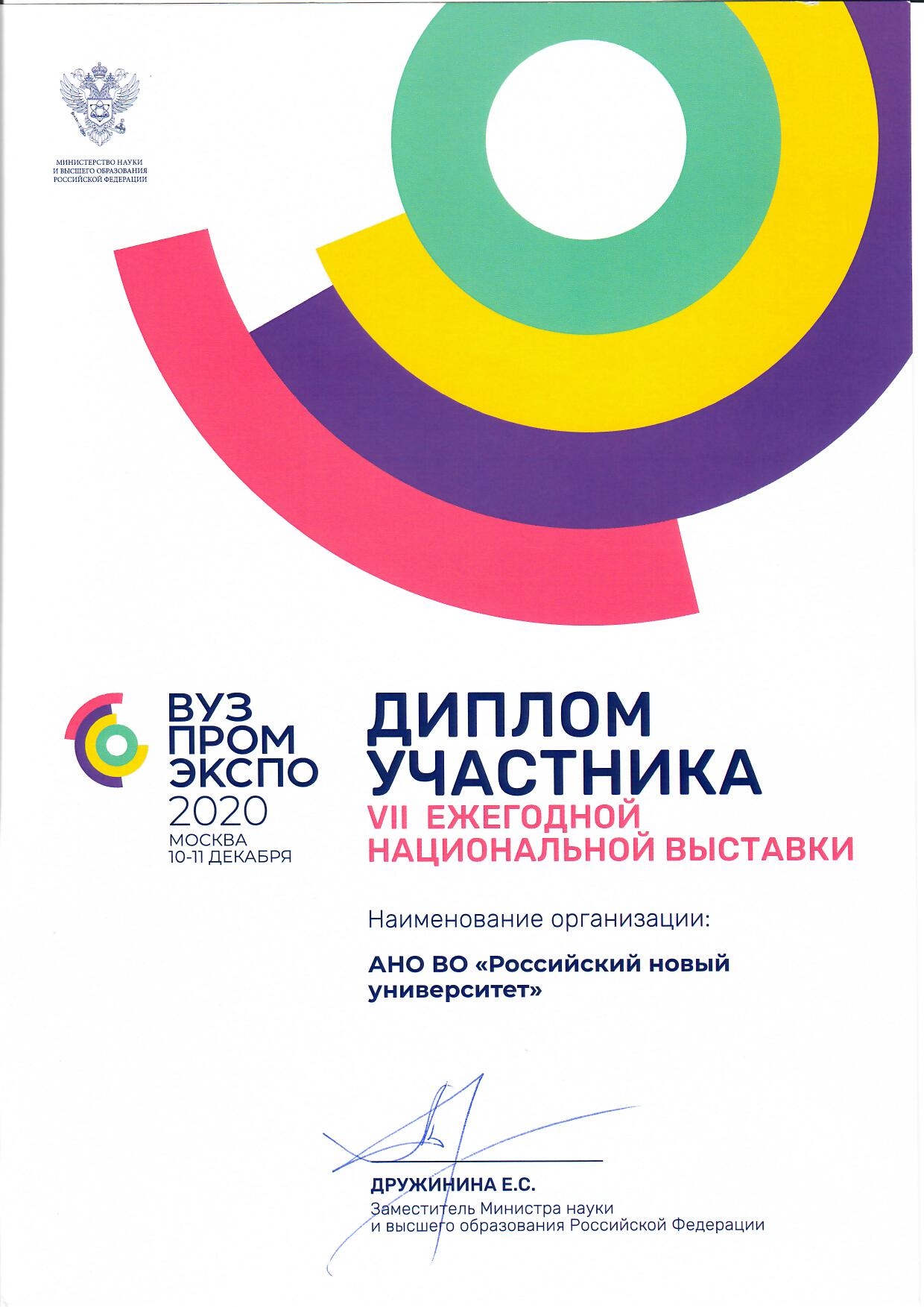 Российский новый университет (РосНОУ) принял участие в VII ежегодной национальной выставке «Вузпромэкспо». Выставка, посвящённая подготовке российскими вузами кадров для научного развития страны, состоялась 10-11 декабря 2020 года в Москве, в ЦВК «Экспоцентр».