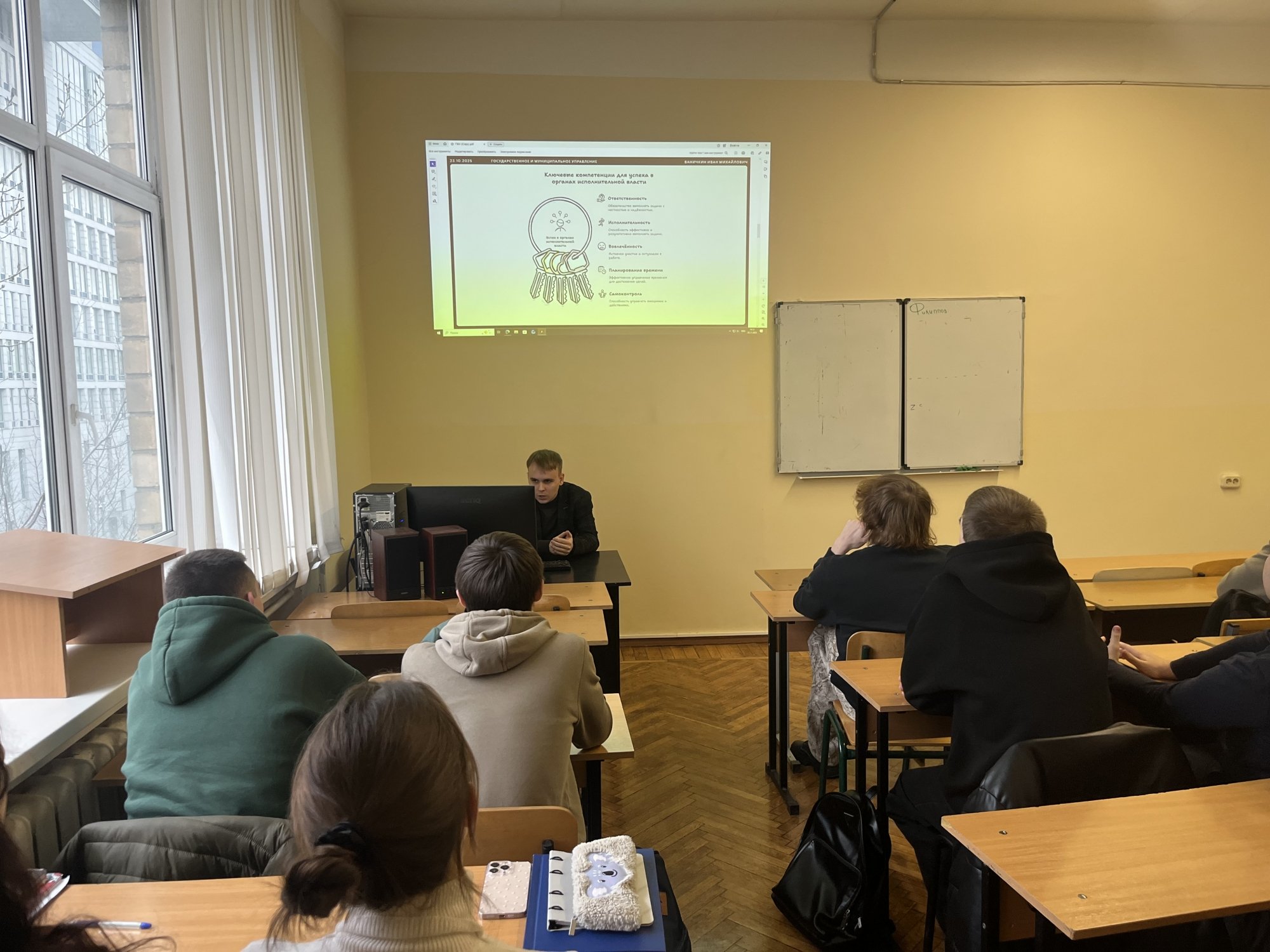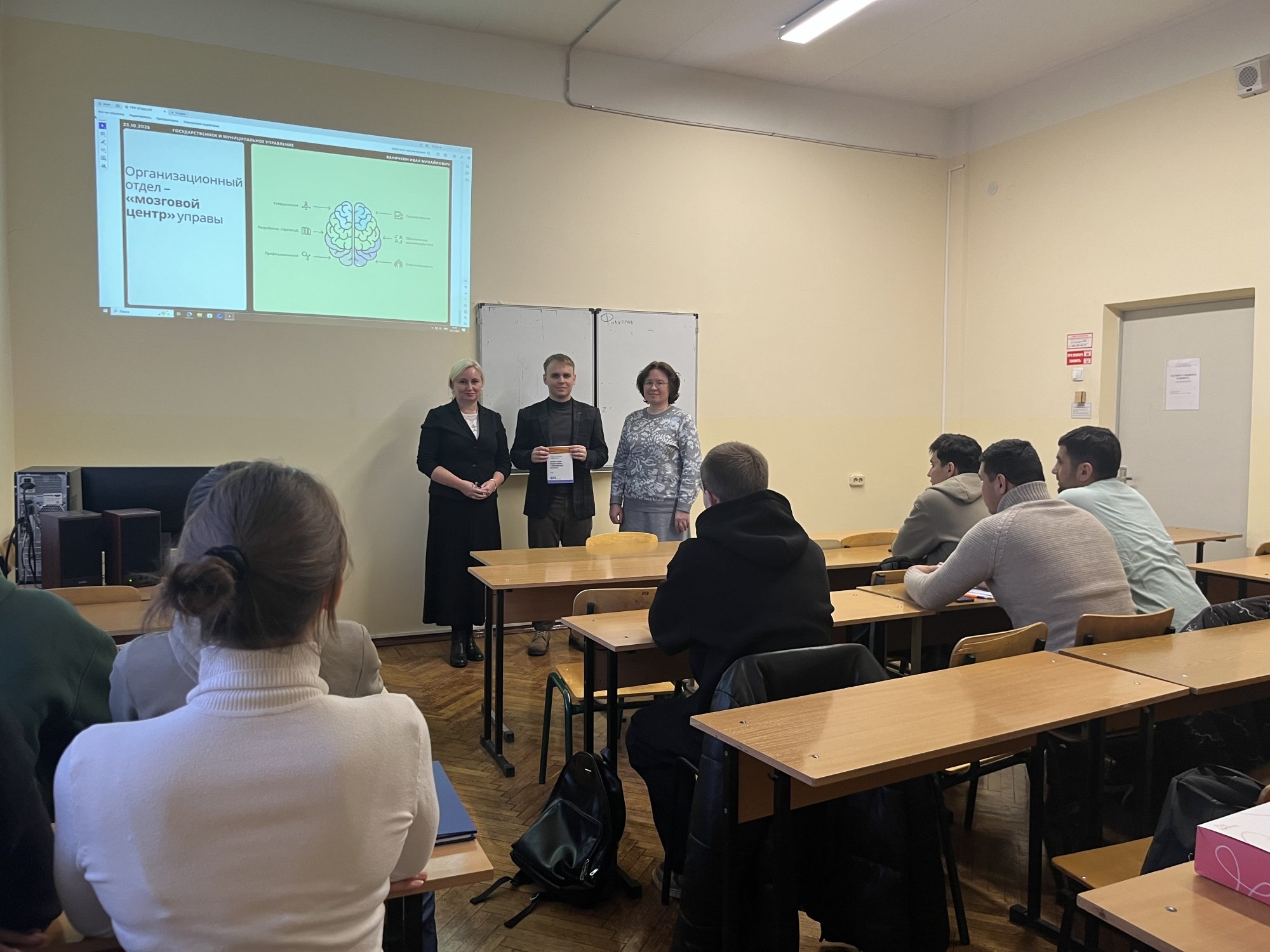 В рамках мастер-класса состоялась не только лекция, но и разбор кейсов, а также я ответил на вопросы ребят. Студенты интересовались карьерными перспективами, тонкостями документооборота и тем, как академические знания применяются в решении повседневных управленческих задач.