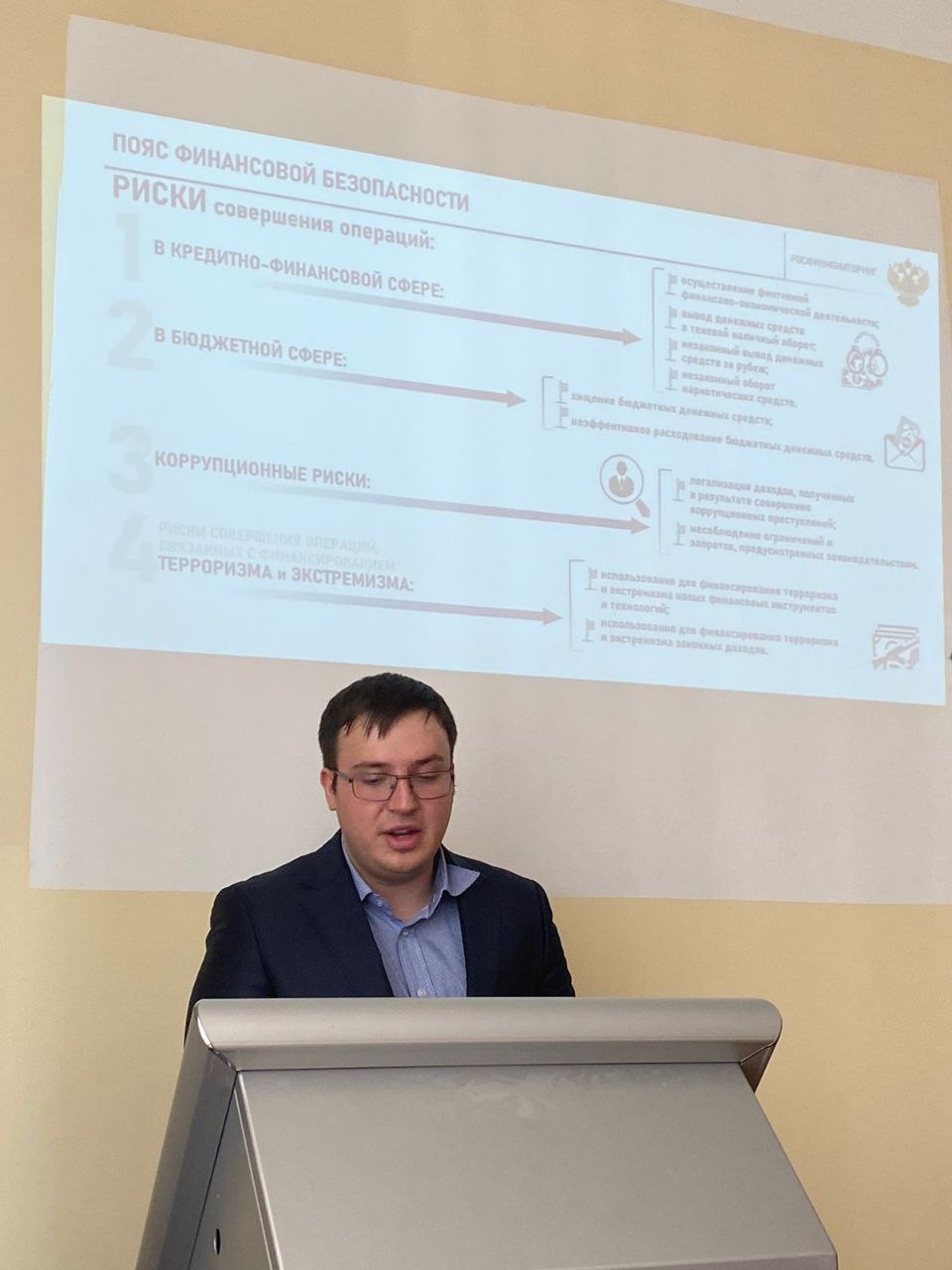 Студент 3 курса и председатель Студенческого совета университета Иван Сербин поинтересовался у представителей Росфинмониторинга масштабами теневой экономики в России.
