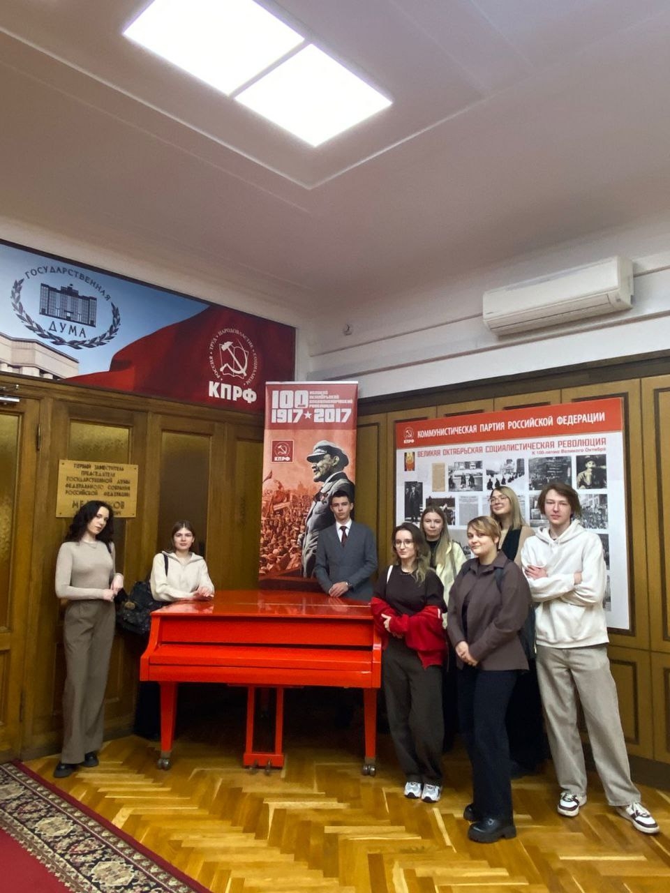 В ходе экскурсии студенты посетили зал пленарных заседаний, ознакомились с рабочими местами депутатов, регламентом проведения сессий и правилами голосования. Участники также увидели историческое здание Думы, залы заседаний комитетов и комиссий, кабинеты руководства и сотрудников аппарата.